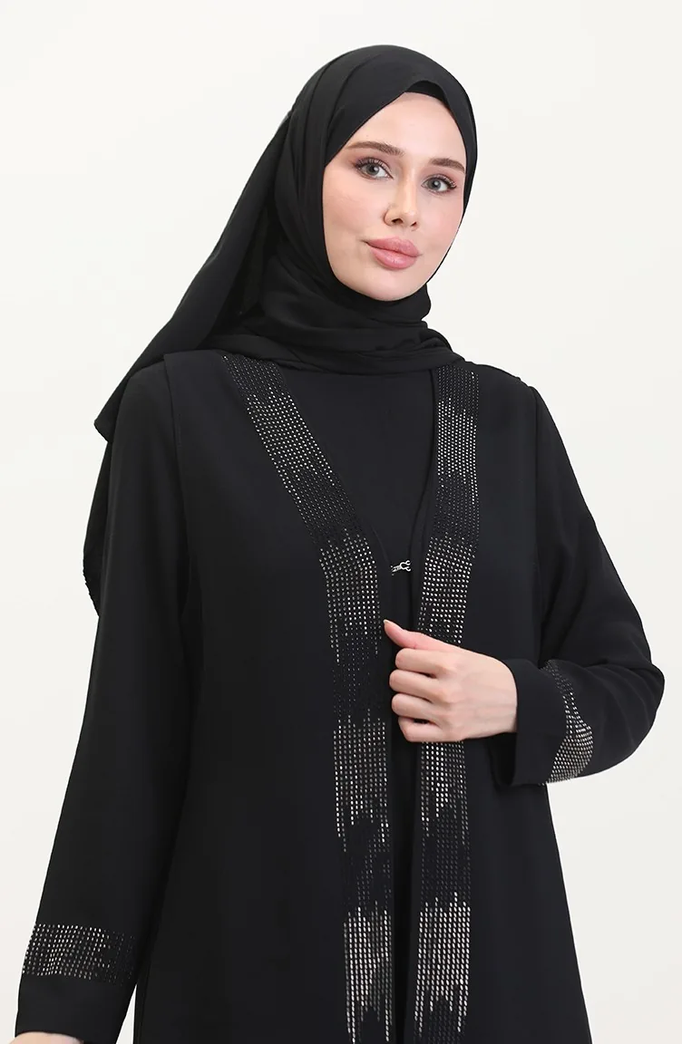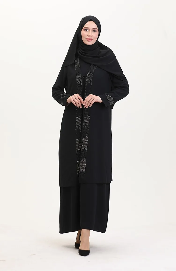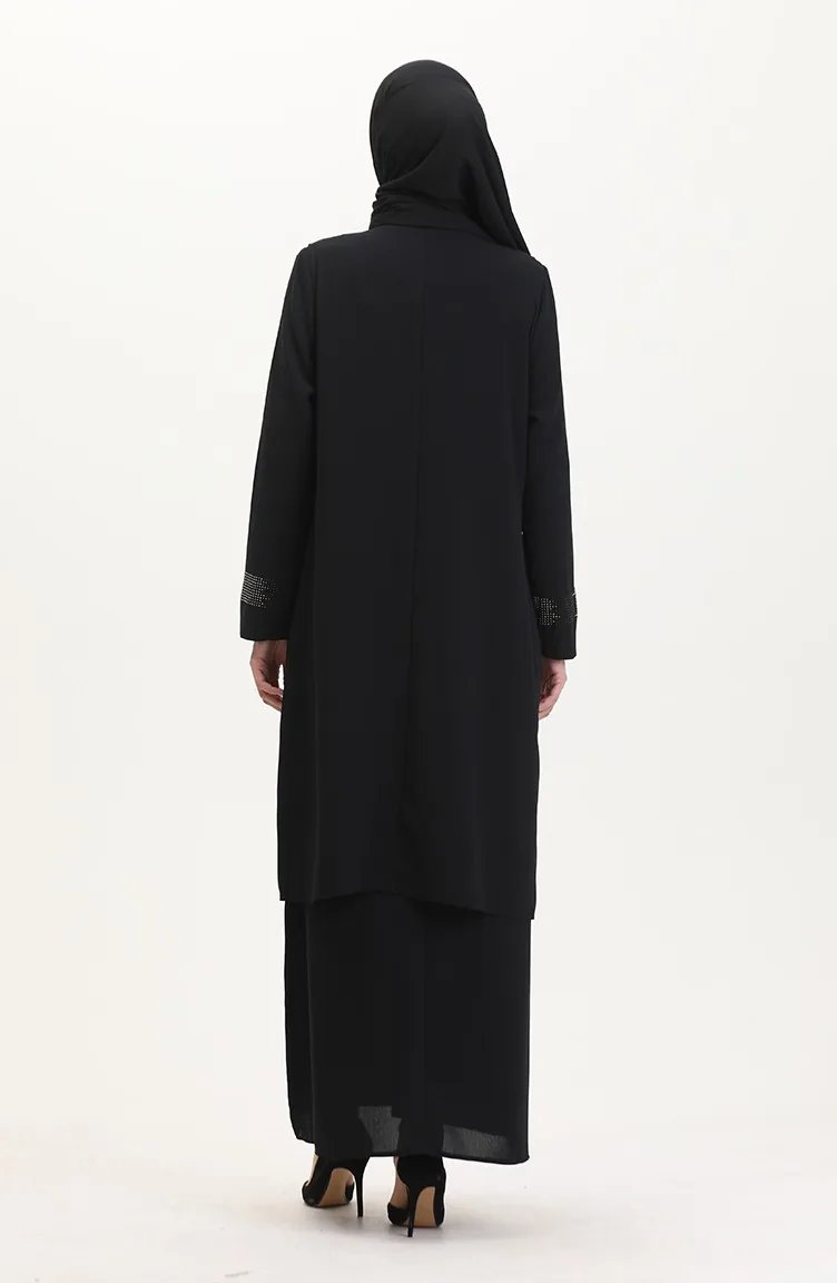 Büyük Beden Elbise Yelek İkili Takım 6140-03 Siyah