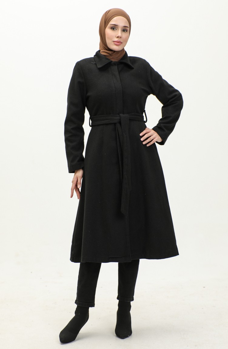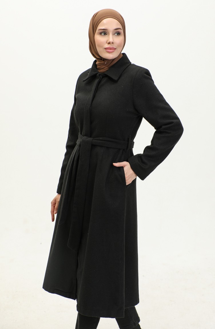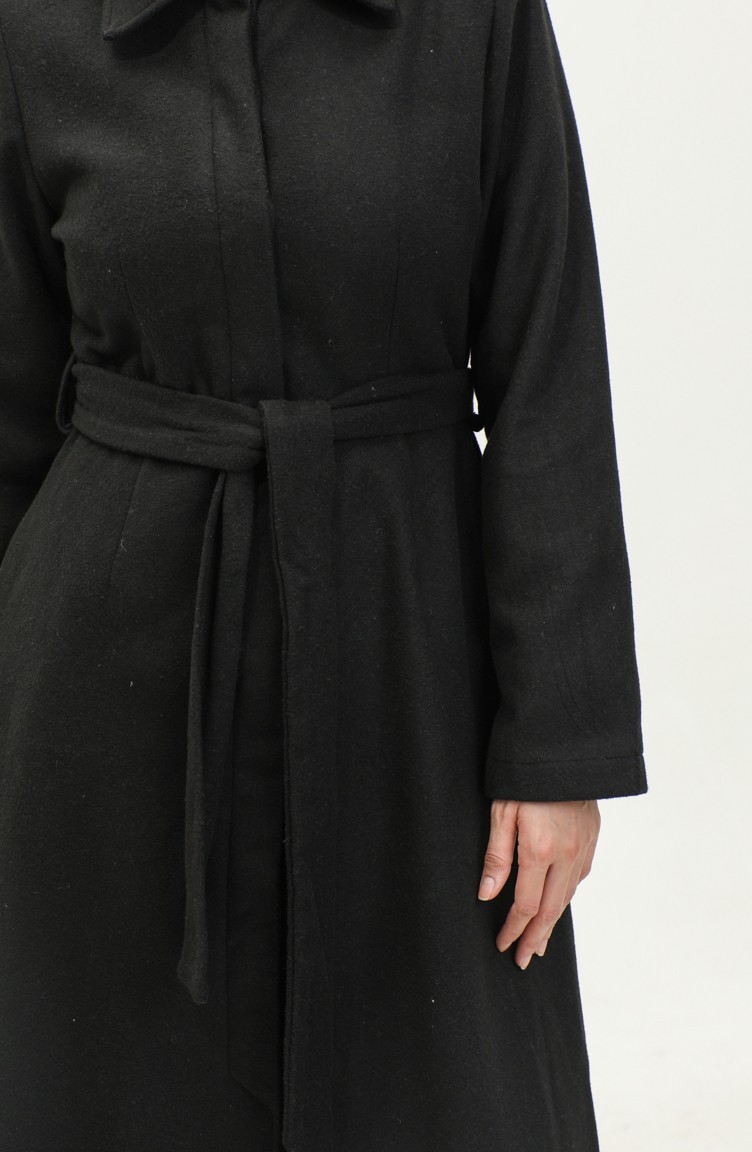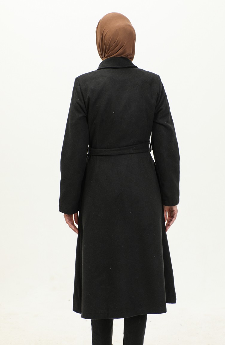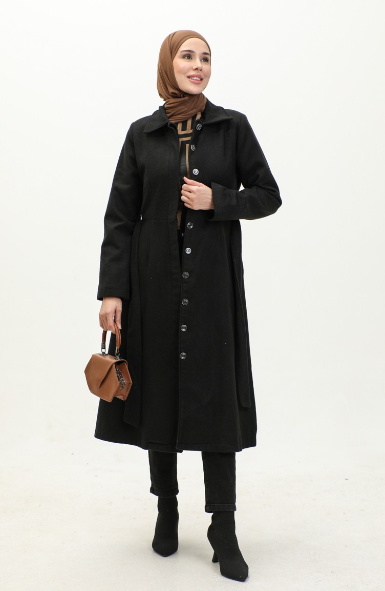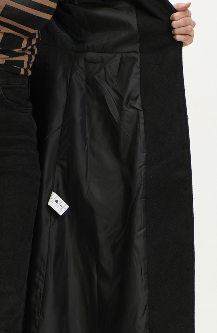 معطف جوخ بأزرار مخفية 71207-01 أسود 71207-01