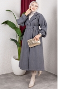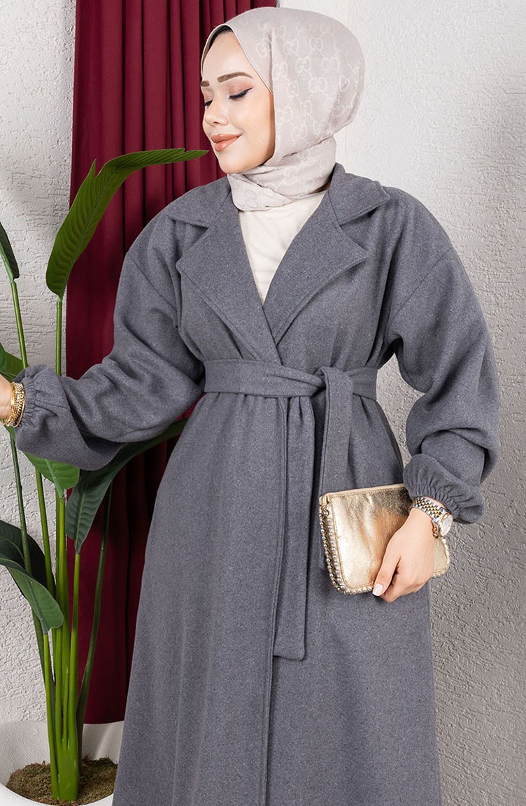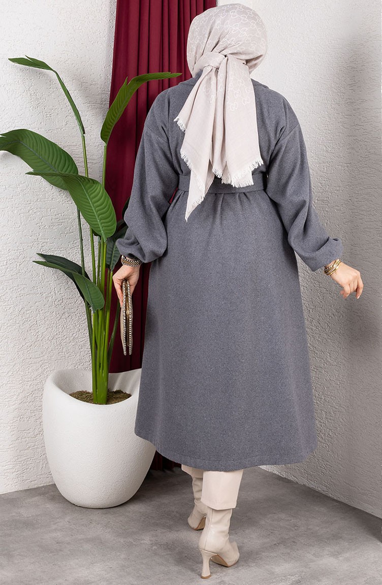 معطف كشمير ذو ياقة مزدوجة الصدر 2059-03 رمادي 2059-03