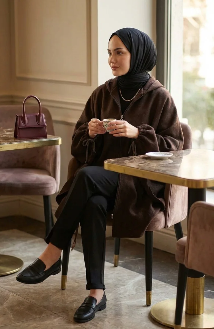 بونشو حجاب بغطاء للرأس 0505-03 بني 0505-03