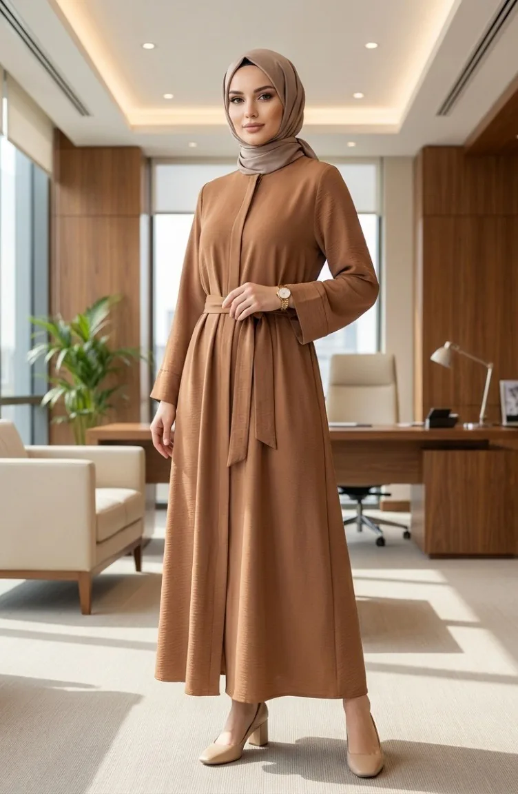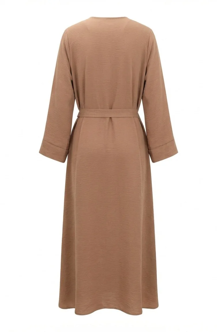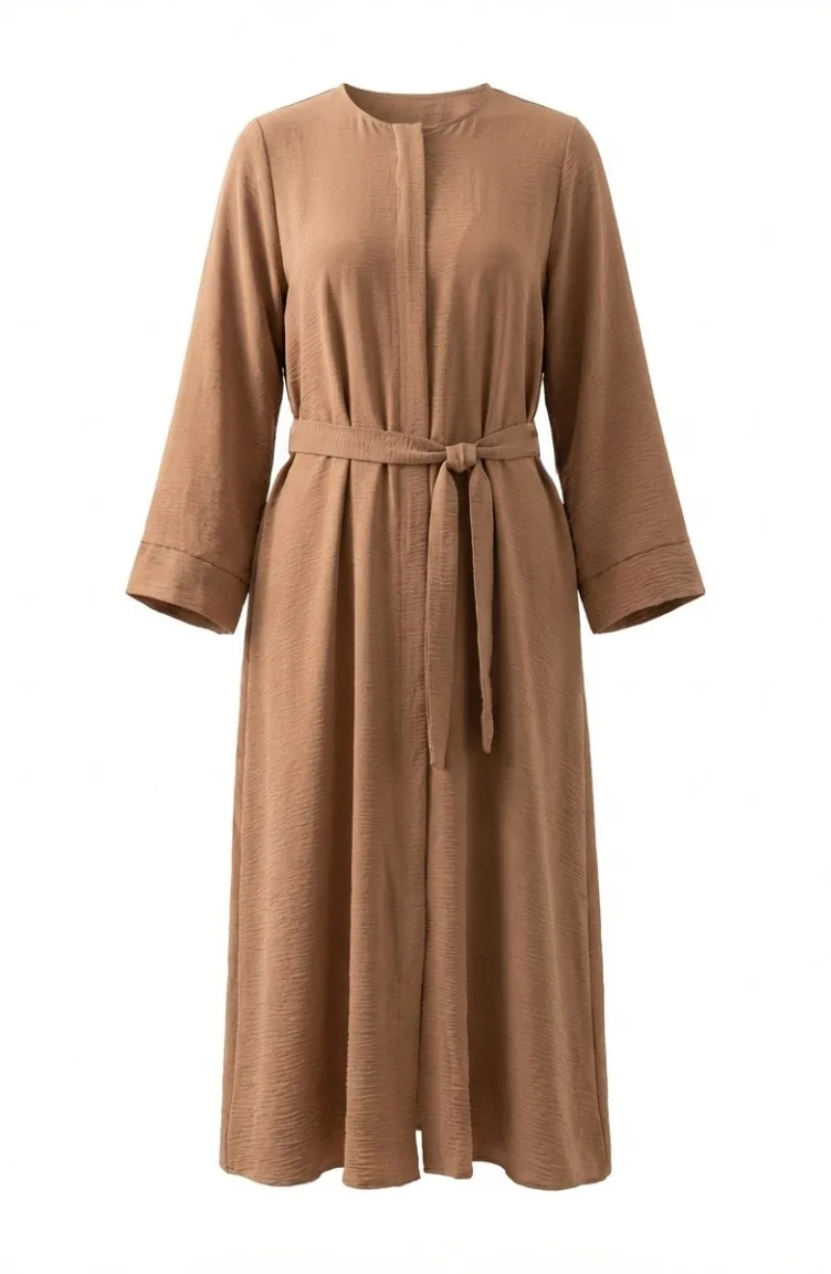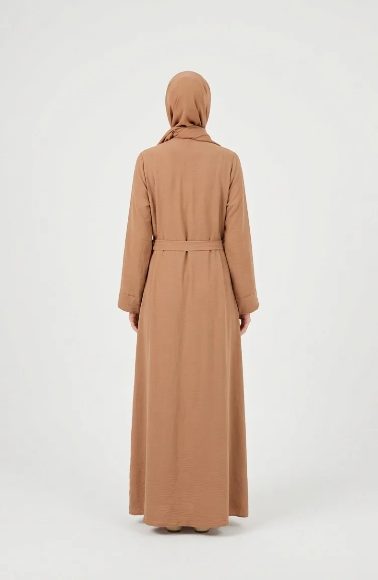 عباية بحزام من قماش أيروبين 4043-02 لون جملي 4043-02