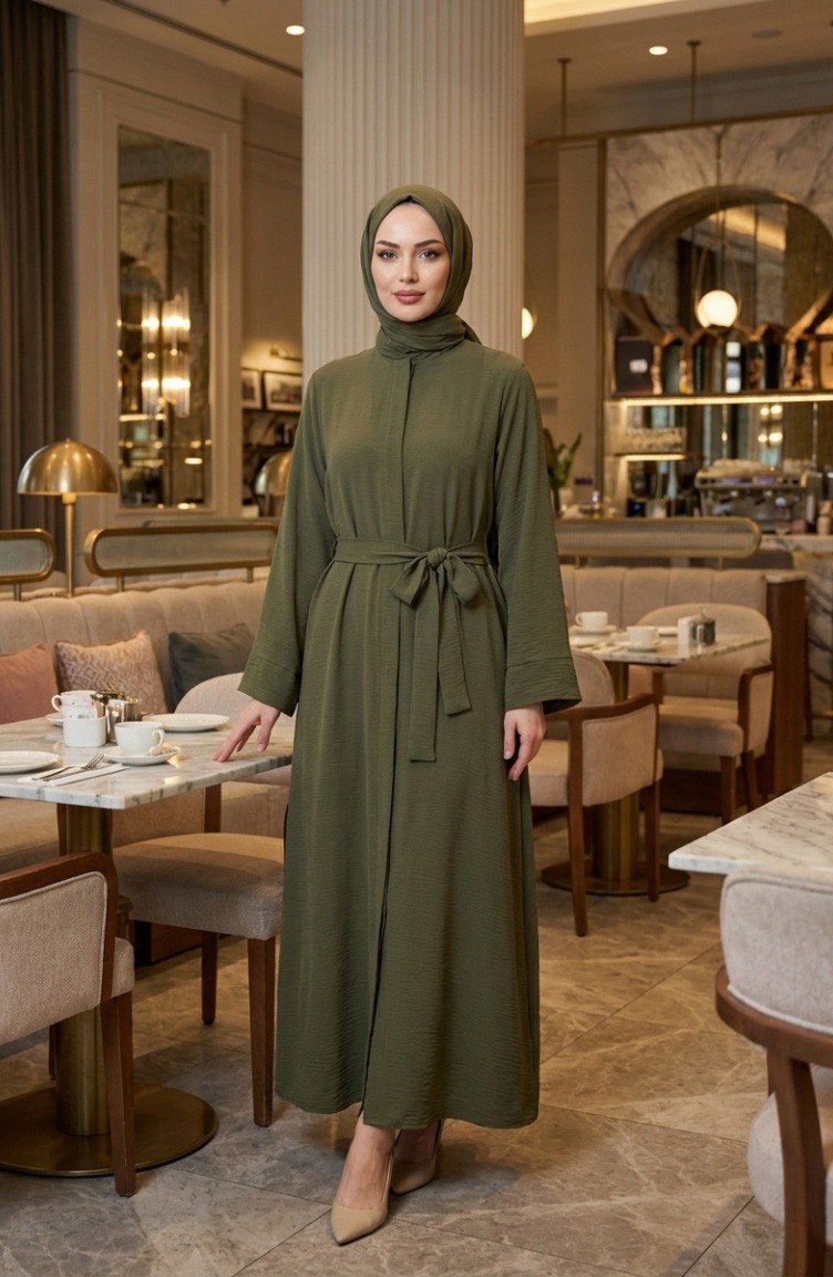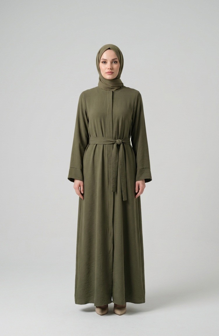 عباية بحزام من قماش أيروبين 4043-04 أخضر فاتح 4043-04