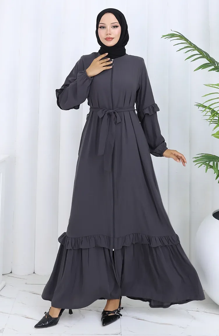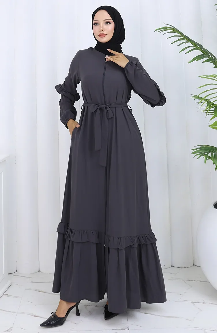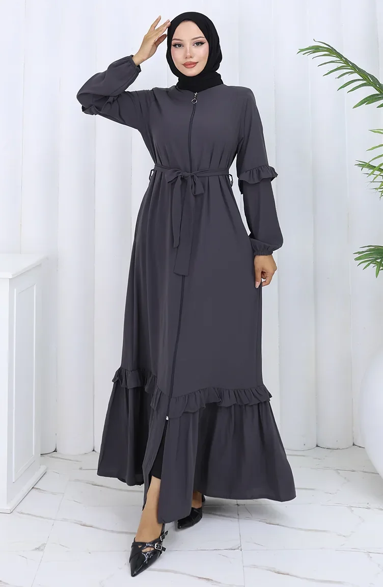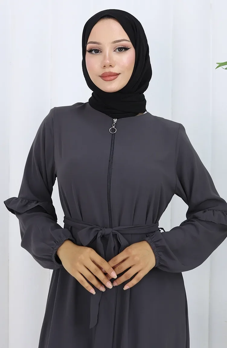 عباية بحزام وسحاب 6278-04 رمادي 6278-04