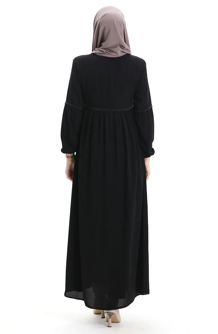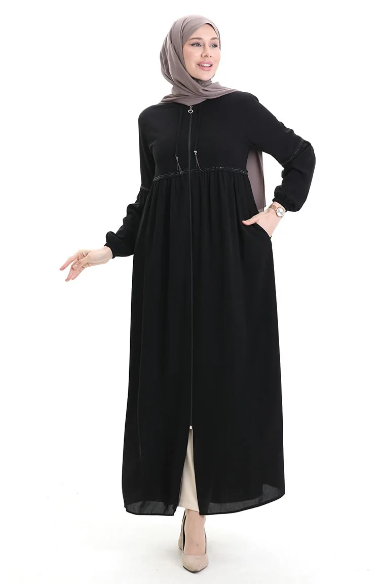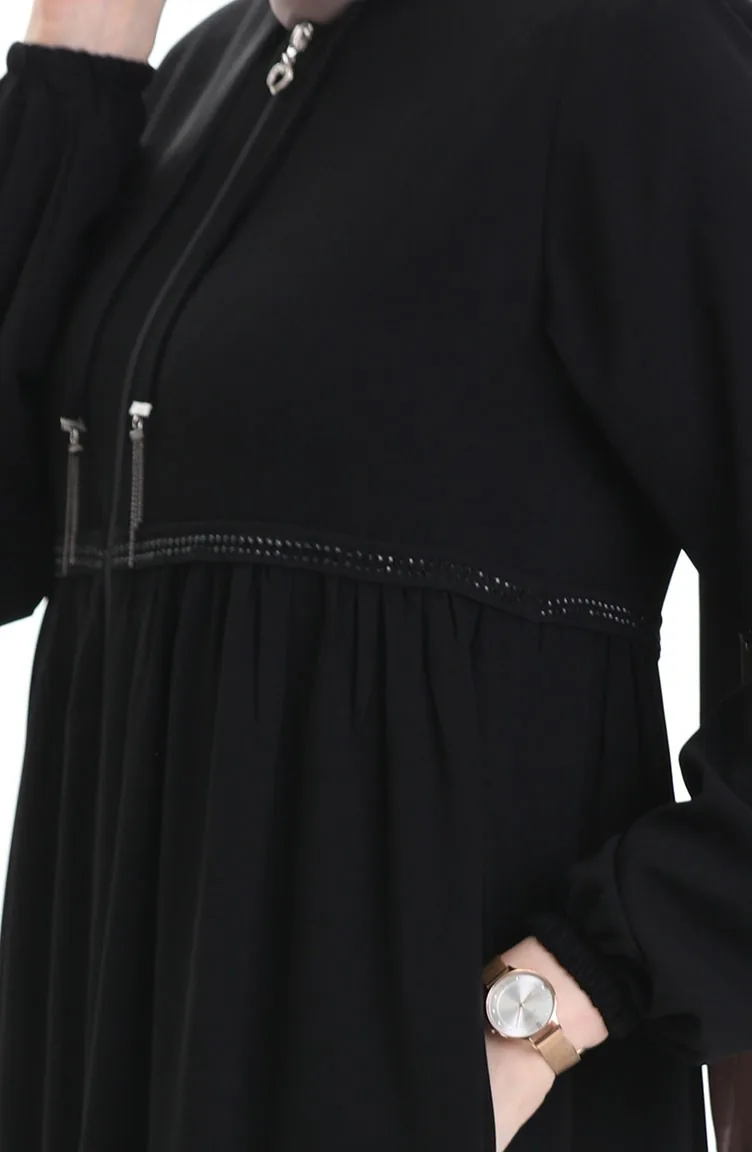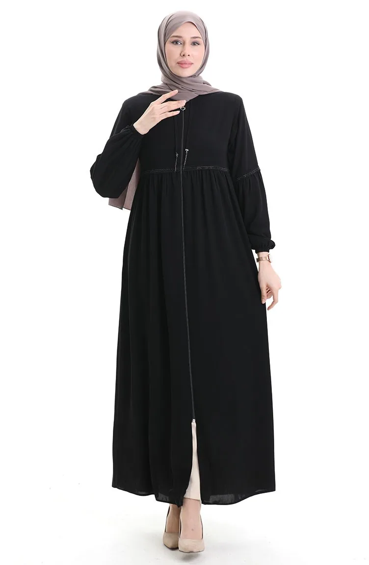 عباية بأكمام مرنة وسحّاب وحجارة 5081-01 سوداء 5081-01