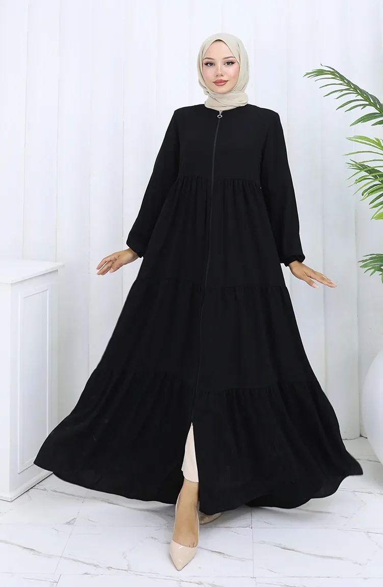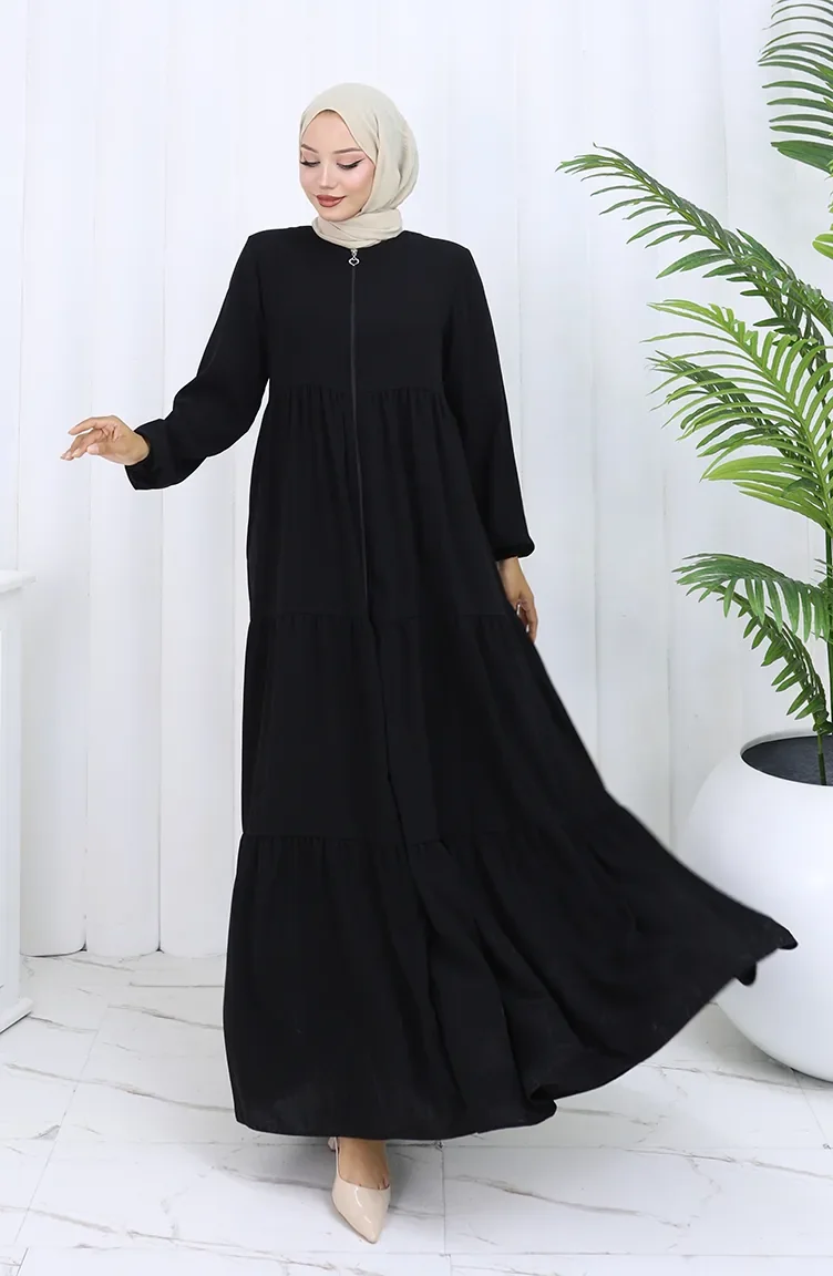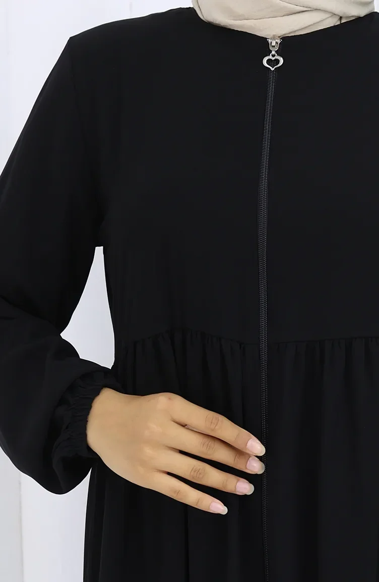 عباية بأكمام مرنة وسحاب 6269-01 أسود 6269-01
