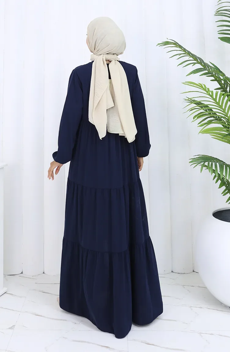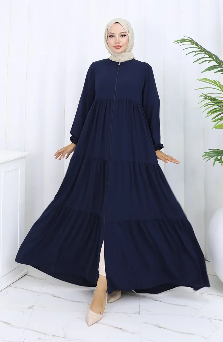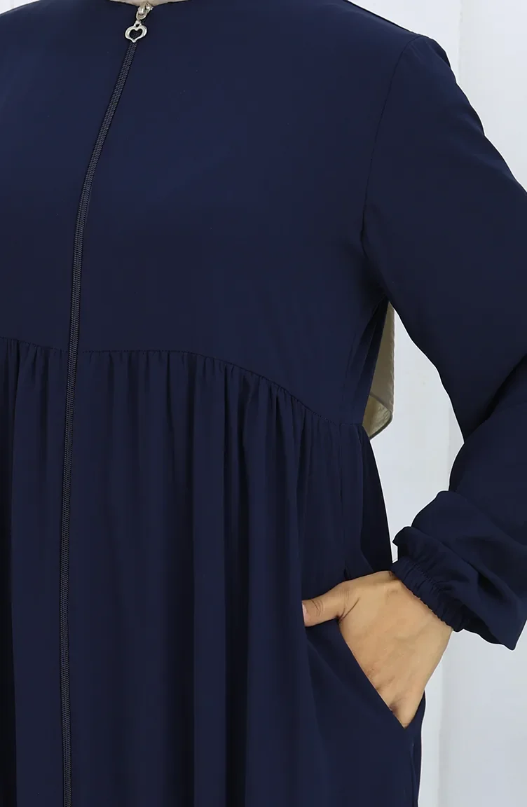 عباية بأكمام مرنة وسحاب 6269-02 أزرق داكن 6269-02
