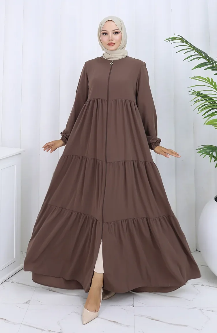 عباية بأكمام مرنة وسحاب 6269-07 لون القهوة الحليبية 6269-07
