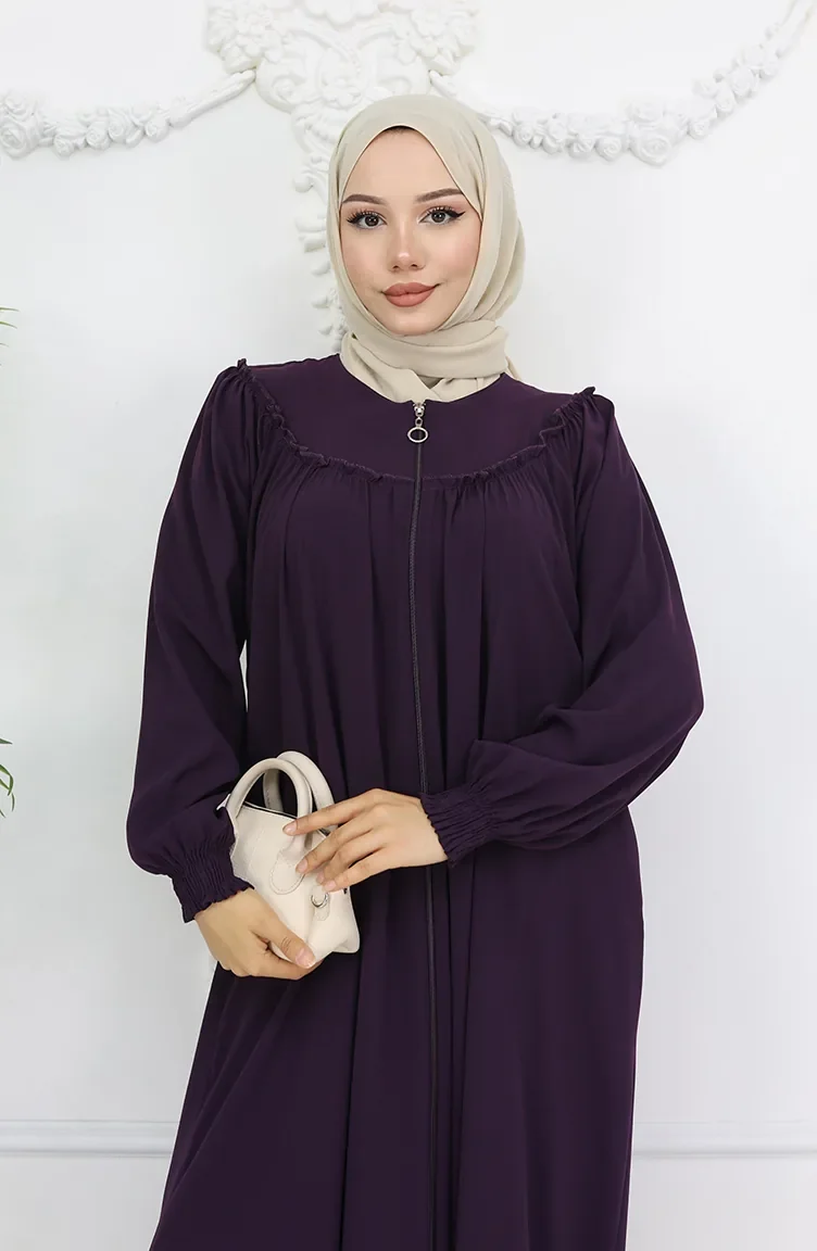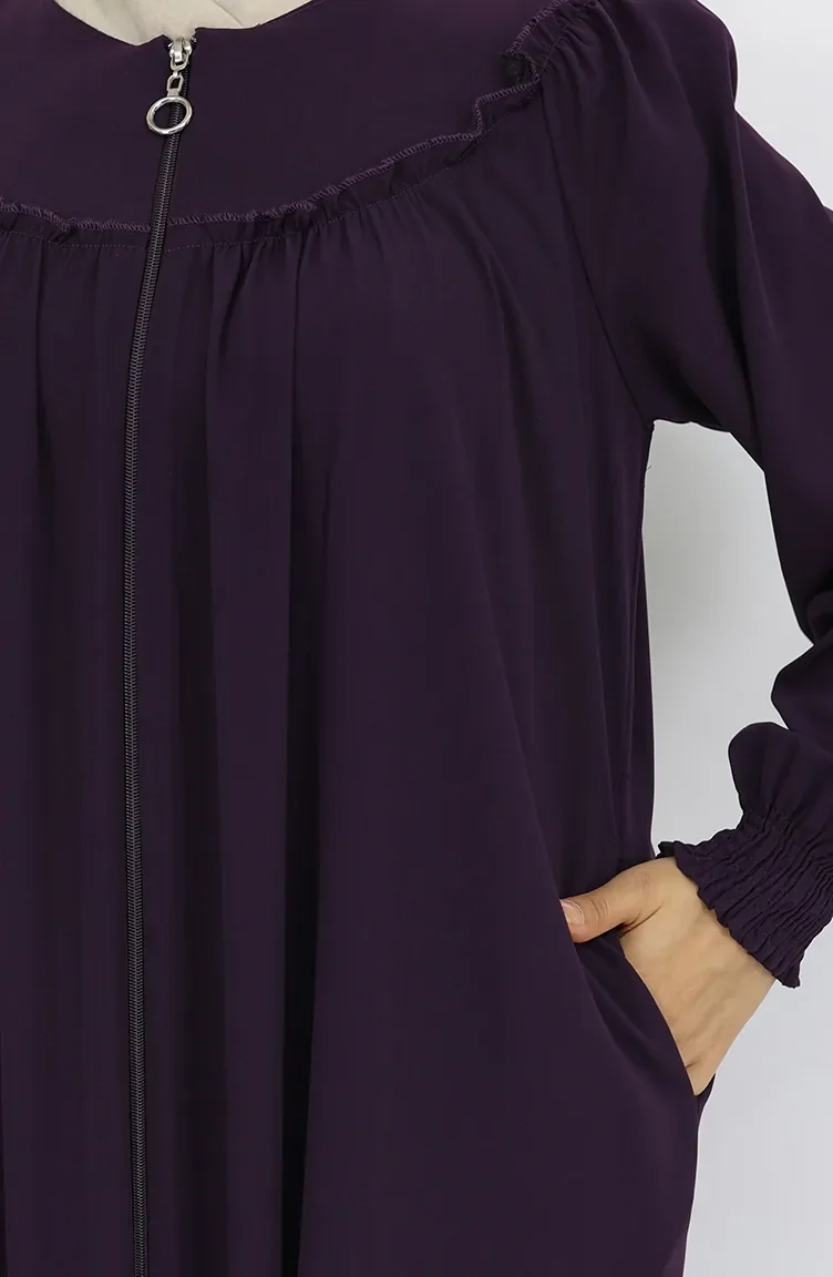 عباية بسحاب ورباط أمامي 6182-02 لون أرجواني 6182-02