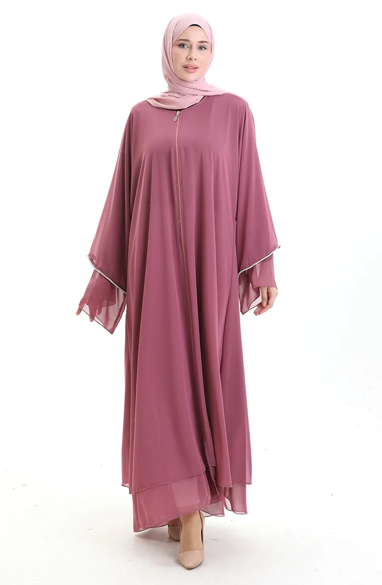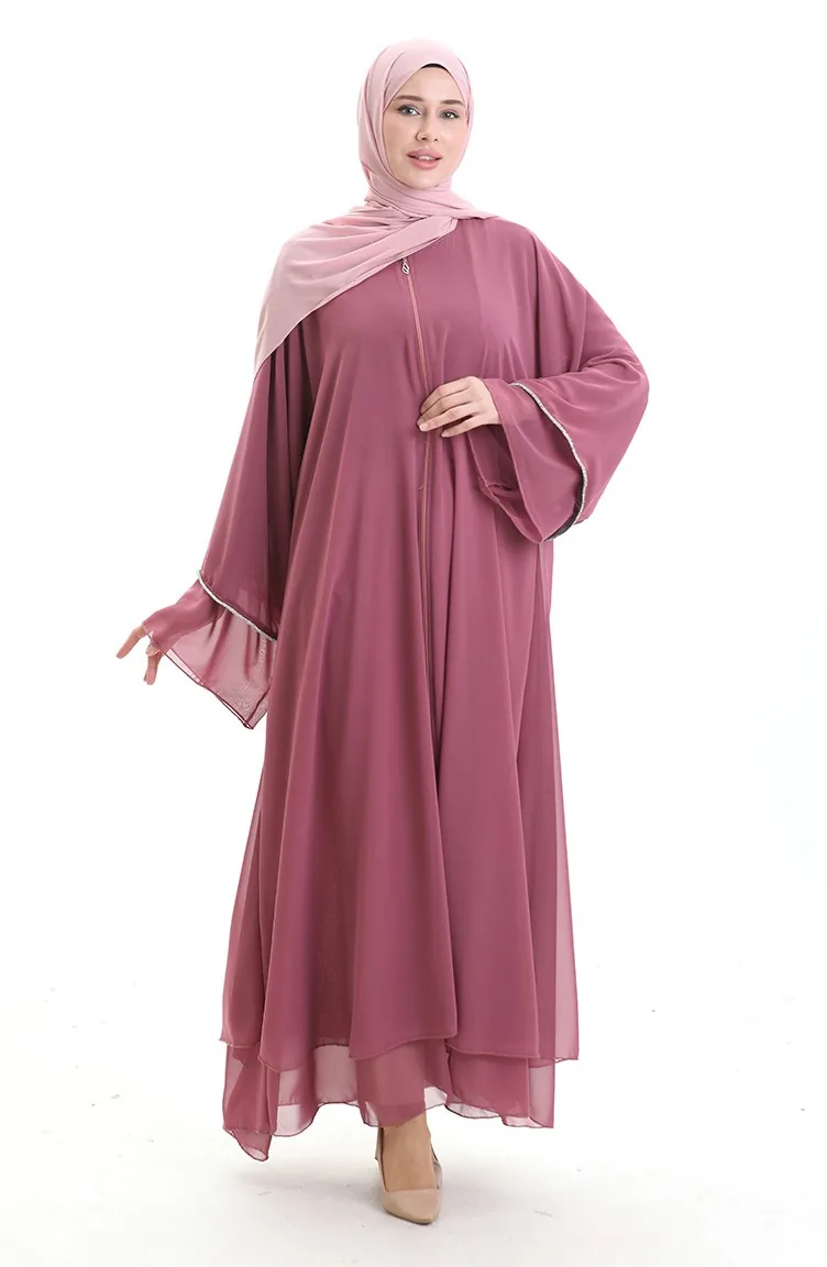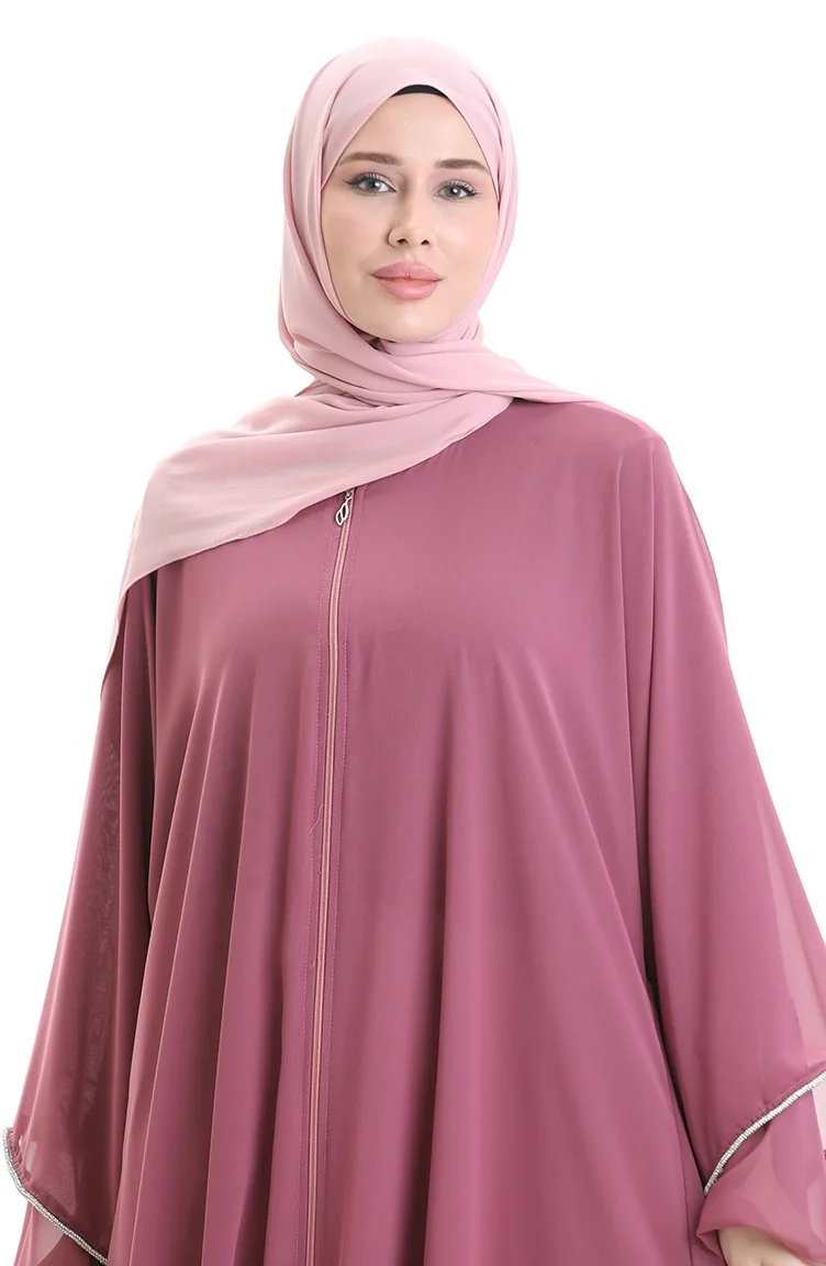 عباية بسحاب مع تفاصيل حجرية على الأكمام 0167-05 داستي روز 0167-05