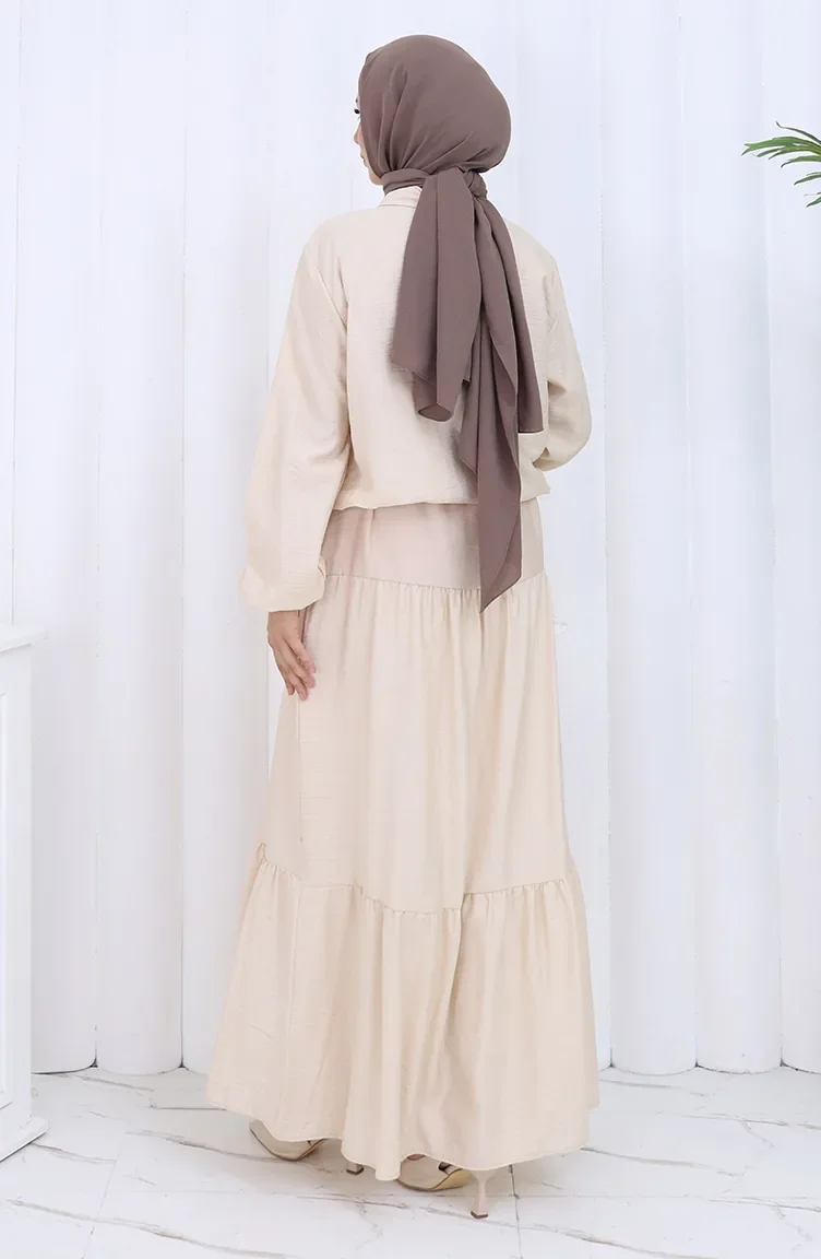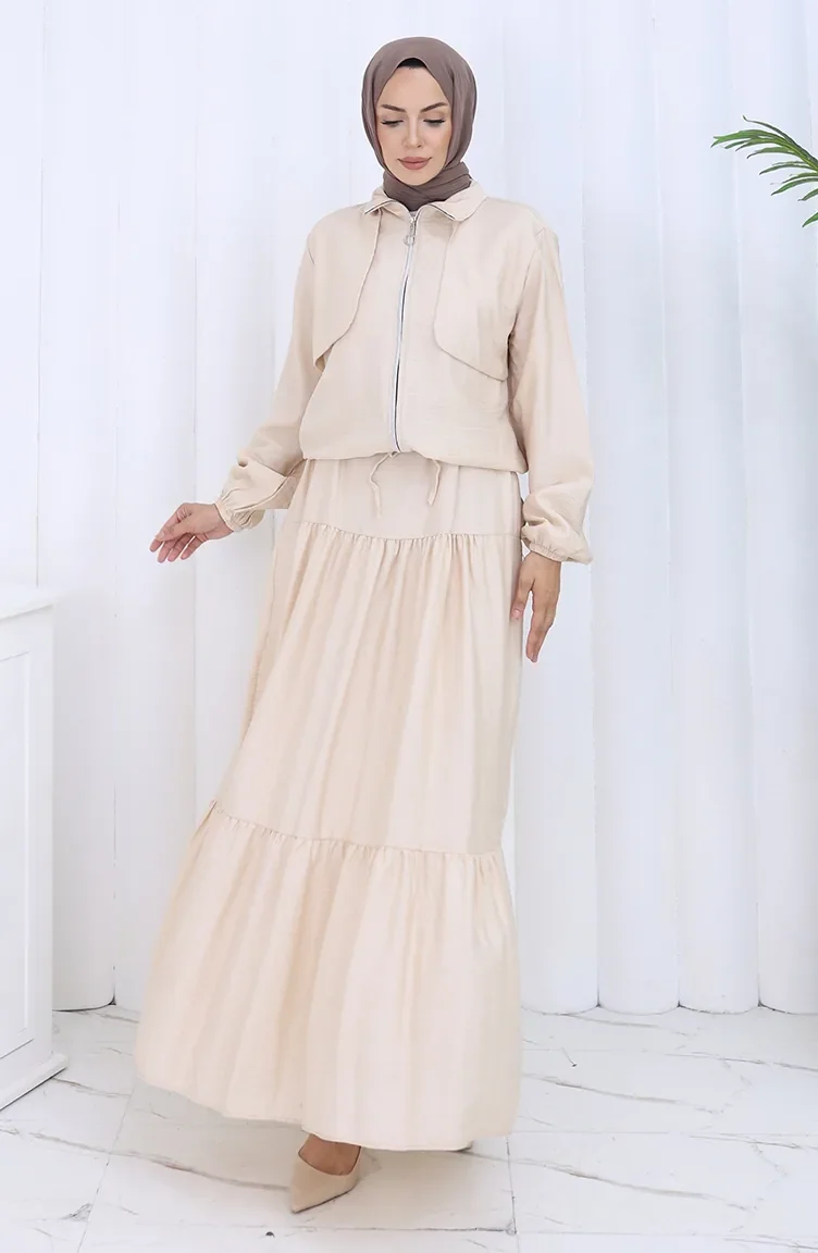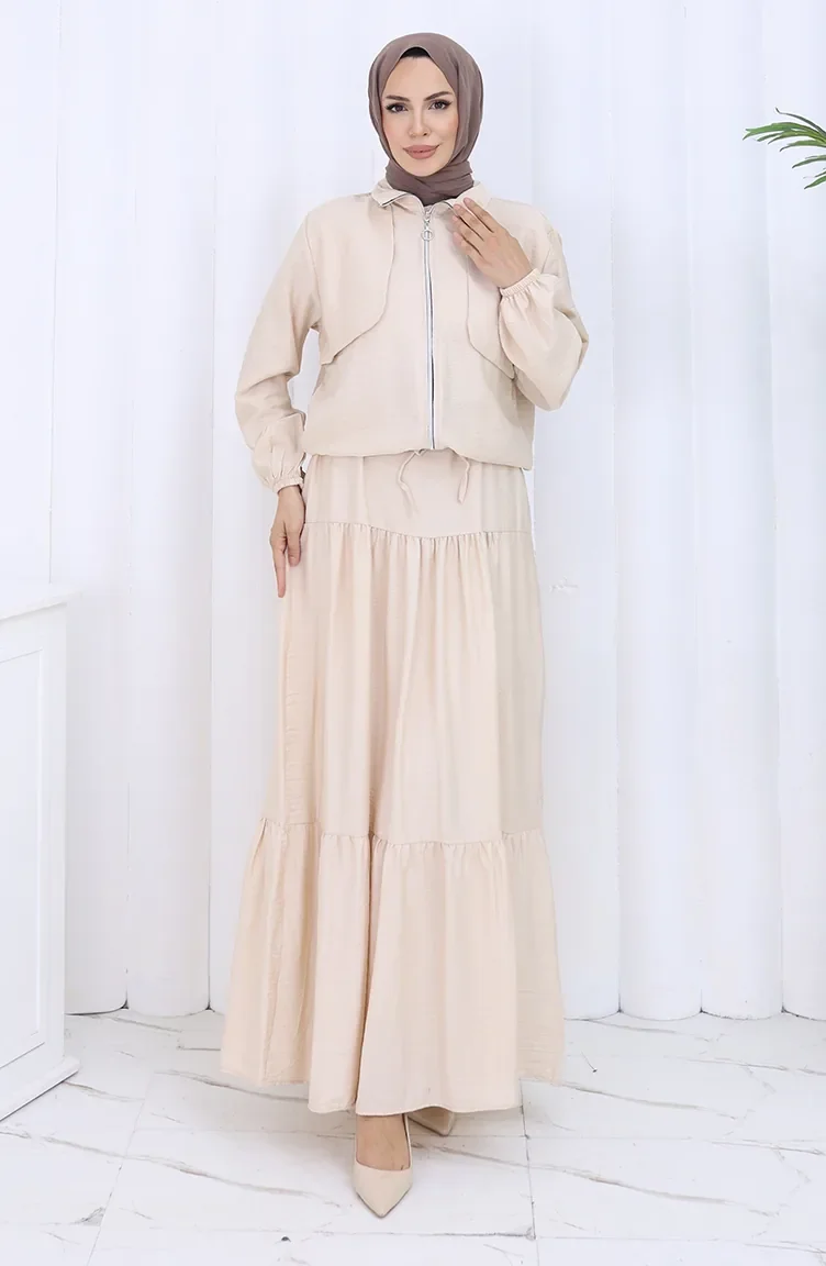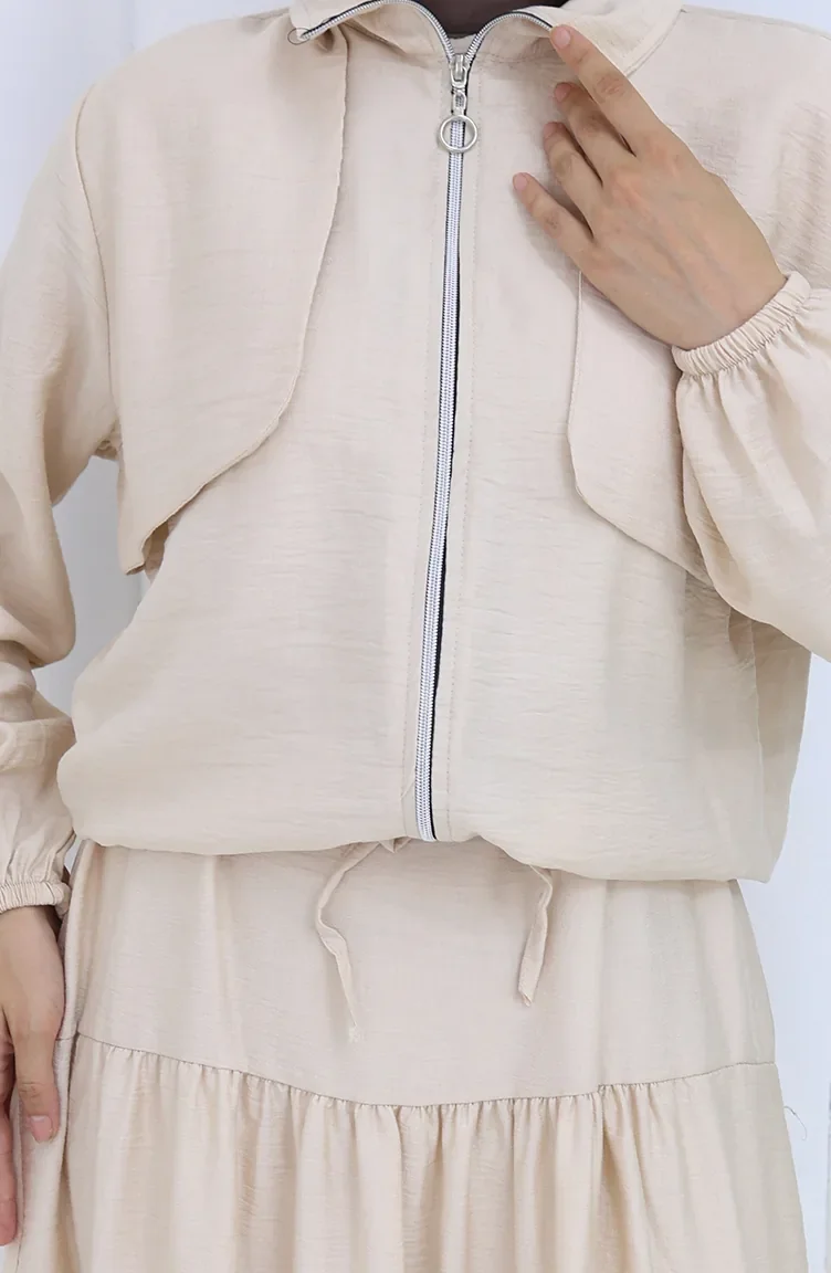 بدلة من قطعتين بأكمام مرنة وسحاب 0129-12 بيج 0129-12