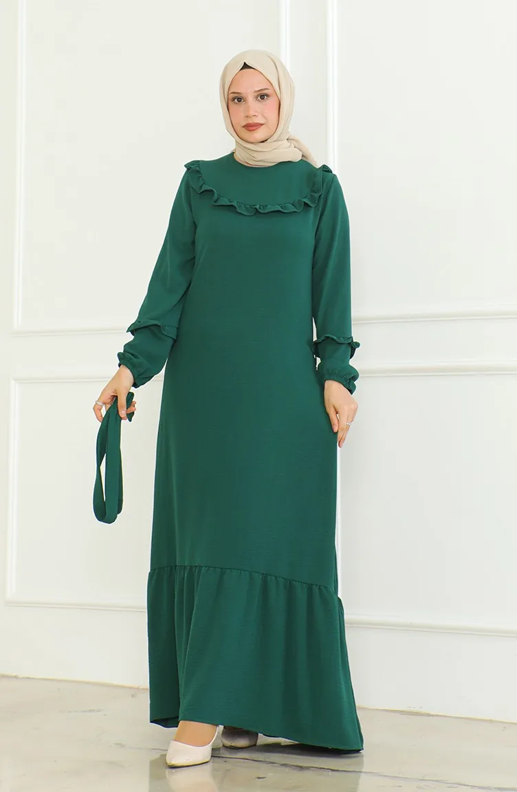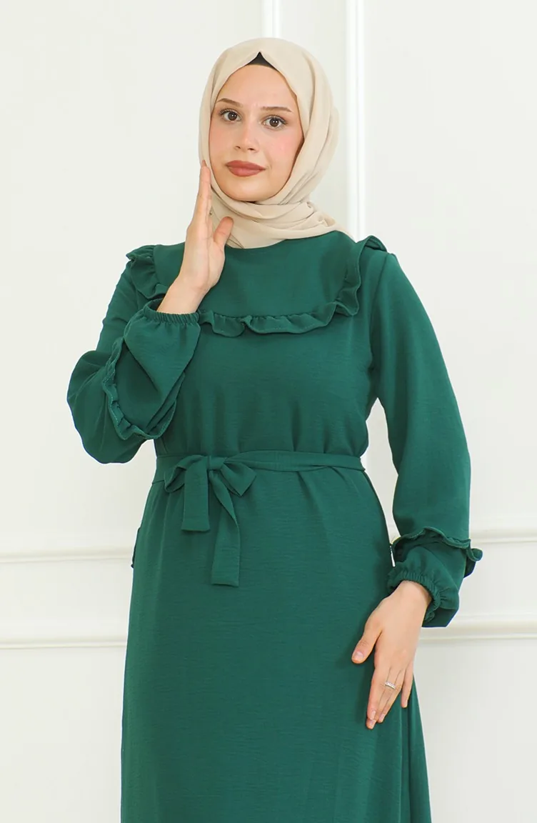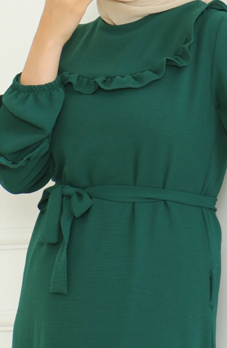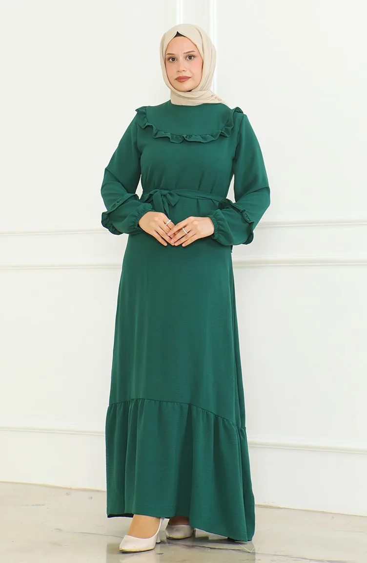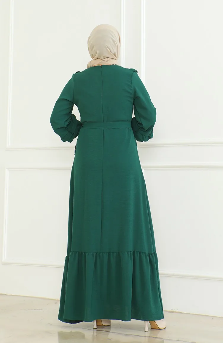 فستان آيروبين بحزام 0478-01 أخضر زمردي 0478-01