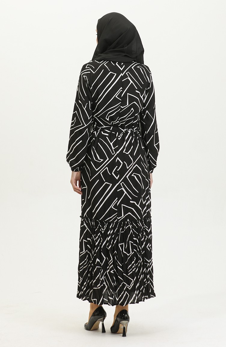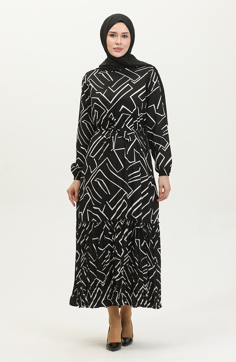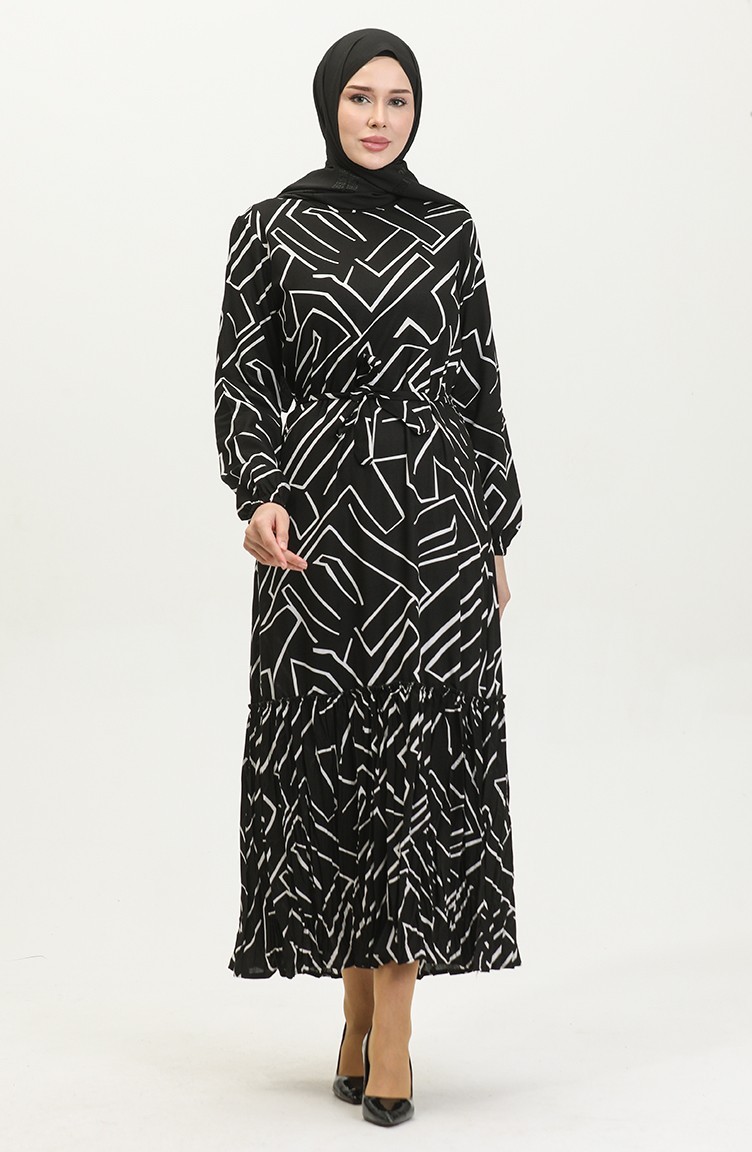 فستان أليسا من الفيسكوز بحزام 4599K-01 أسود 4599K-01