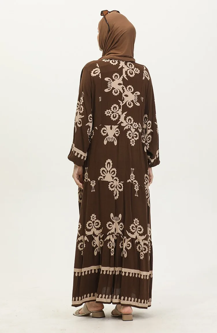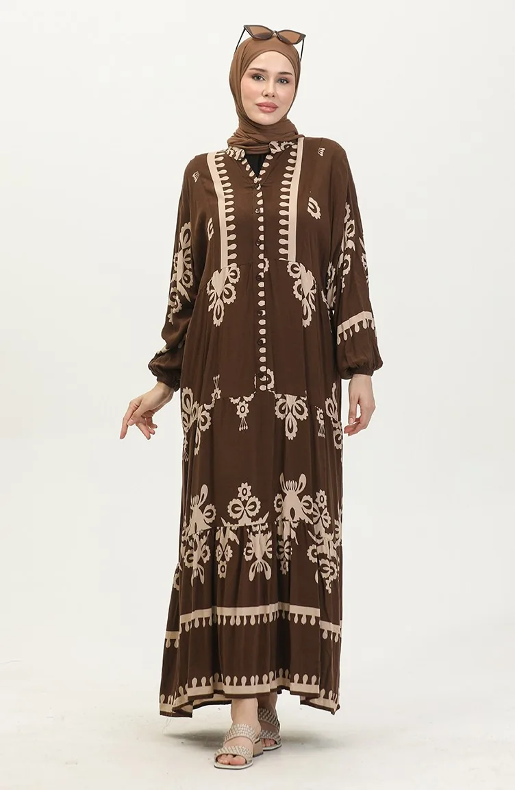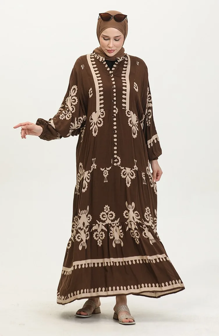 فستان بأكمام بالون 4091-01 بني 4091-01