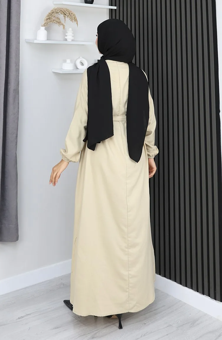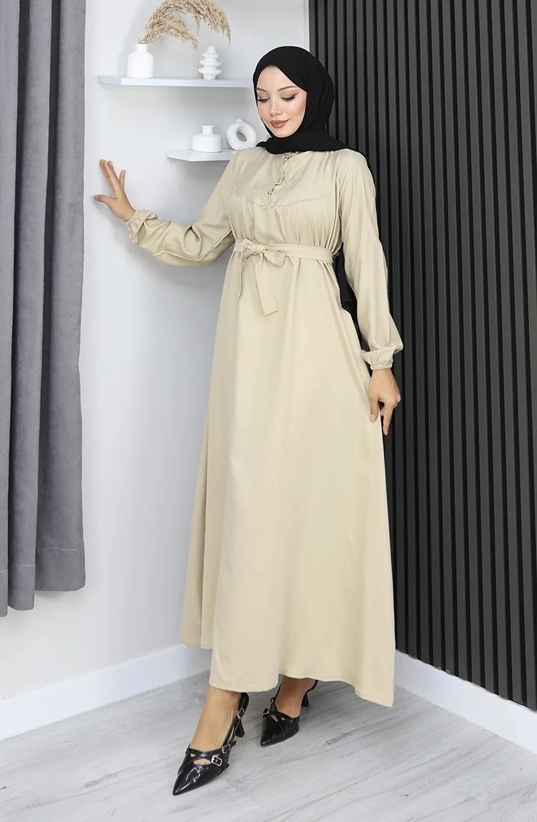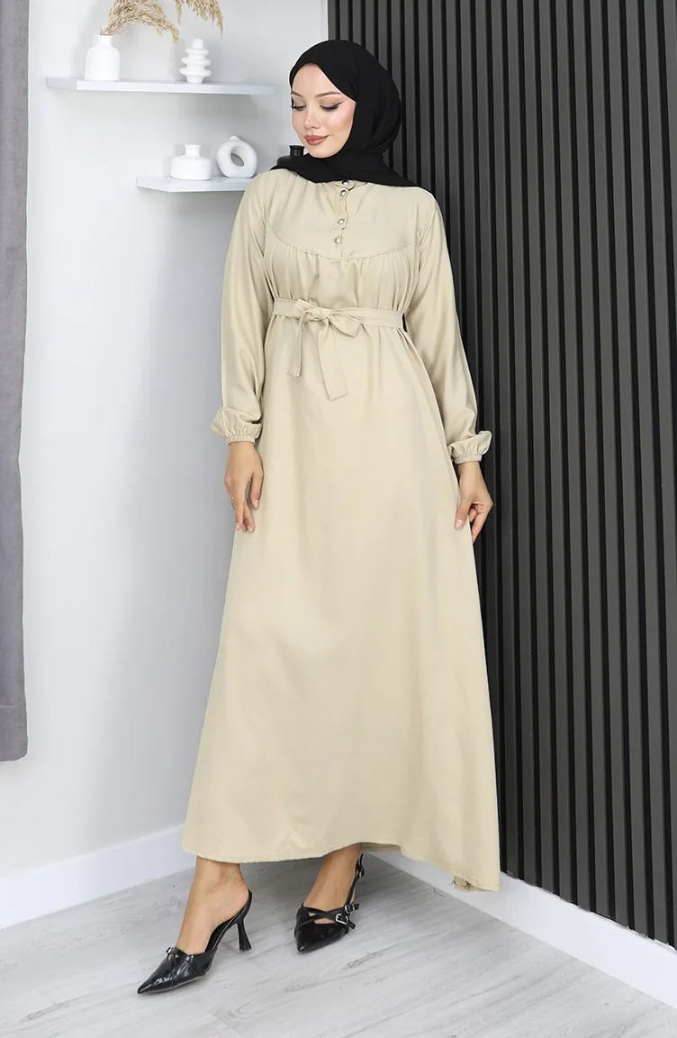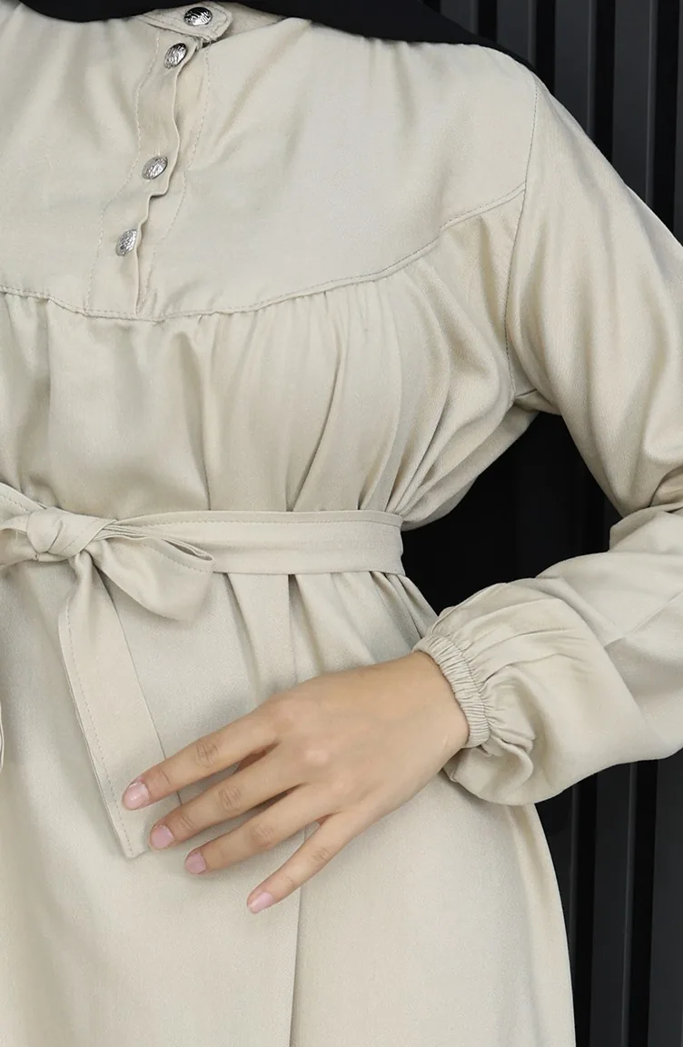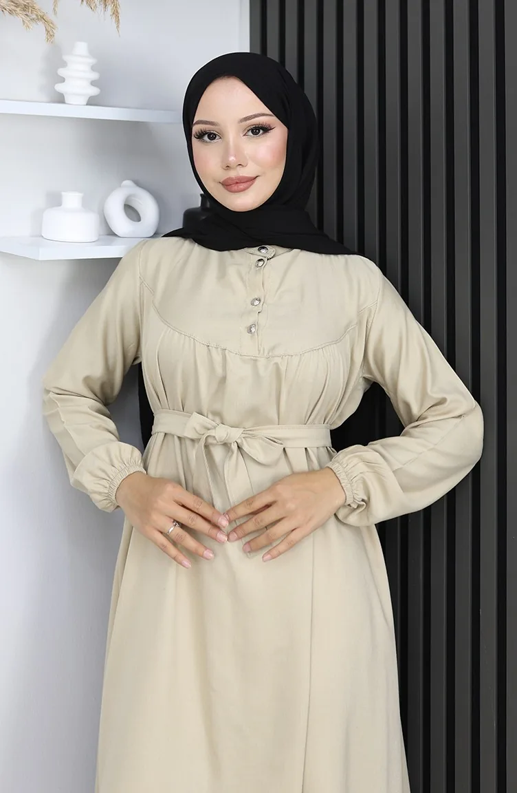 فستان بيلماندو فابريك بحزام وأزرار نصفية 2166-05 بيج 2166-05