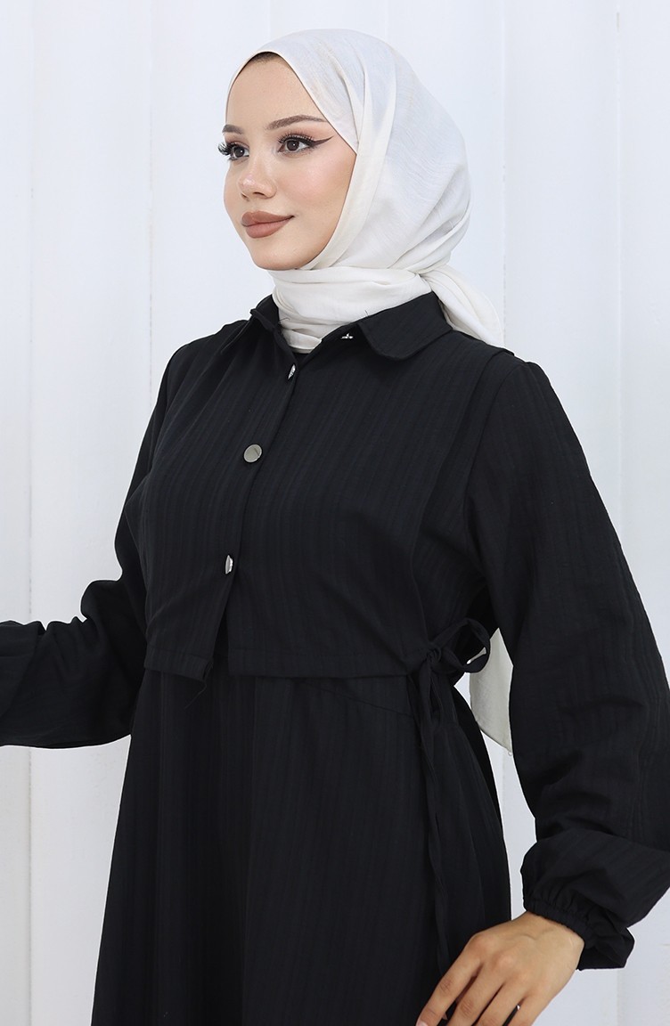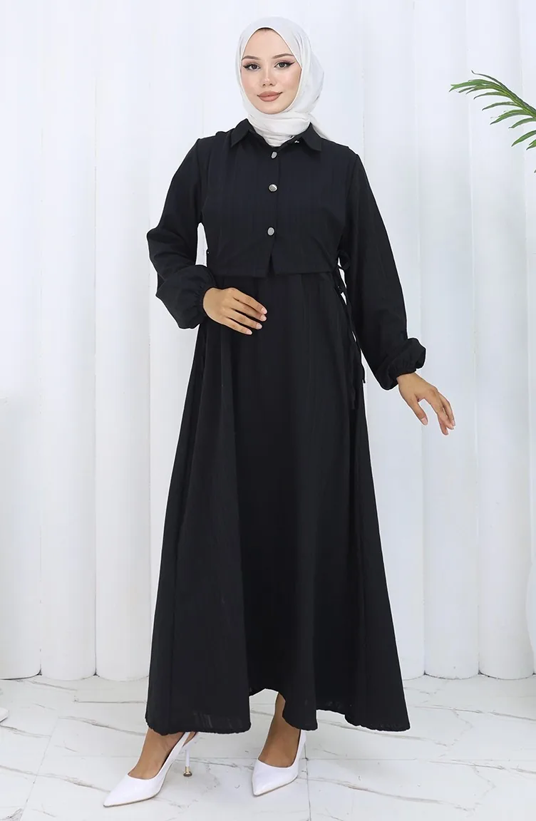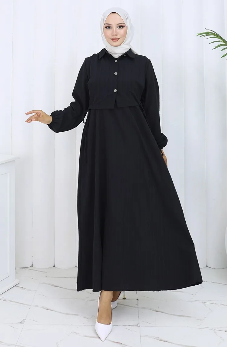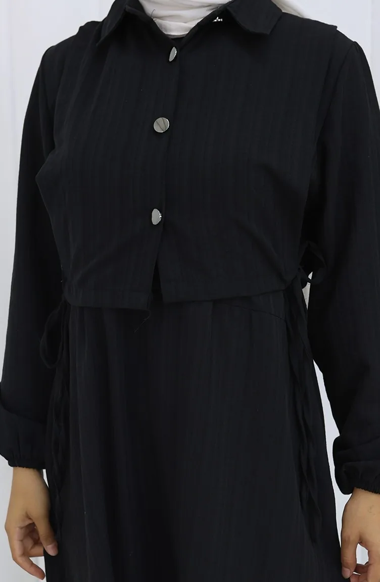 فستان صدرية بأزرار، بدلة من قطعتين، 2119-01 أسود 2119-01