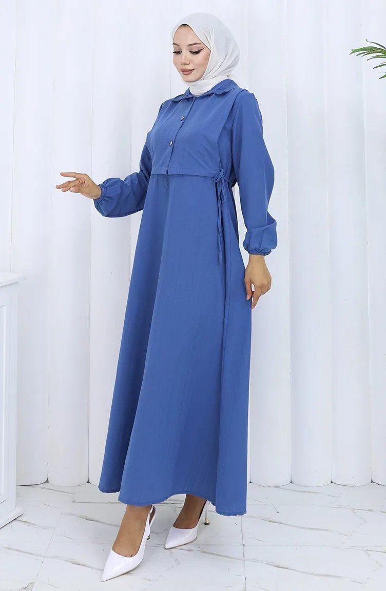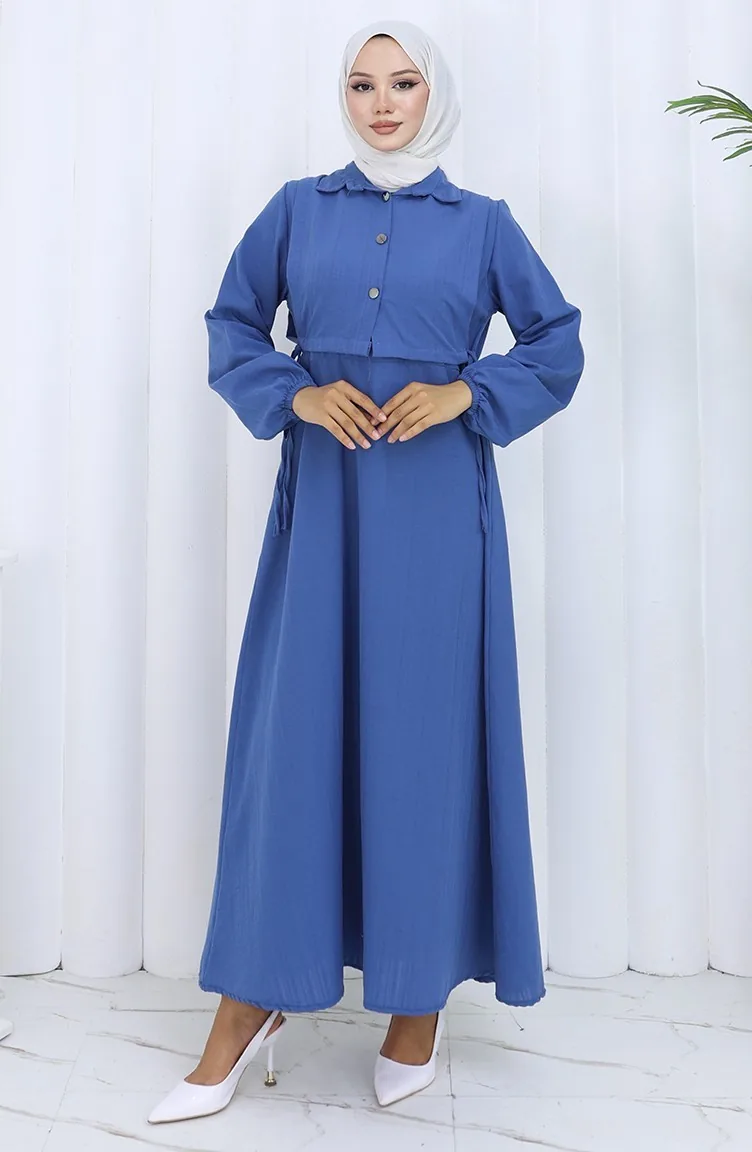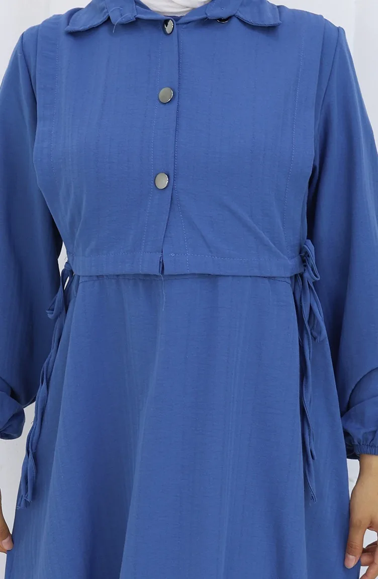 فستان صدرية بأزرار، بدلة من قطعتين، 2119-02 نيلي 2119-02