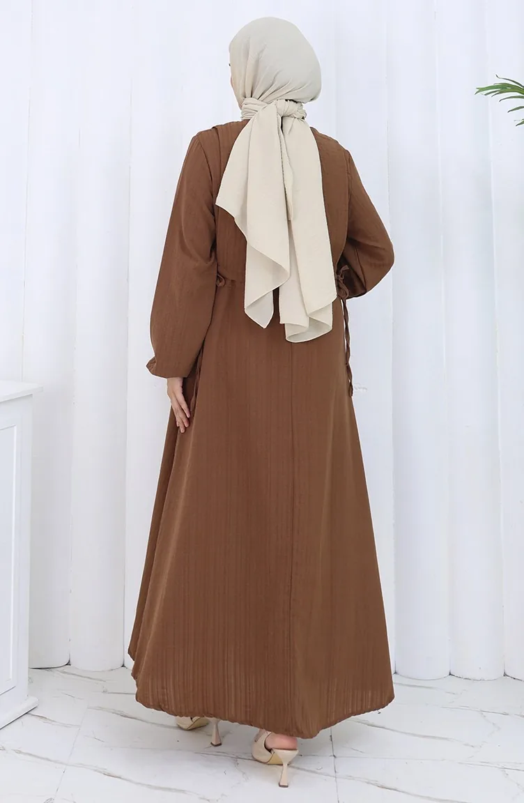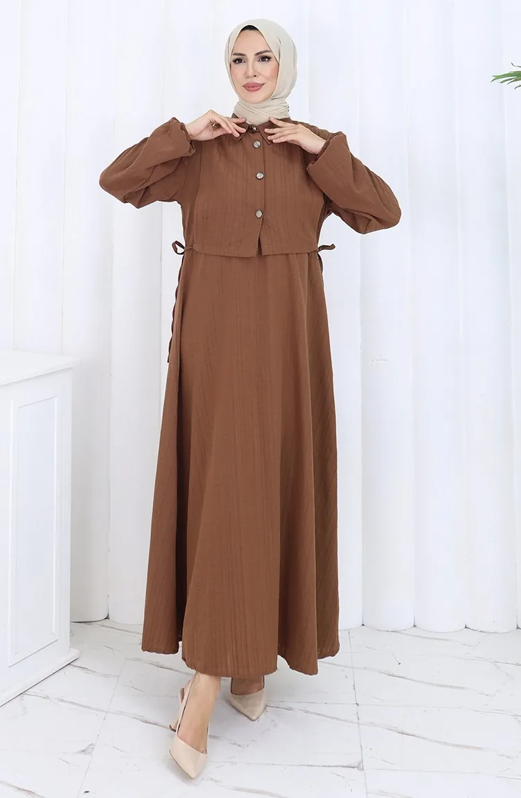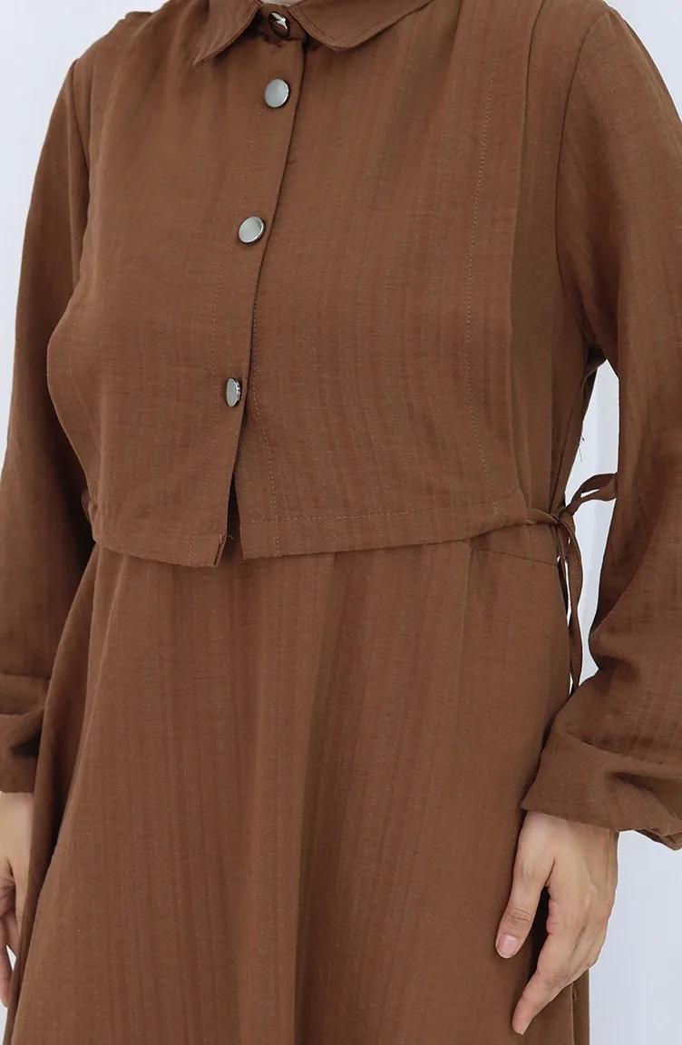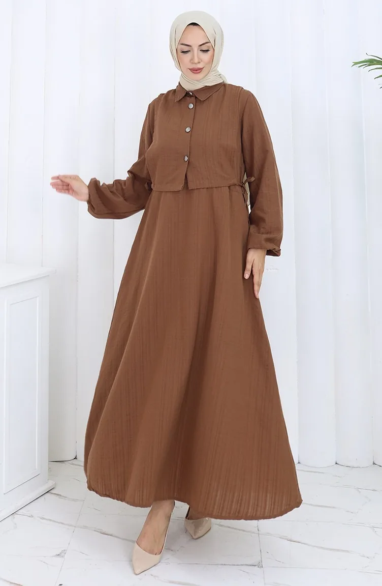فستان صدرية بأزرار، بدلة من قطعتين، 2119-03، بني 2119-03