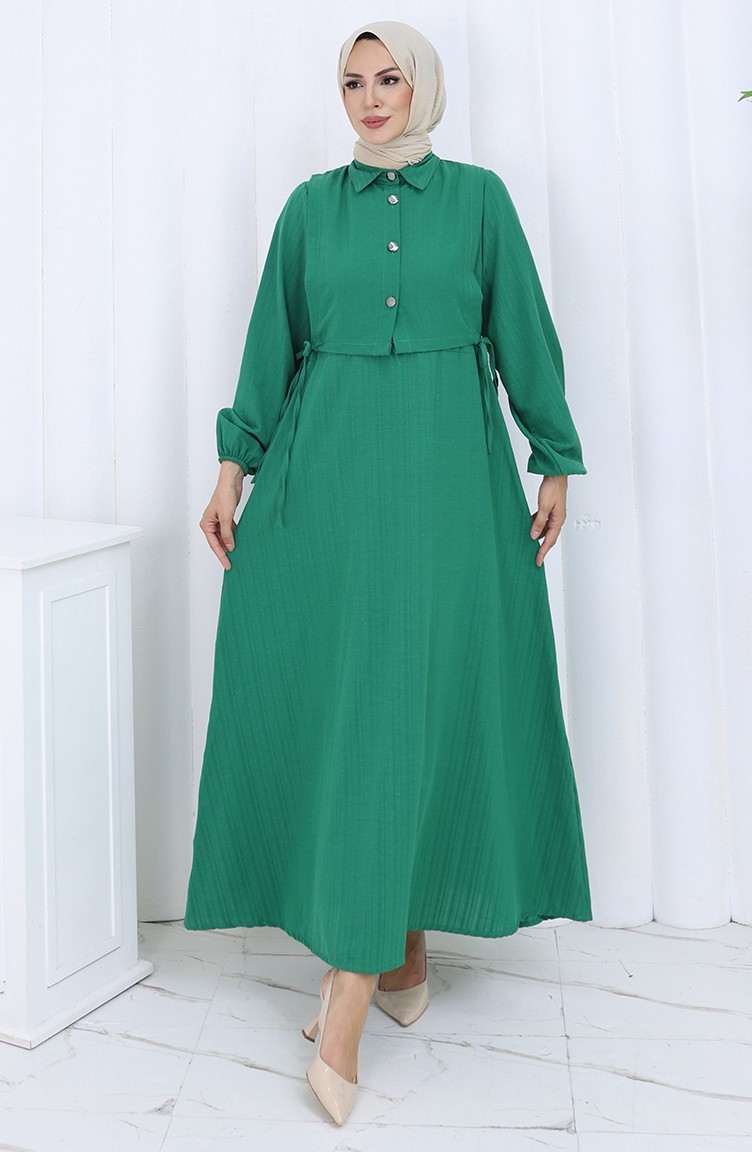فستان صدرية بأزرار، بدلة من قطعتين، 2119-04، أخضر زمردي 2119-04
