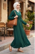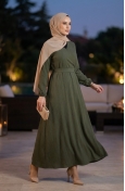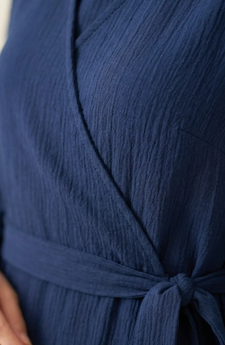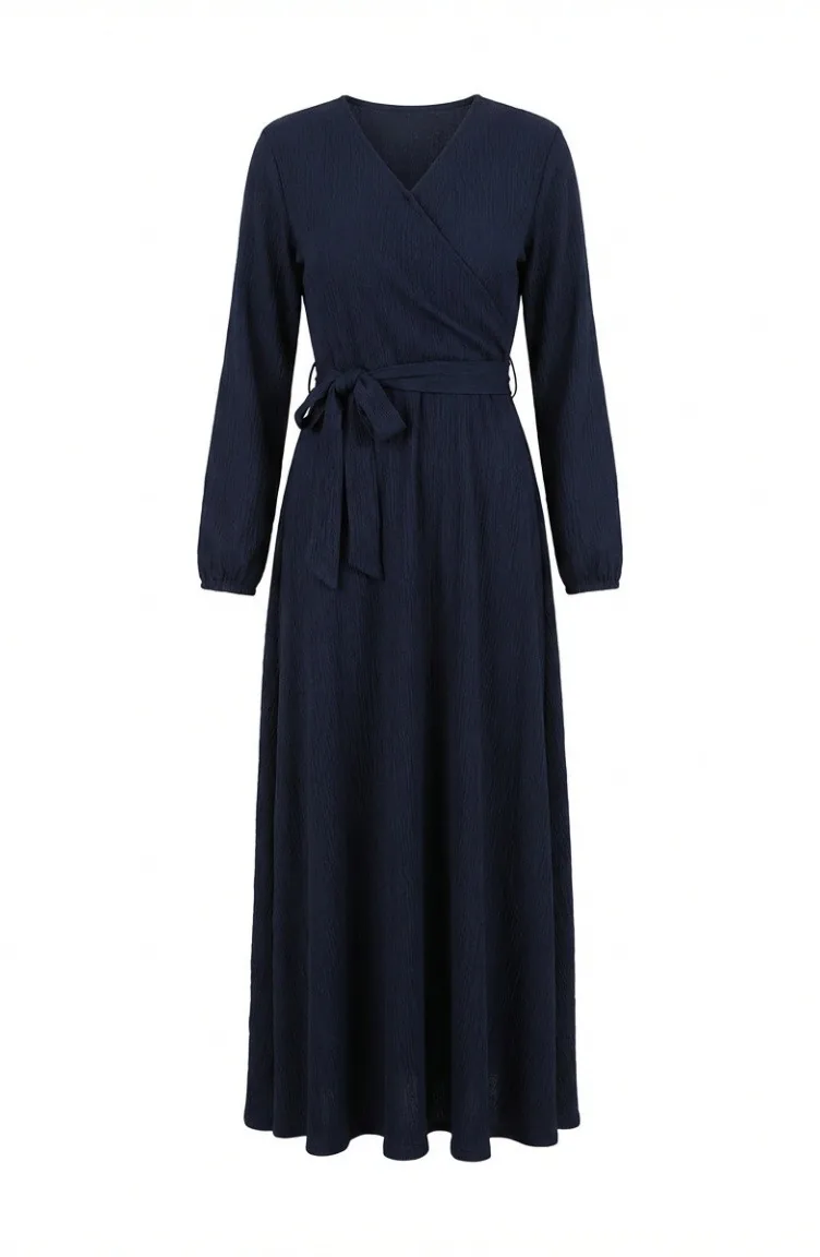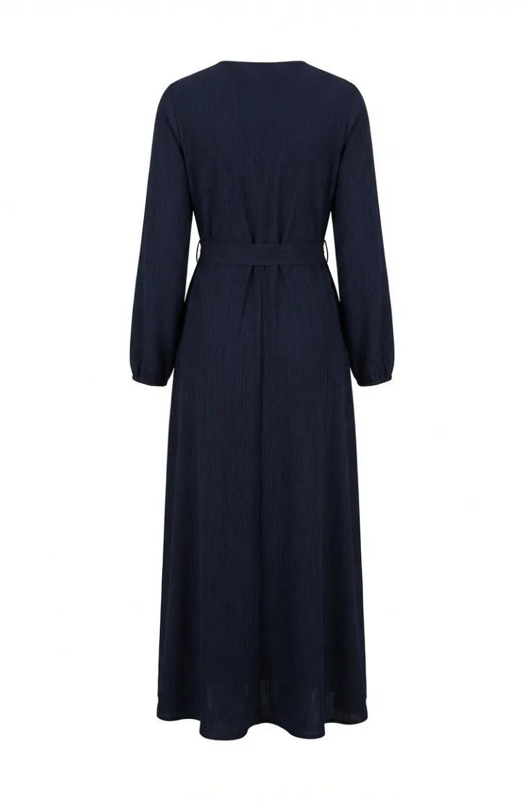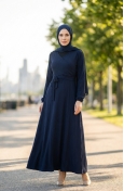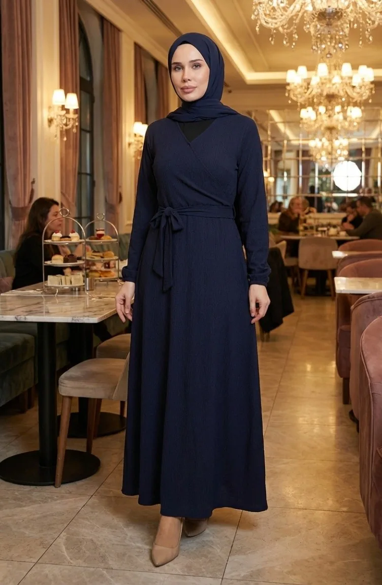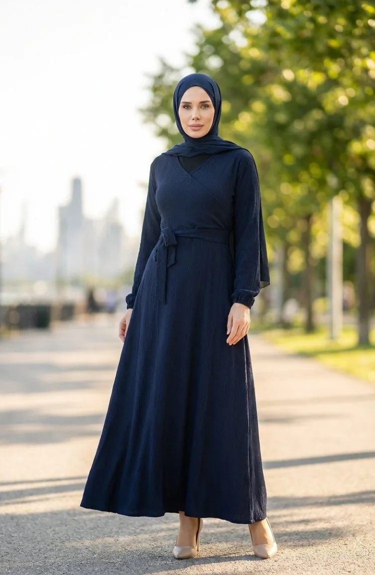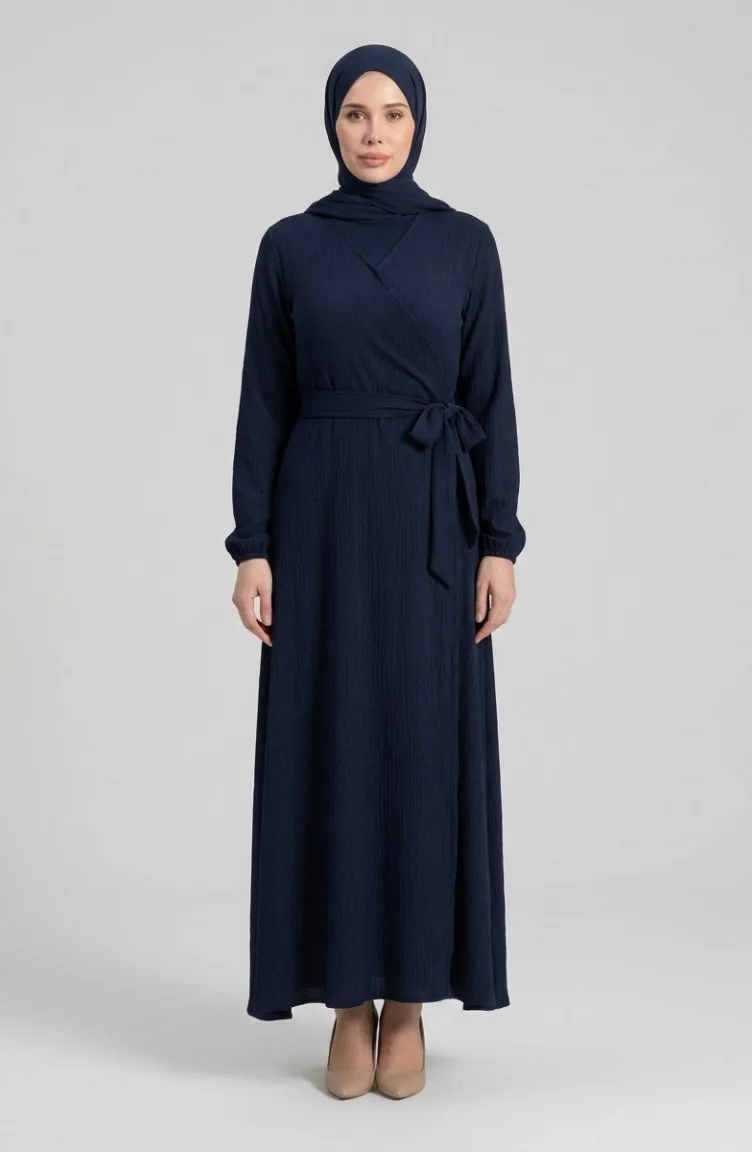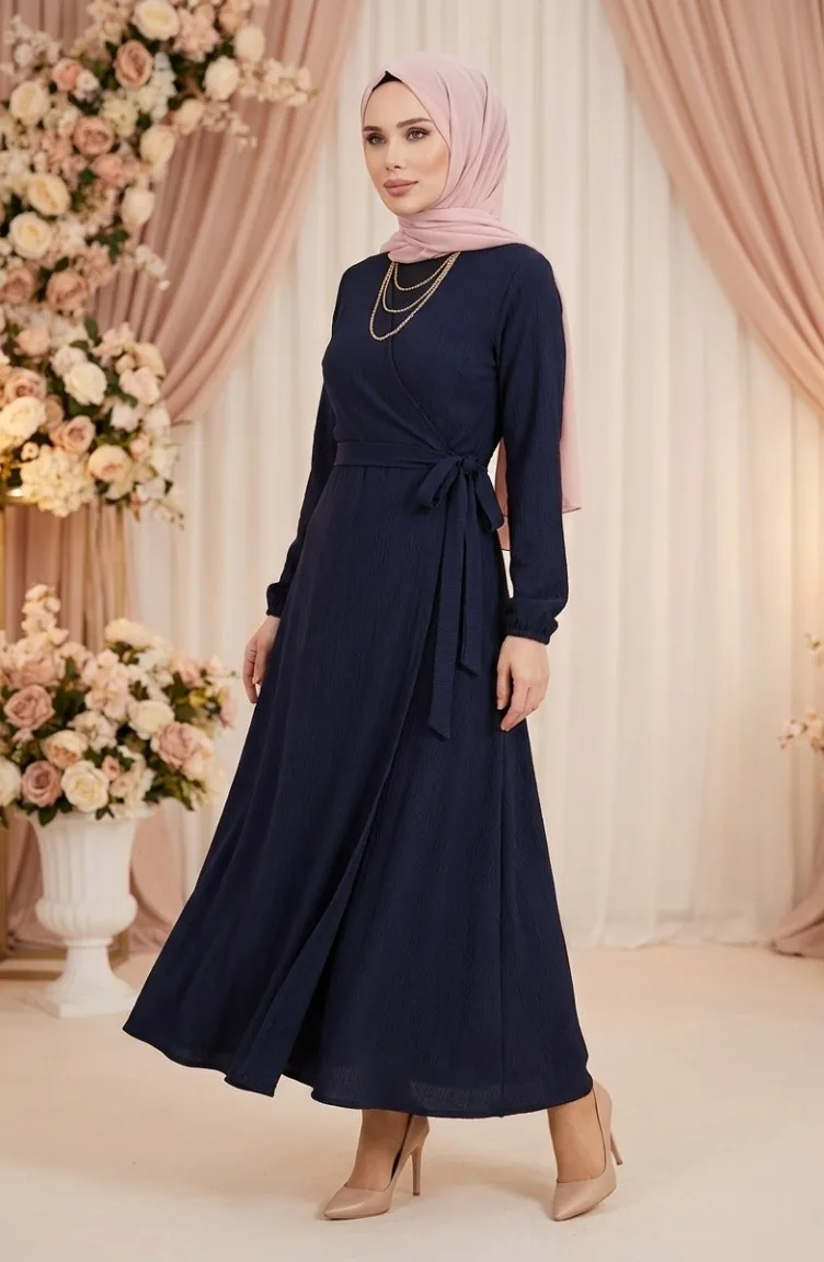 بورومجوك - فستان قماش برباط على الجانب 1033-03 لون كحلي 1033-03