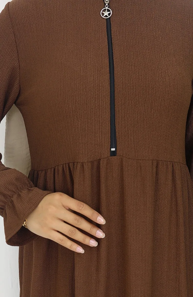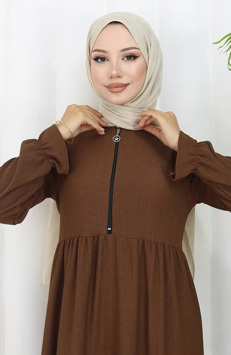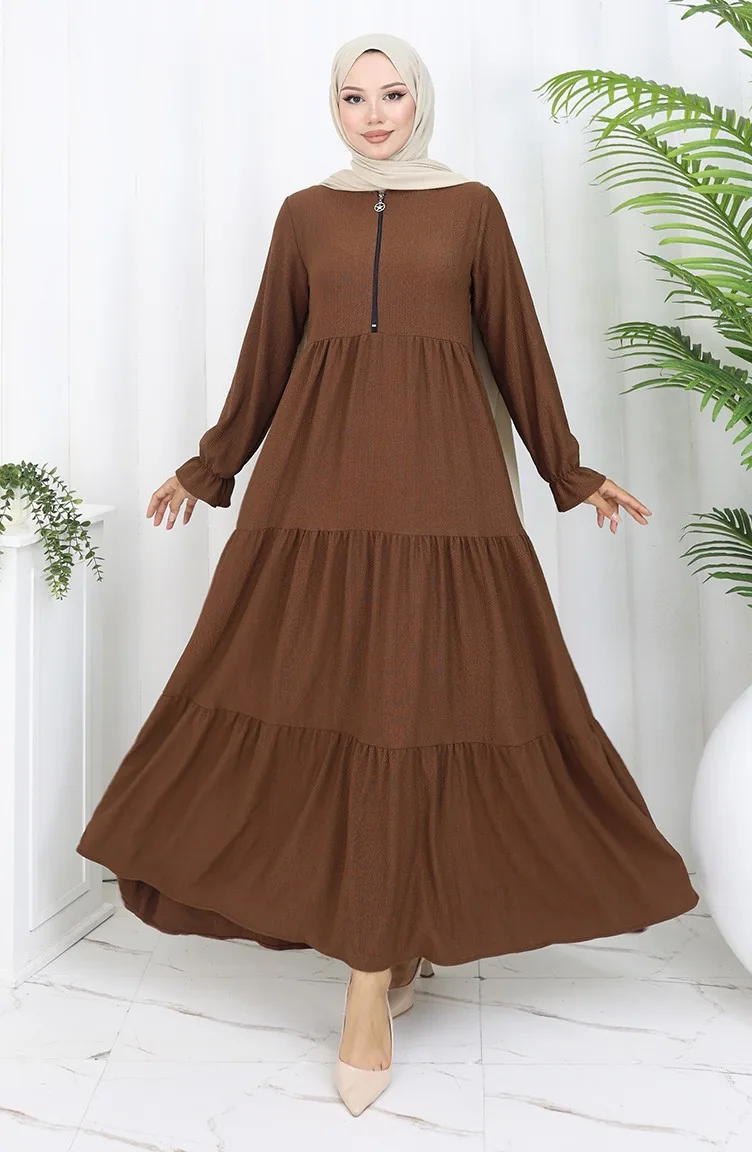 فستان من قماش الكريب بسحاب 6999-03 بني 6999-03
