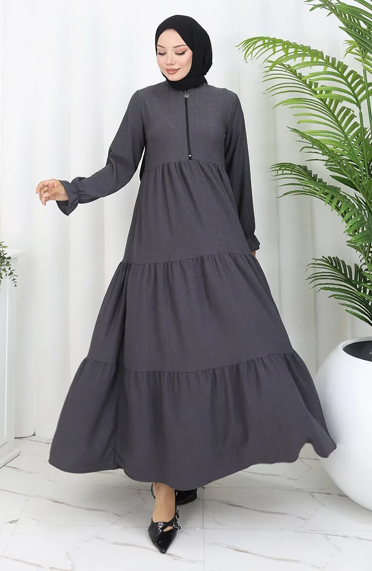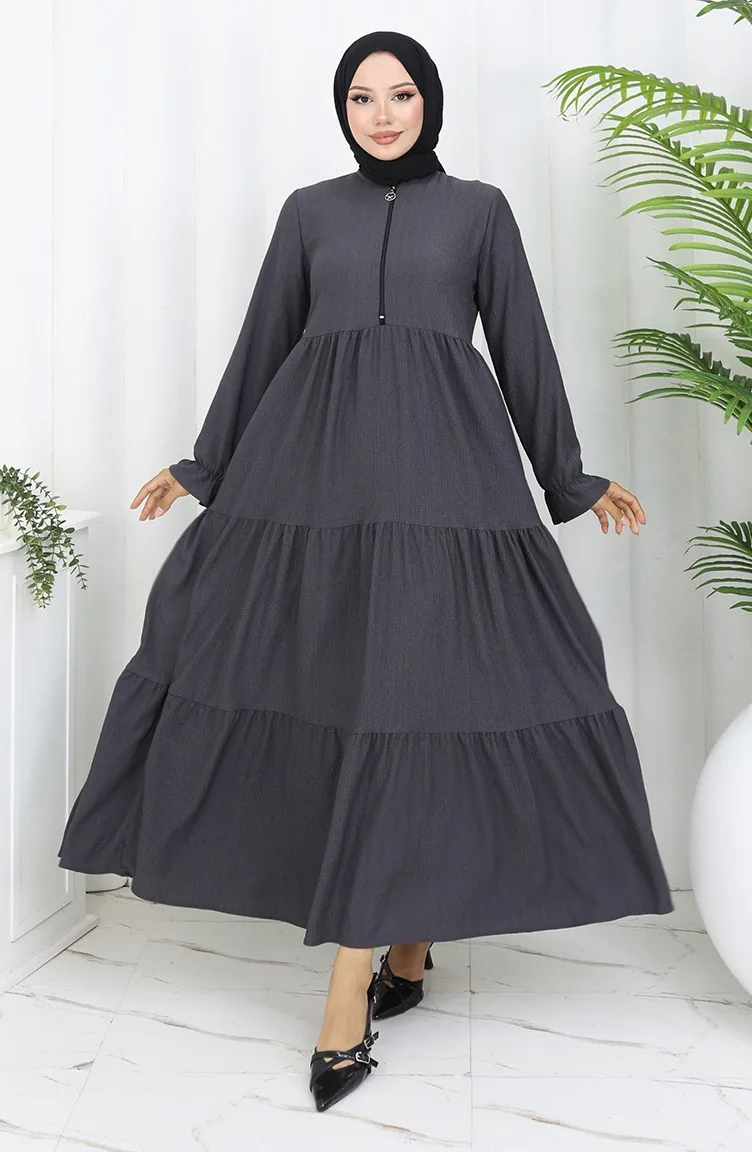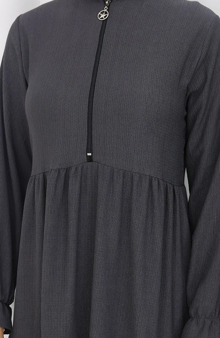 فستان من قماش الكريب بسحاب 6999-05 أنثراسيت 6999-05