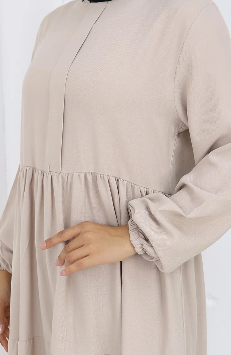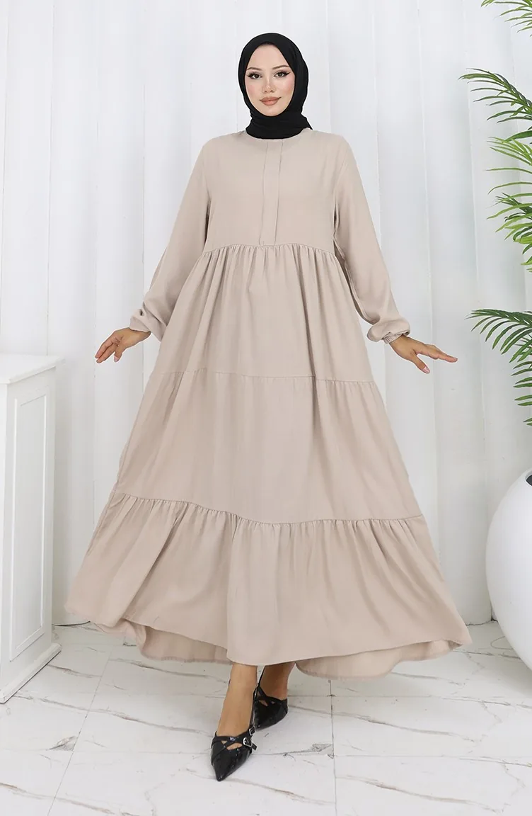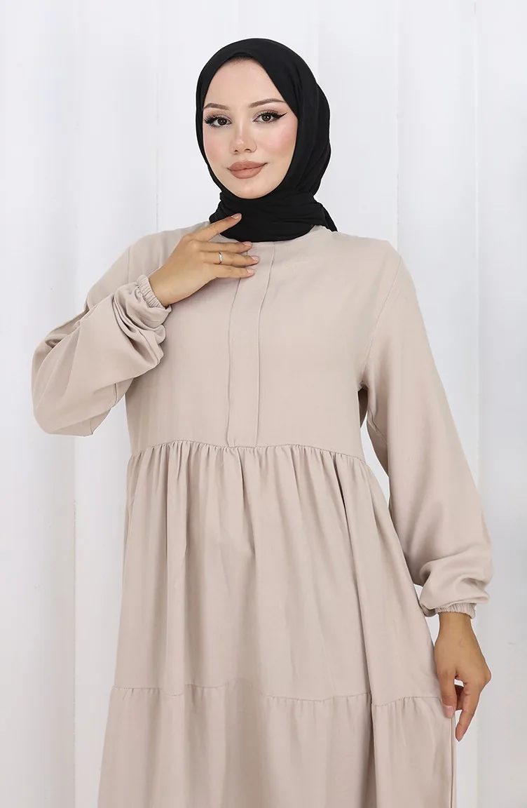 فستان بخصر مطوي وأكمام مرنة 2149-06 حجري 2149-06