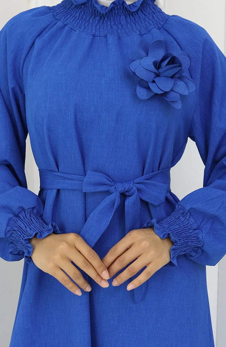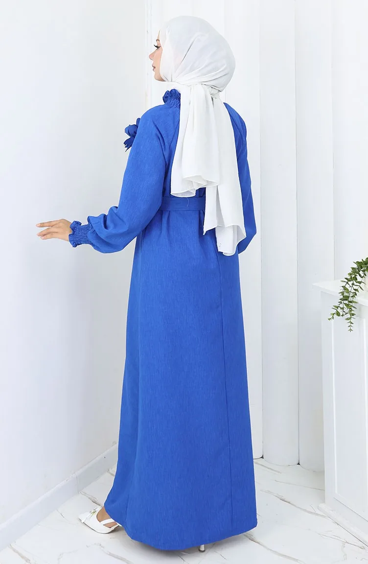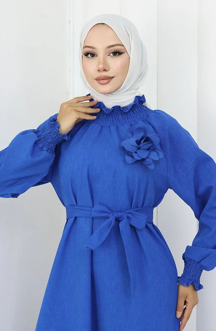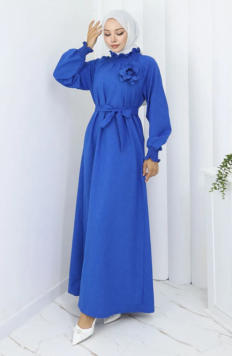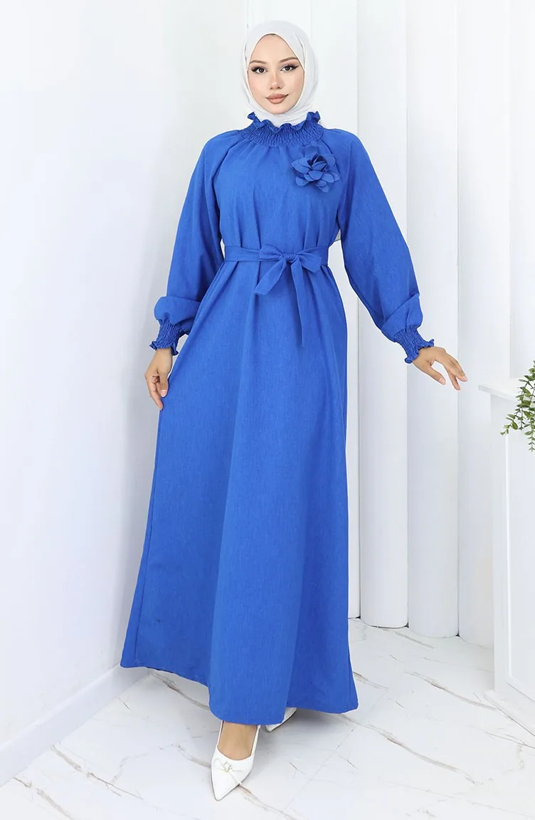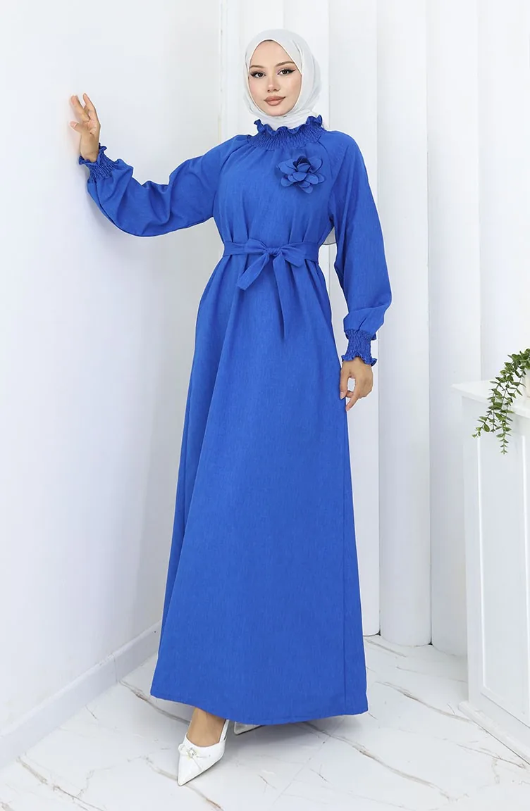 فستان بحزام مطاطي مفصل 2063-05 ساكس 2063-05
