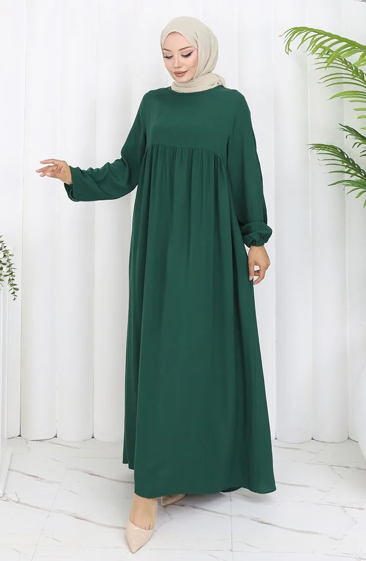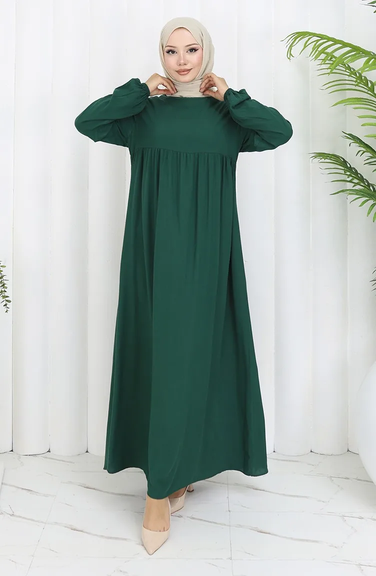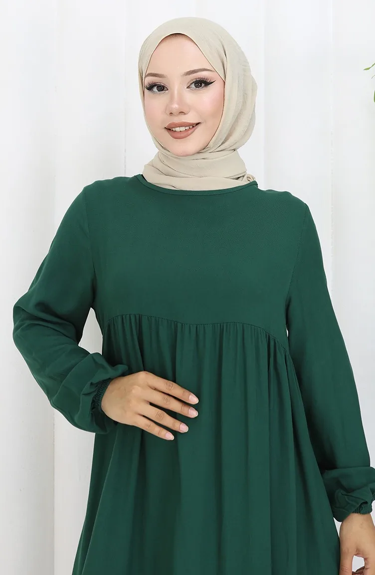 فستان خصر مجمع 4102-03 أخضر زمردي 4102-03