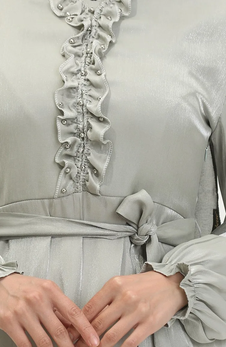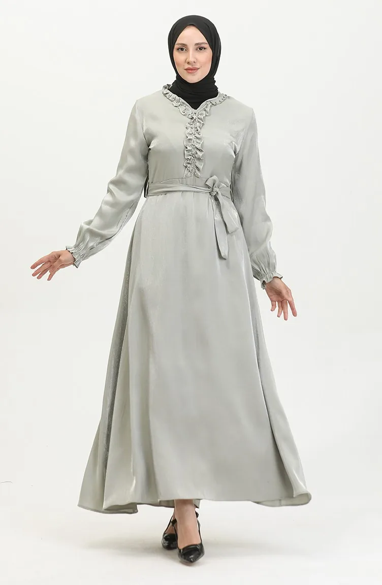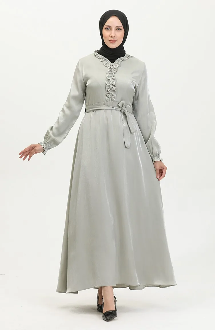 فستان كتان لامع 81863-06 أخضر مينت 81863-06