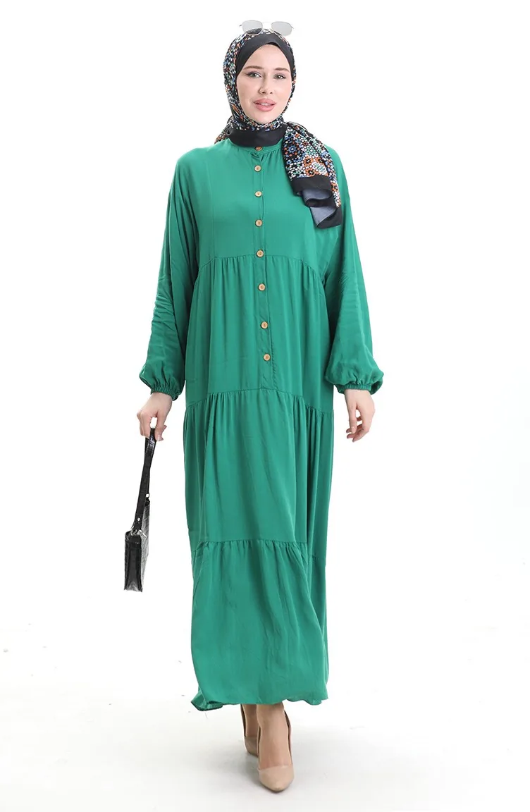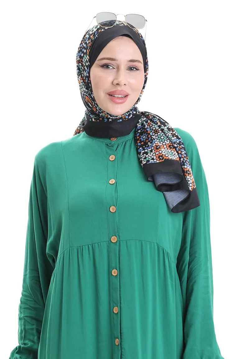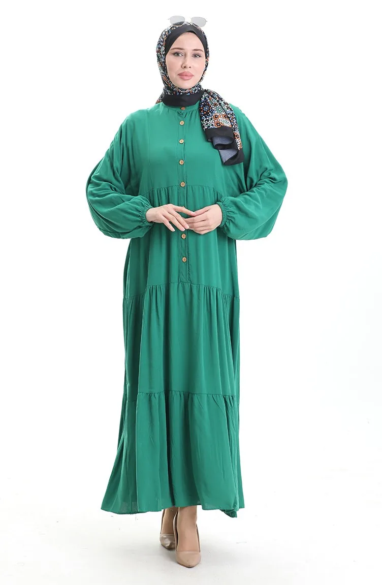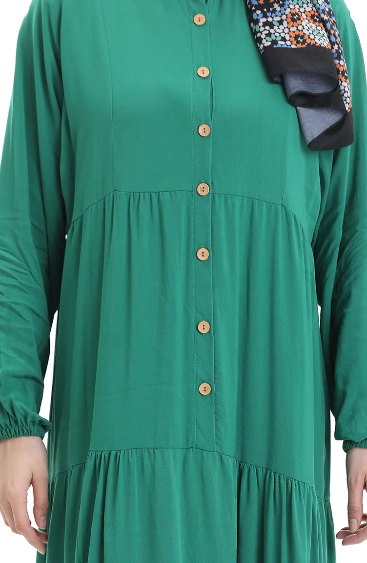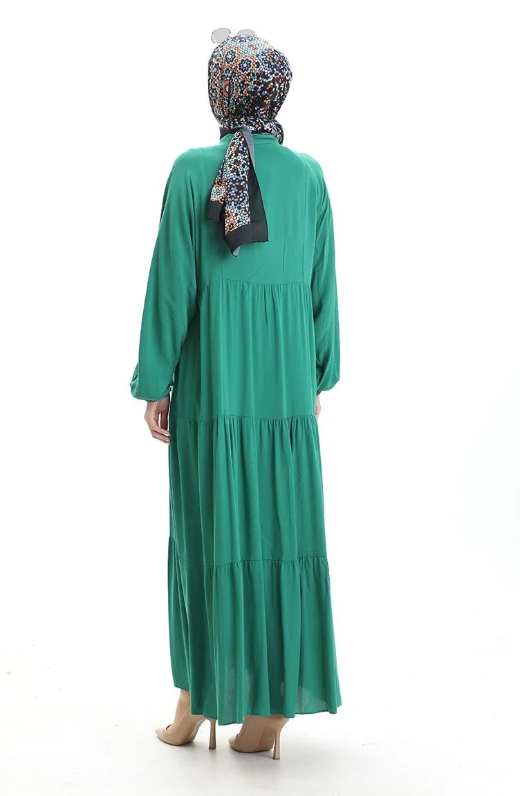 فستان نصف أزرار مع ياقة جد 0090-05 أخضر زمردي 0090-05