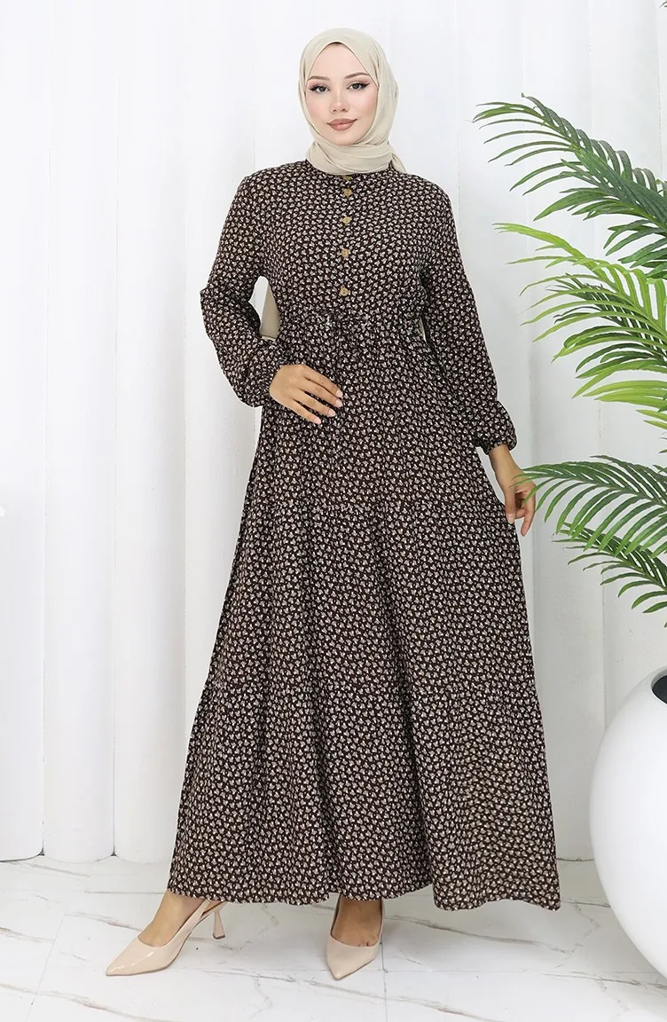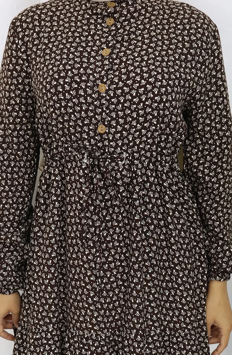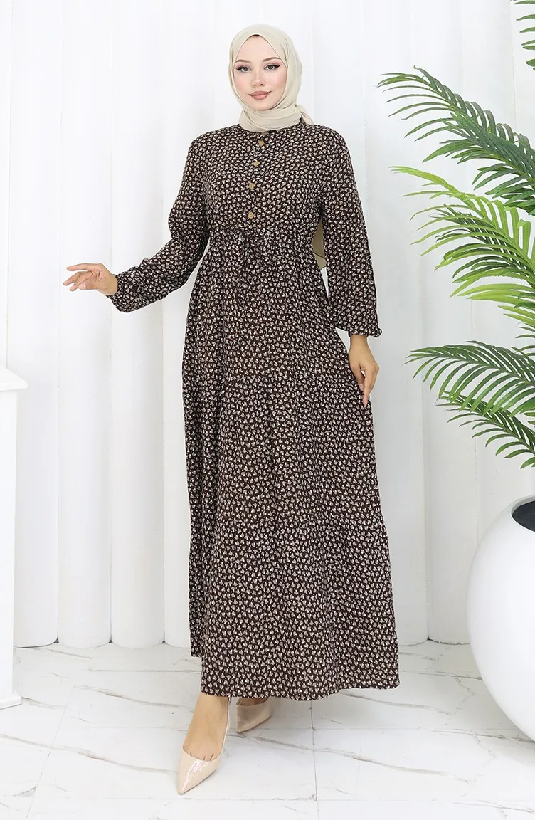 فستان نصف أزرار مع خصر مطوي 0110-01 بني 0110-01