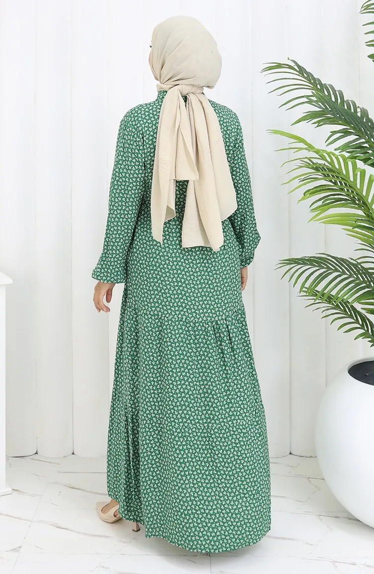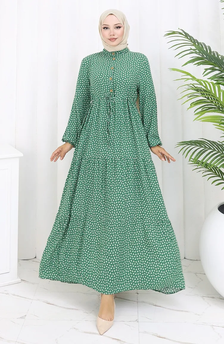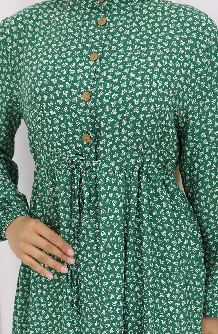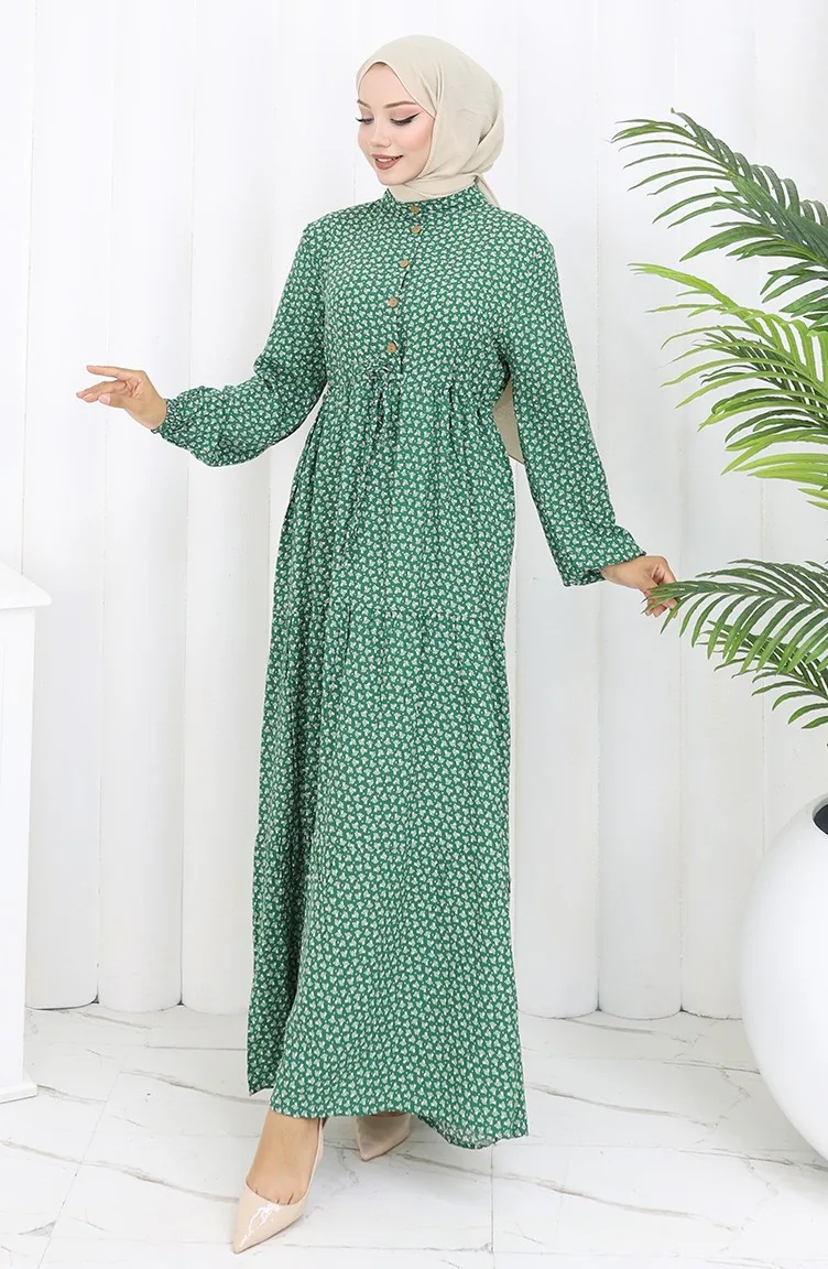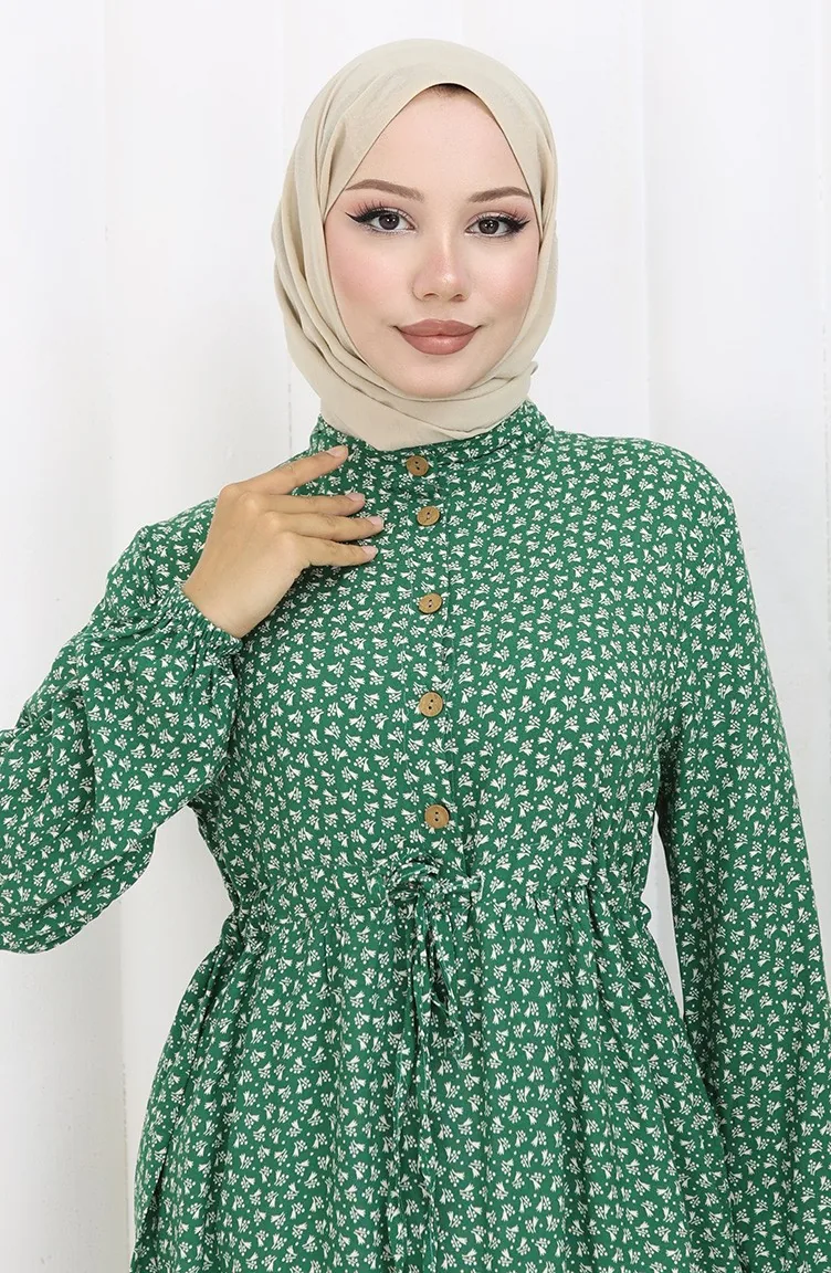 فستان نصف أزرار مع خصر مطوي 0110-03 أخضر 0110-03