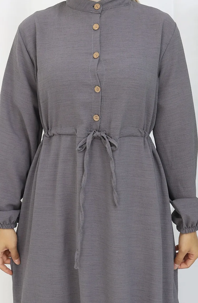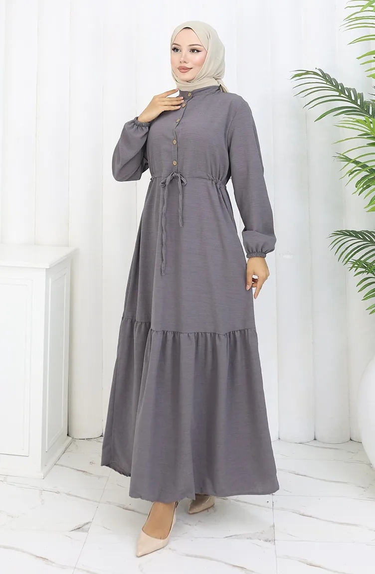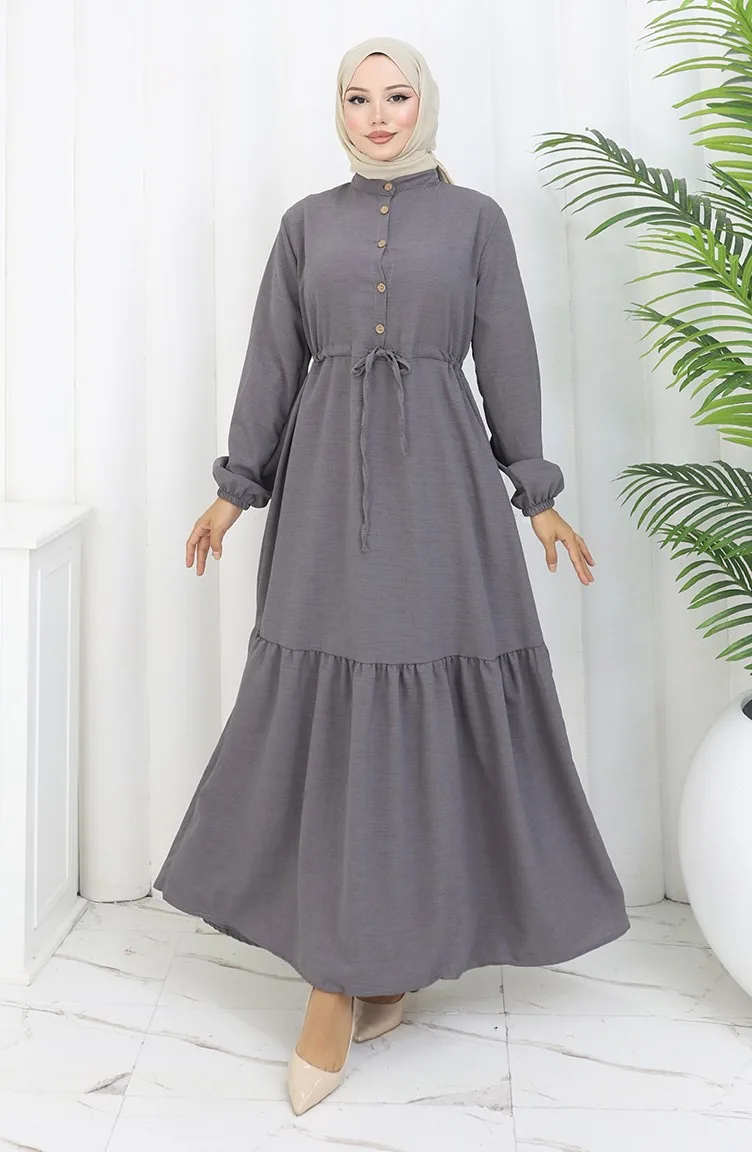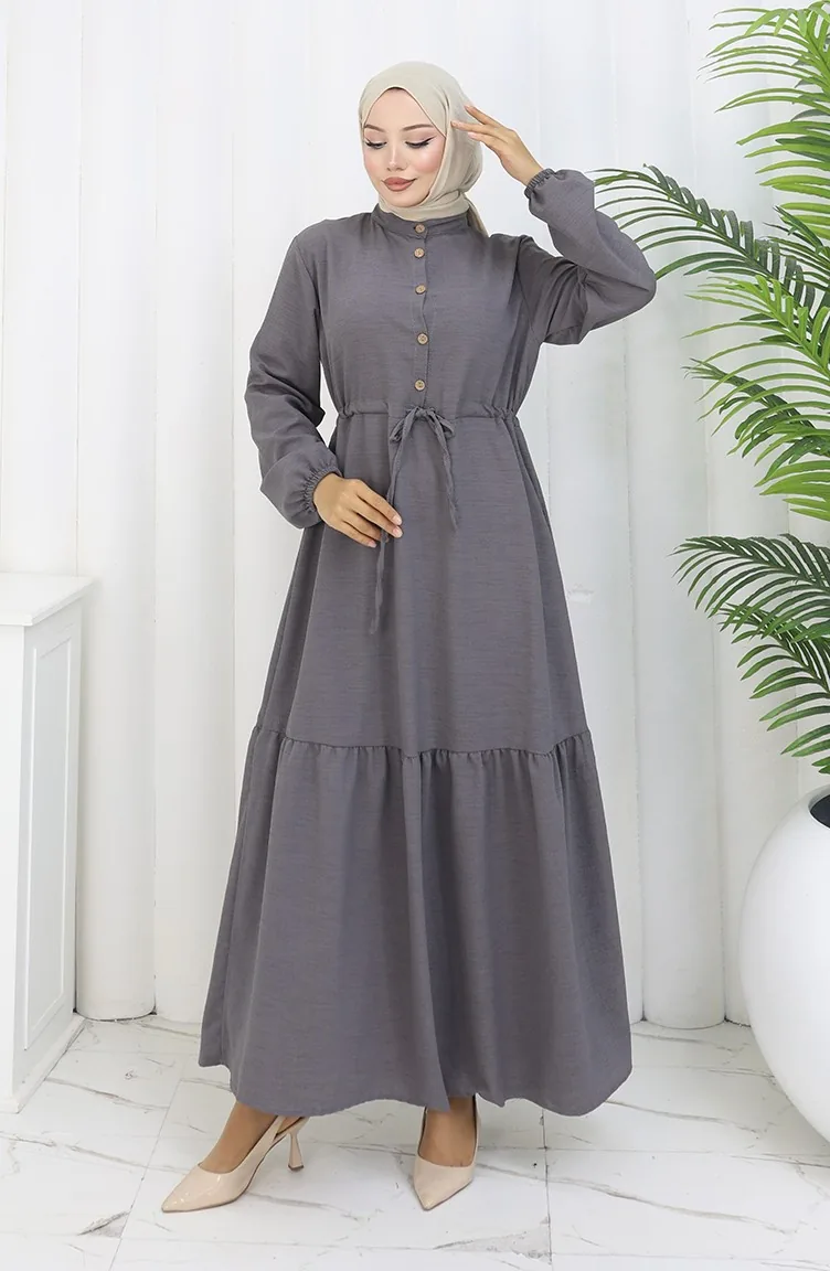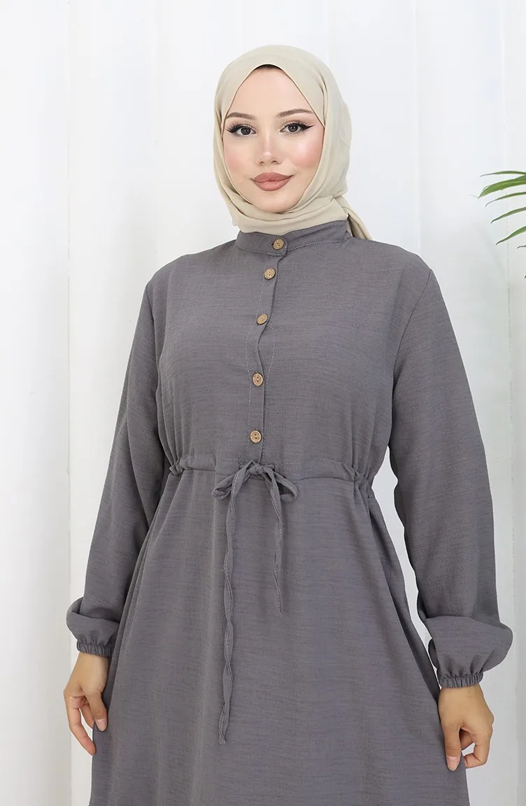 فستان نصف أزرار مع ربطة عند الخصر 0182-02 رمادي 0182-02