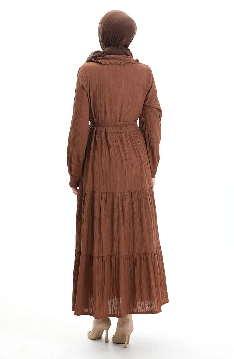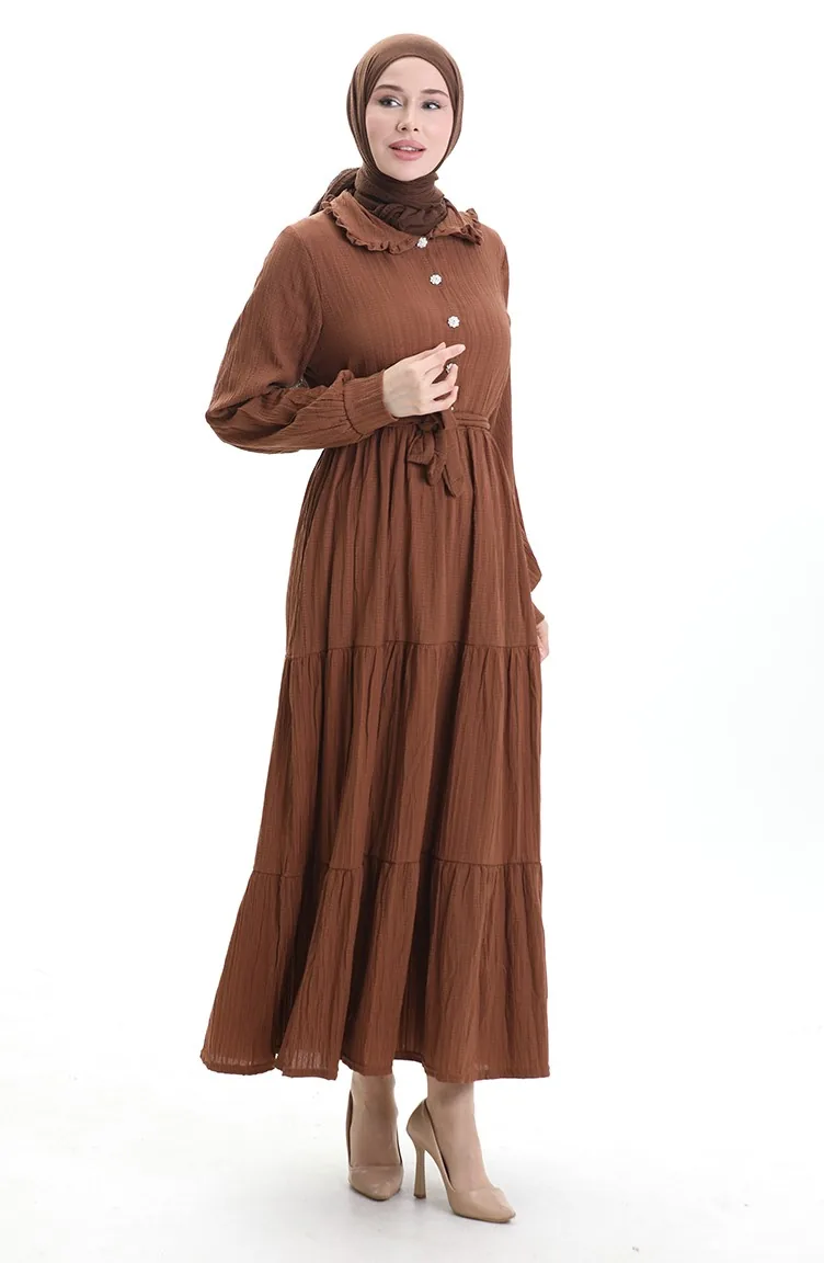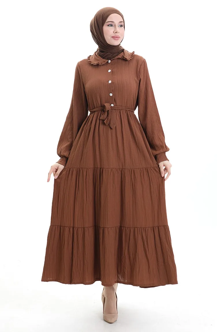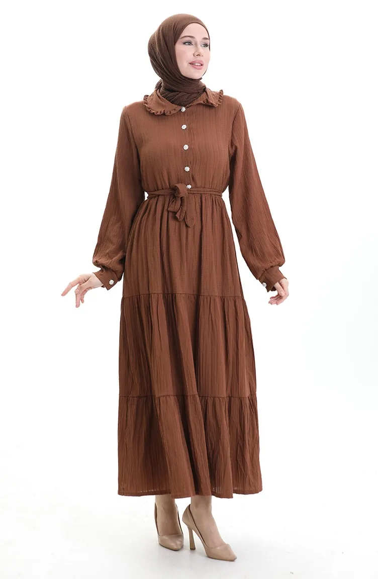 فستان نصف أزرار مجمع 2042-01 بني 2042-01