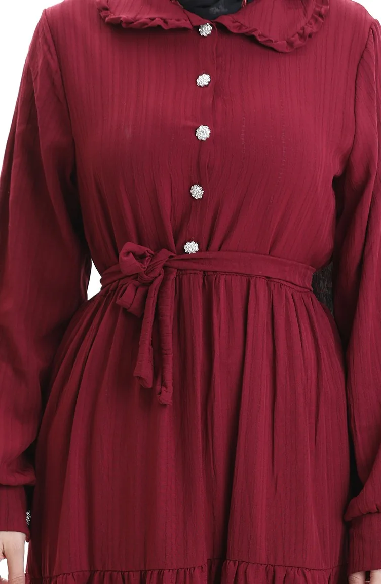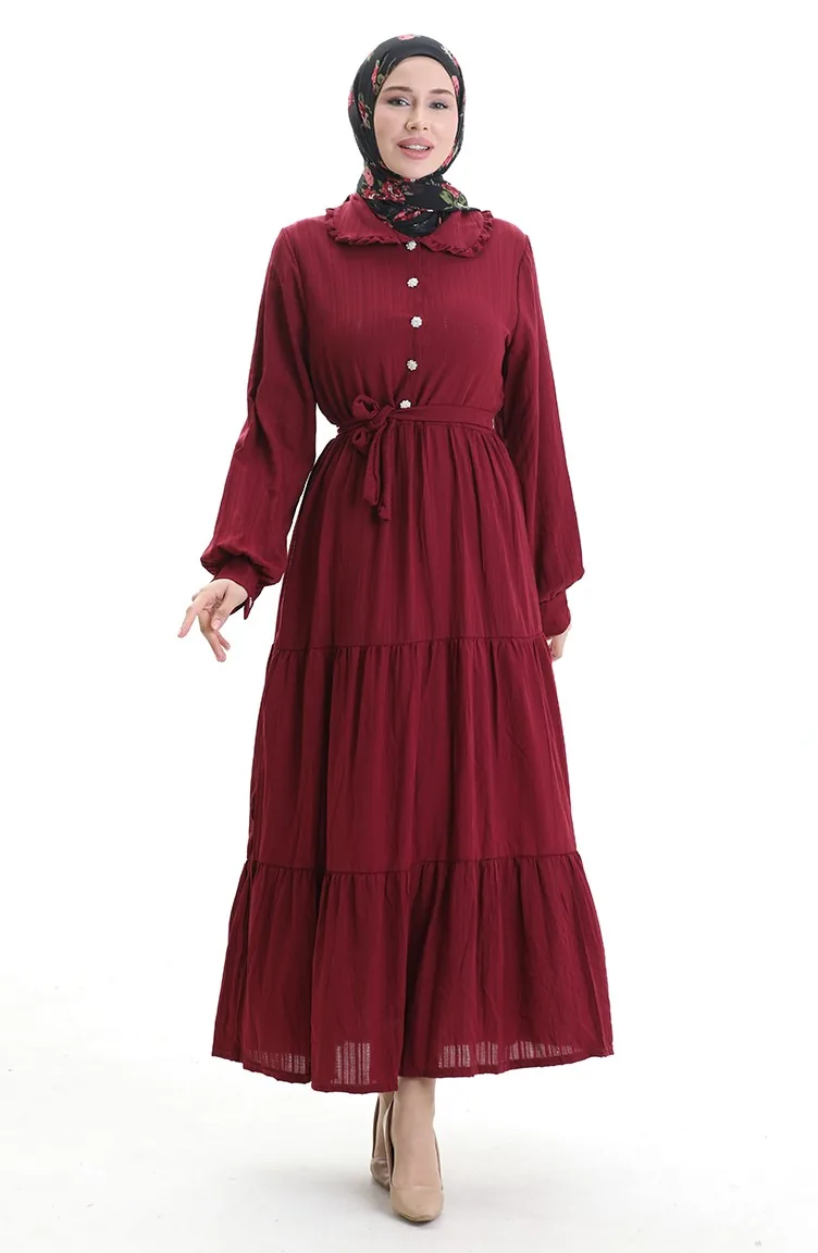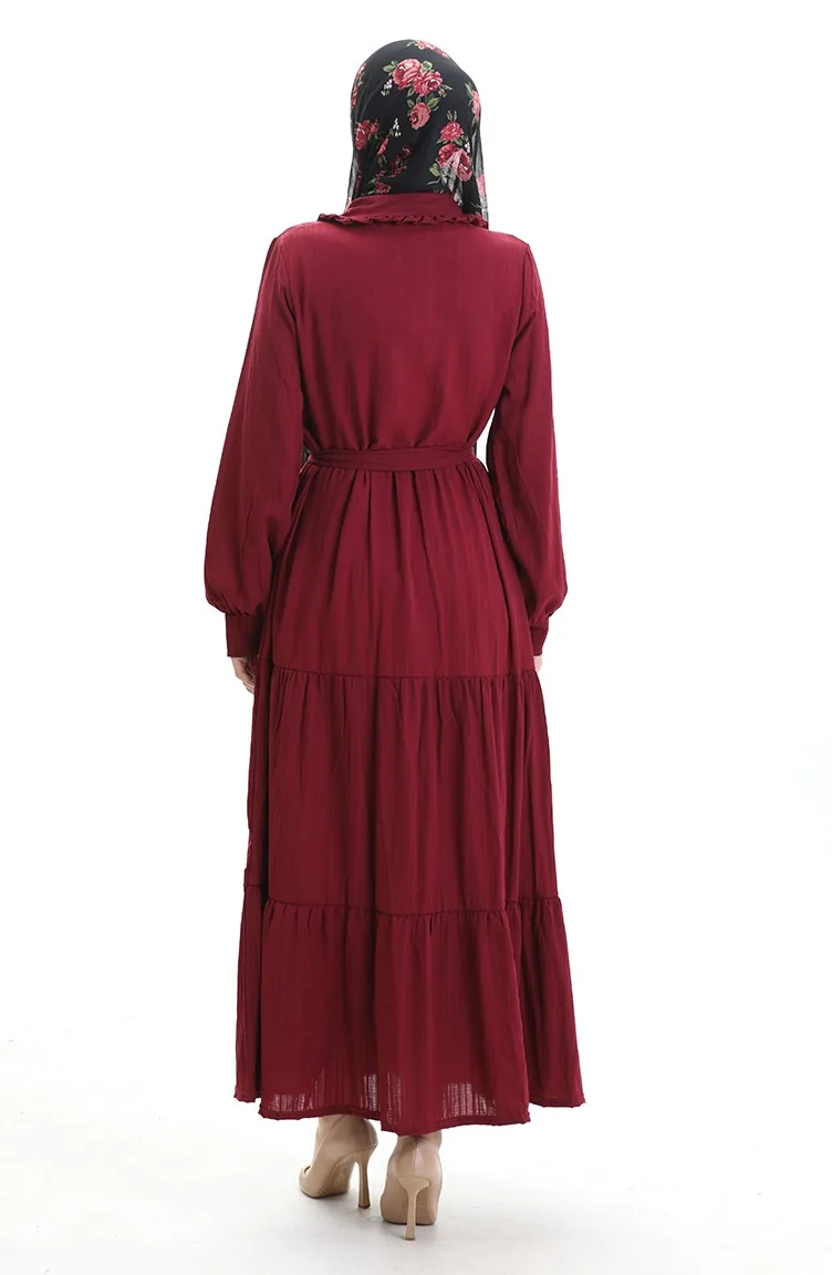فستان نصف أزرار مجمع 2042-03 أحمر قرمزي 2042-03