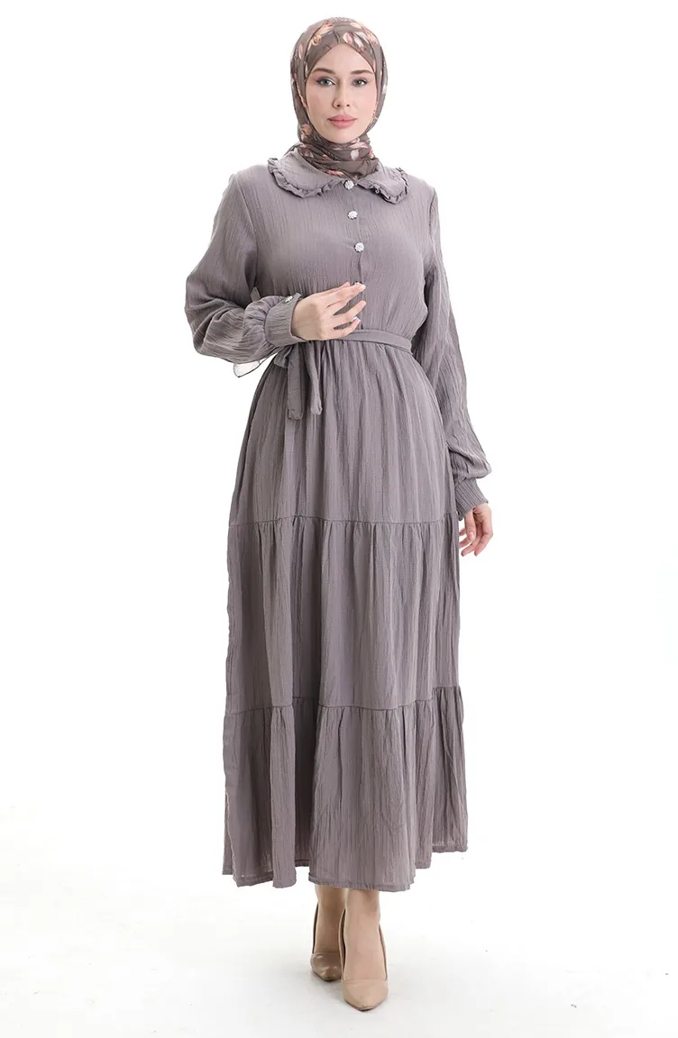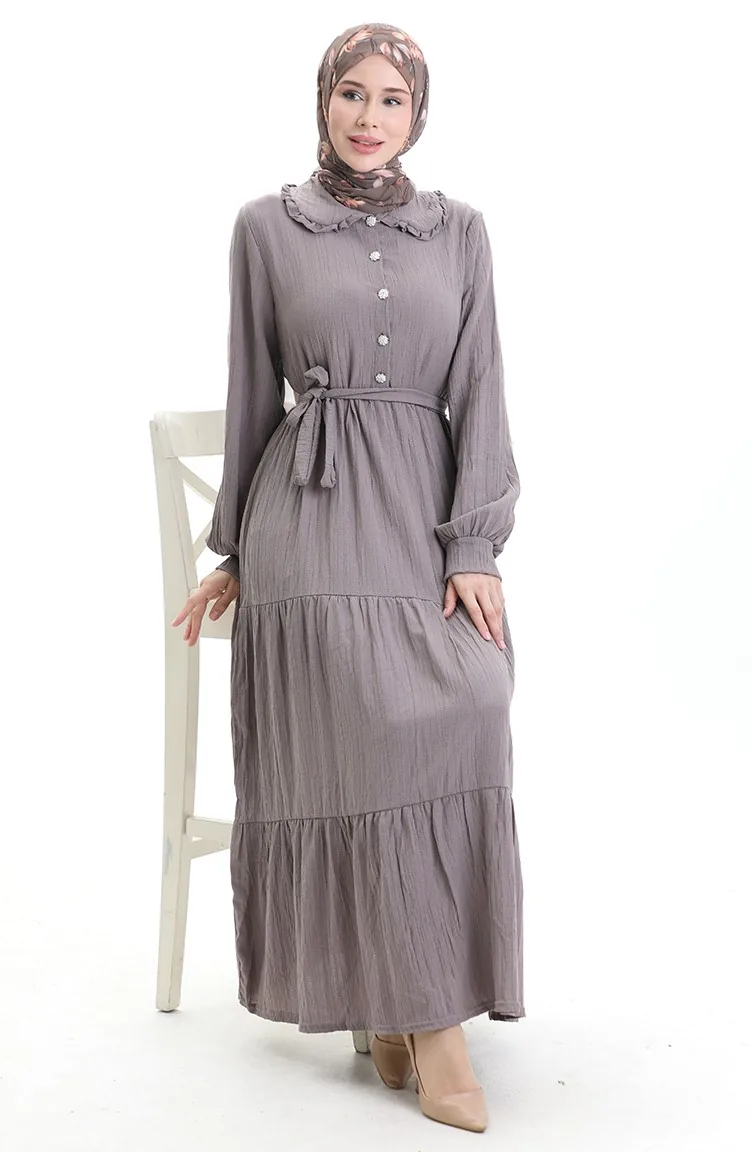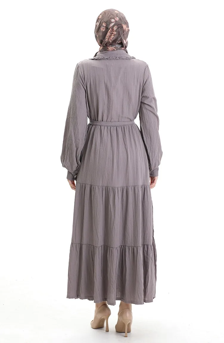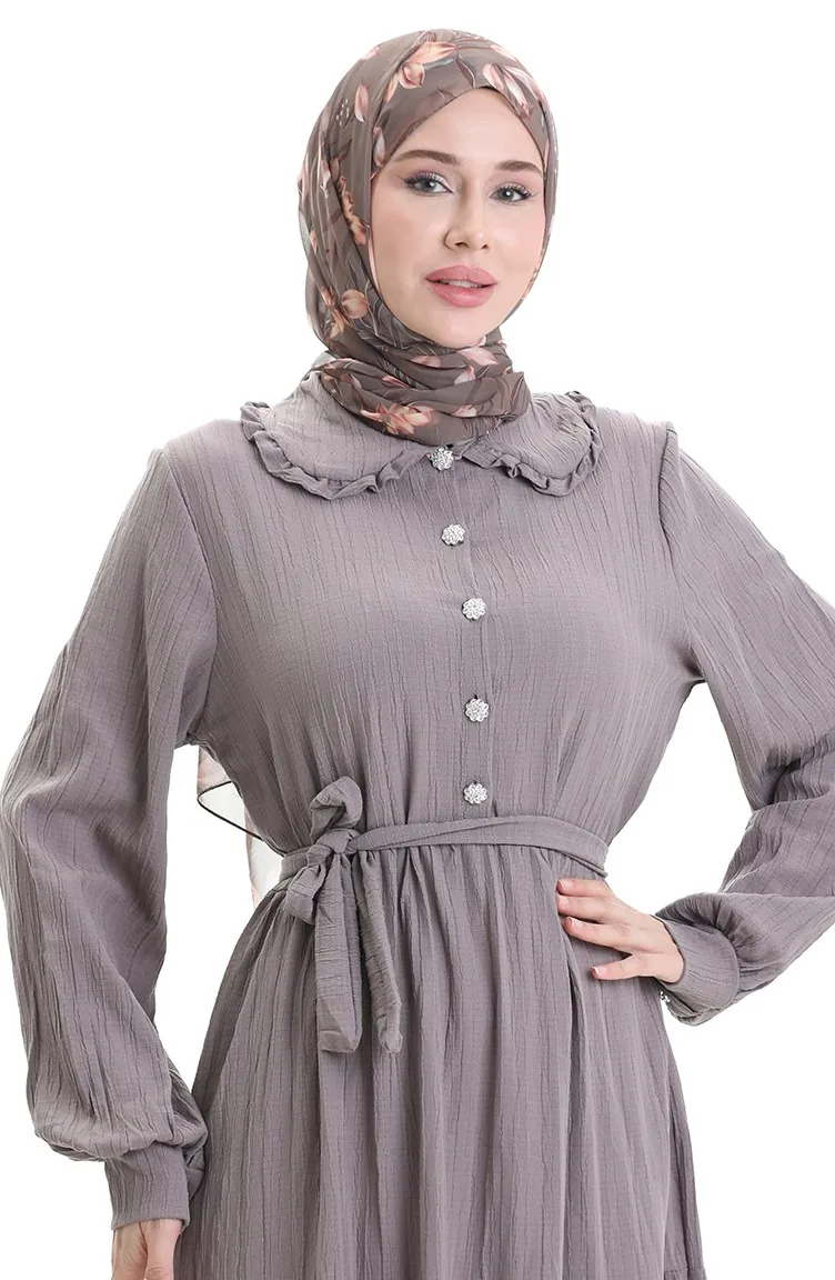 فستان نصف أزرار مجمع 2042-05 من فرو المنك الداكن 2042-05