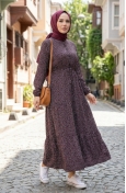 فستان مُطبع بنصف أزرار 0368-04 لون أرجواني 0368-04