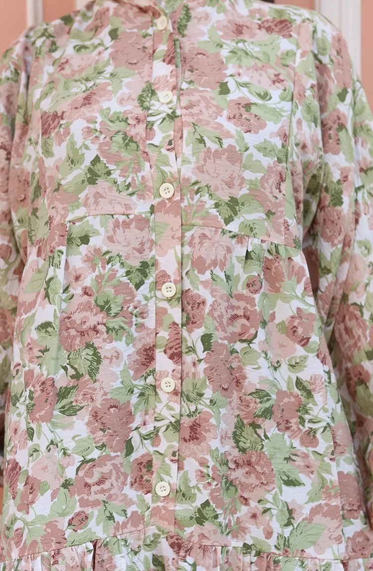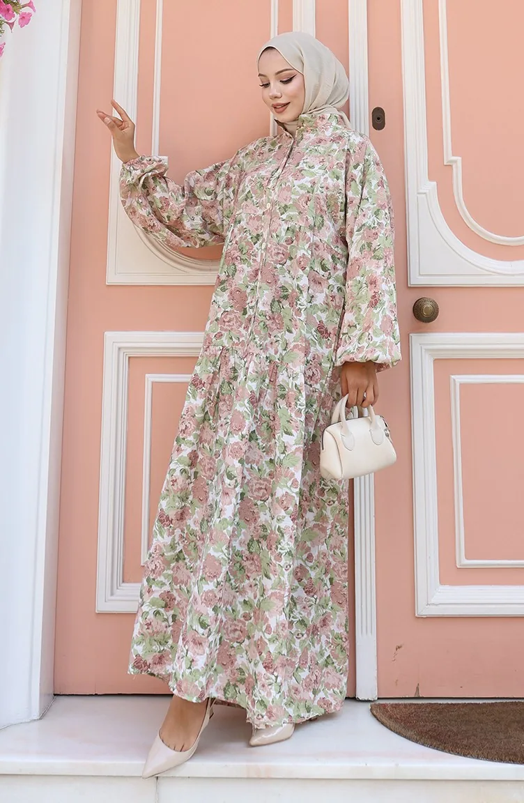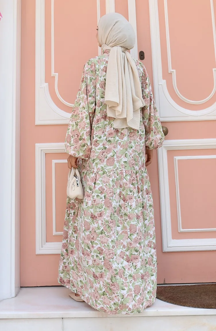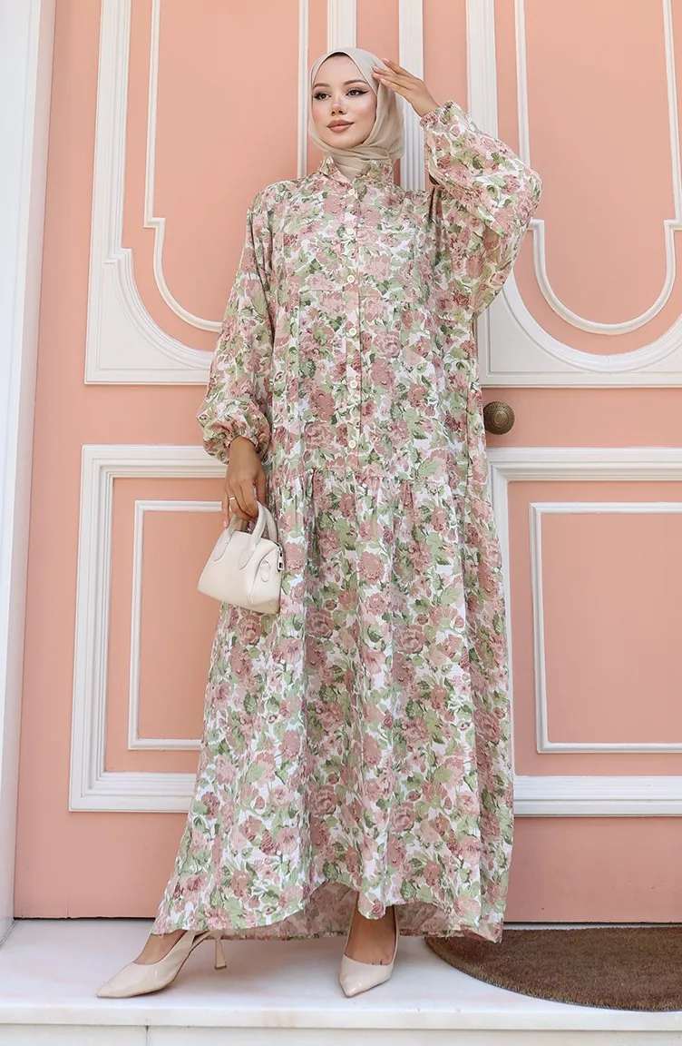 فستان منقوش بأزرار نصفية 2148-05 بني 2148-05