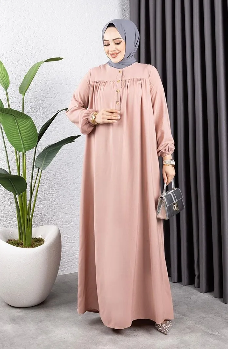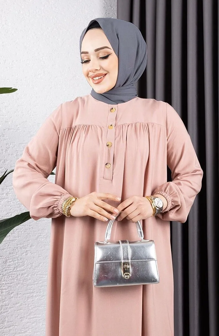فستان فيسكوز نصف أزرار 7103-11 بودرة 7103-11
