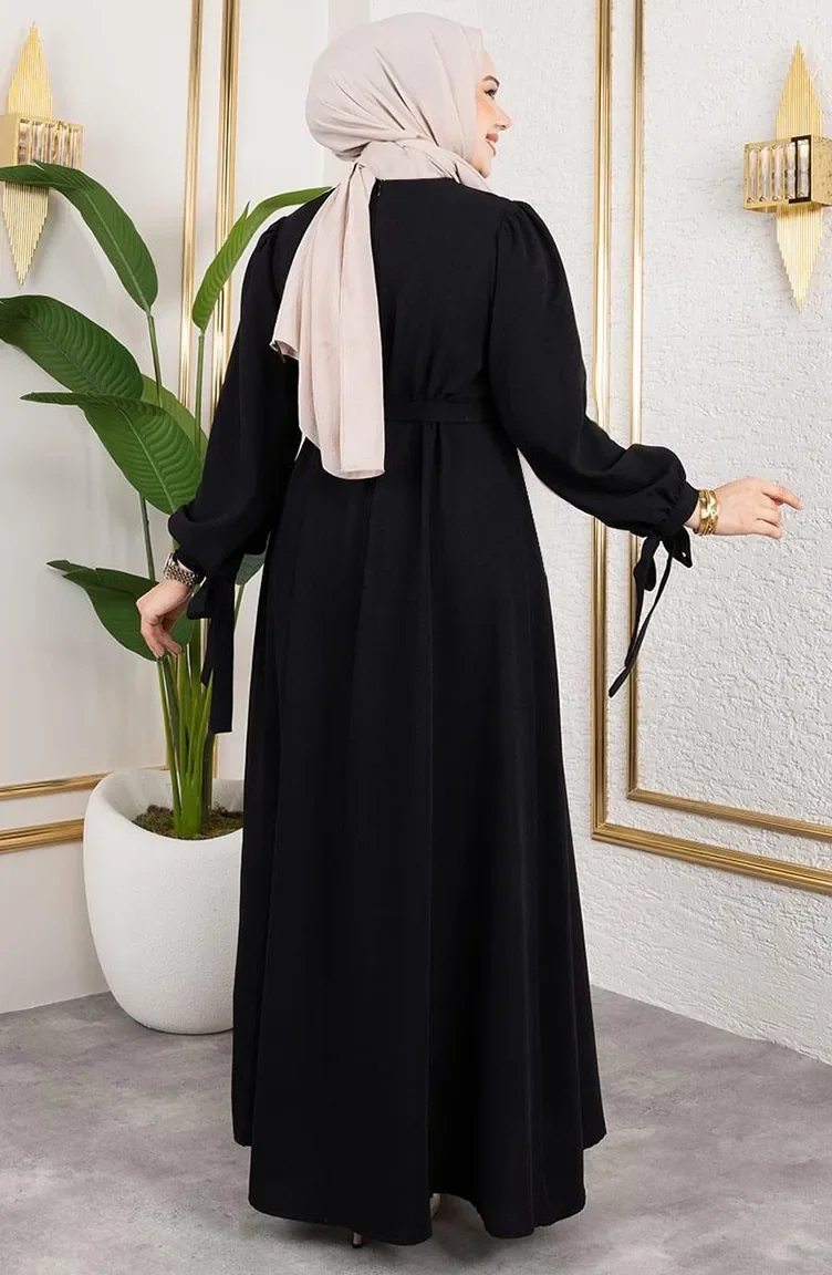 فستان حجاب برباط وأكمام 7121-05 أسود 7121-05