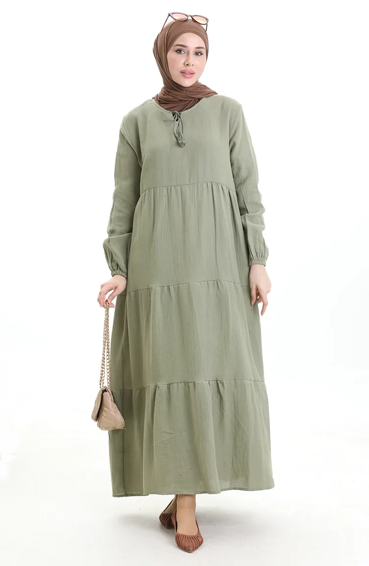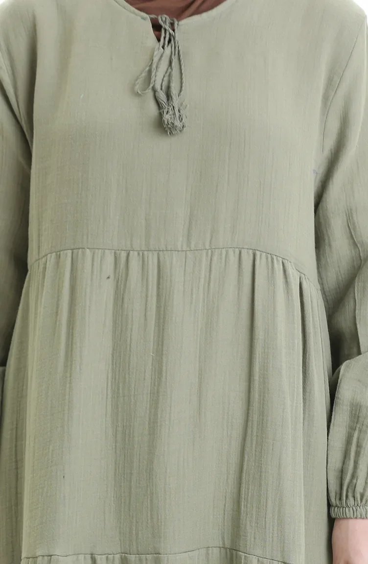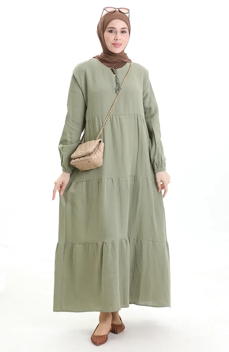 فستان موسلين 6050-03 كاكي 6050-03