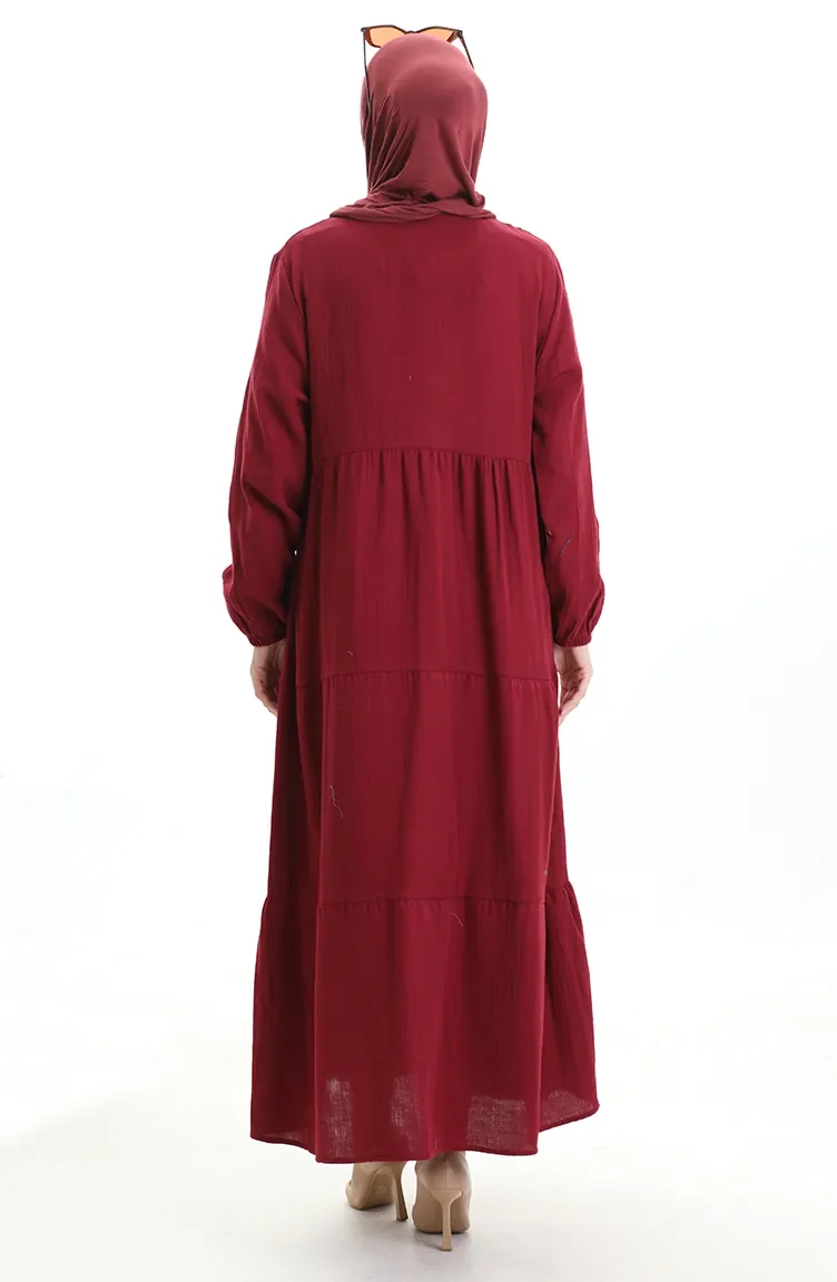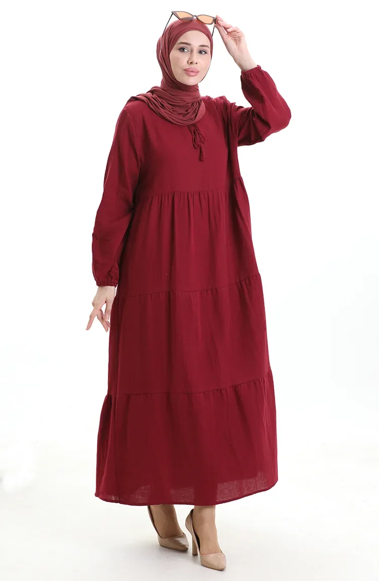 فستان موسلين 6050-07 عنابي 6050-07