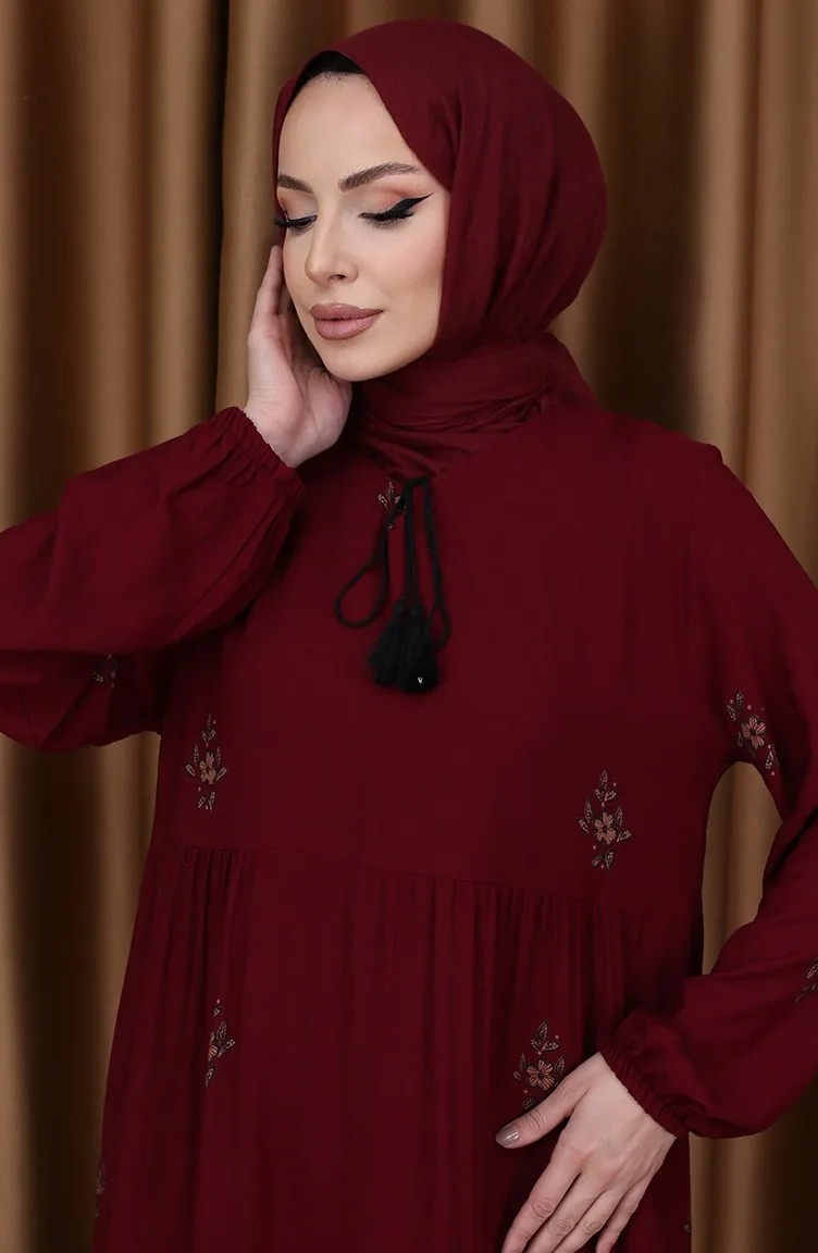 Renk ve kumaş güzel.Ancak boyu düz ayakkabı için uzun.Ve yazlık bir elbise.