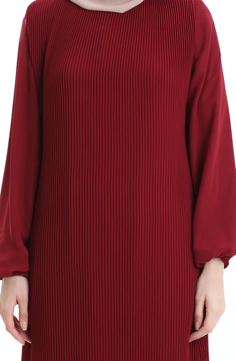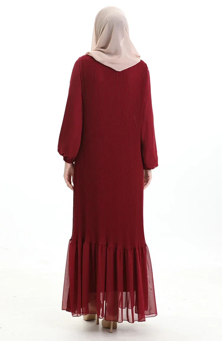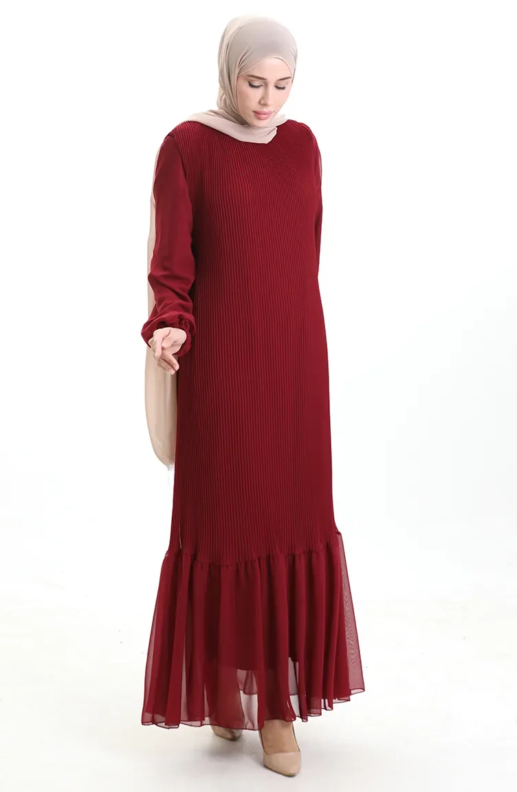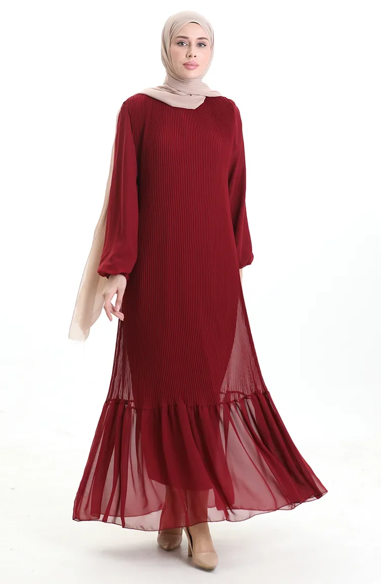 فستان مطوي مع تنورة مكشكشة 0171-02 عنابي 0171-02