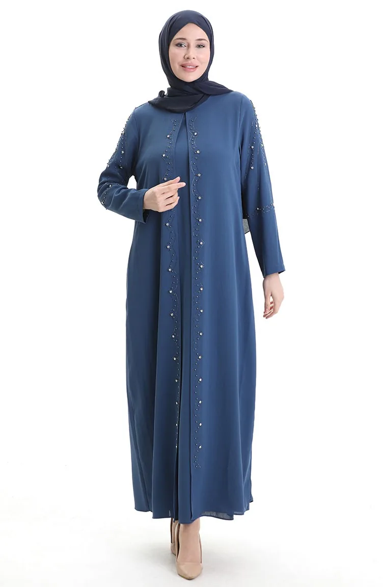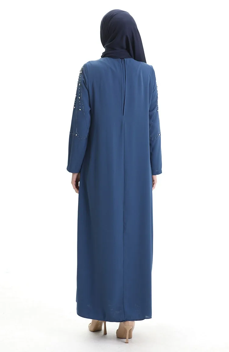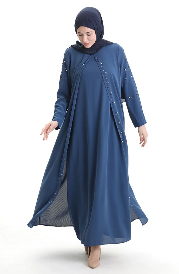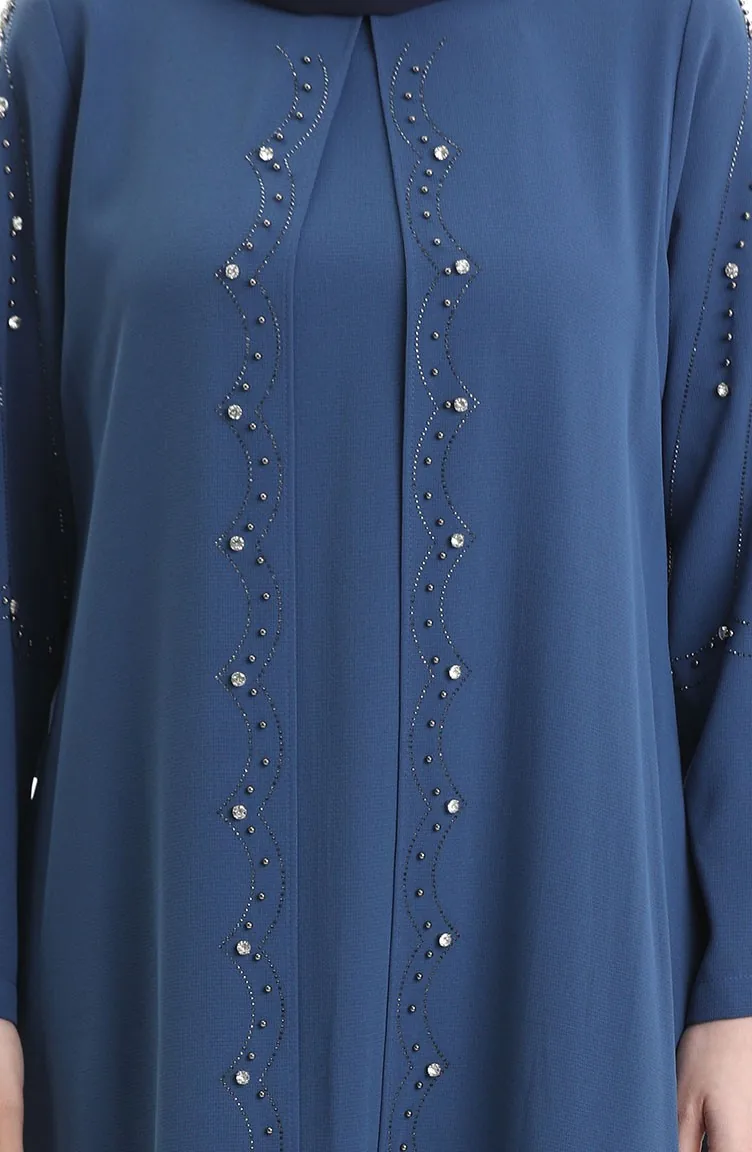 فستان من قماش قرص العسل بمقاس كبير 6246-03 نيلي 6246-03