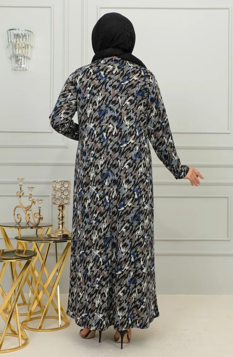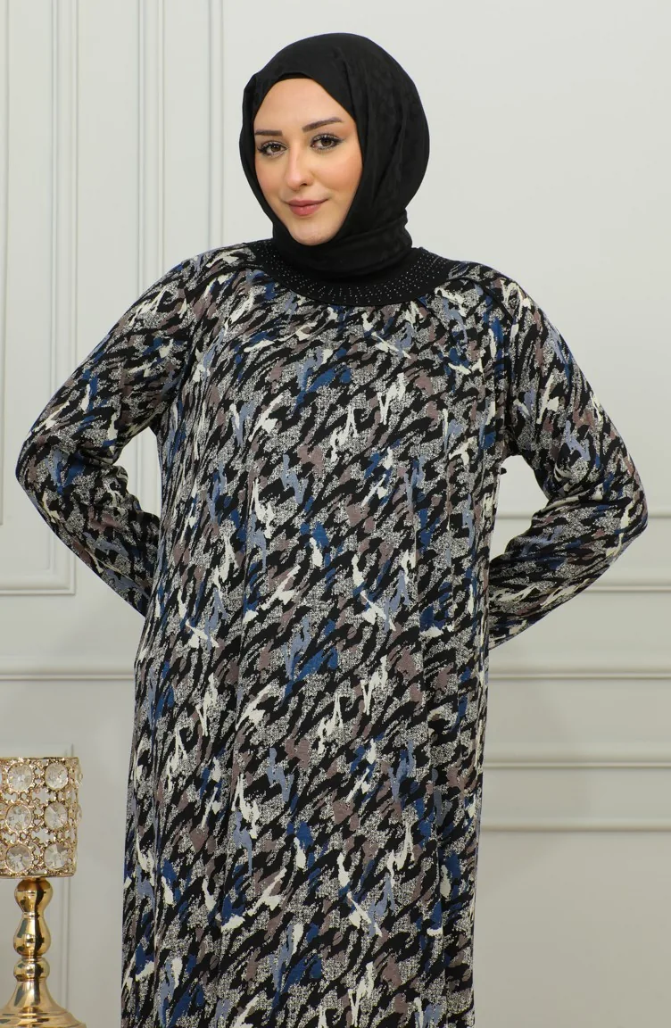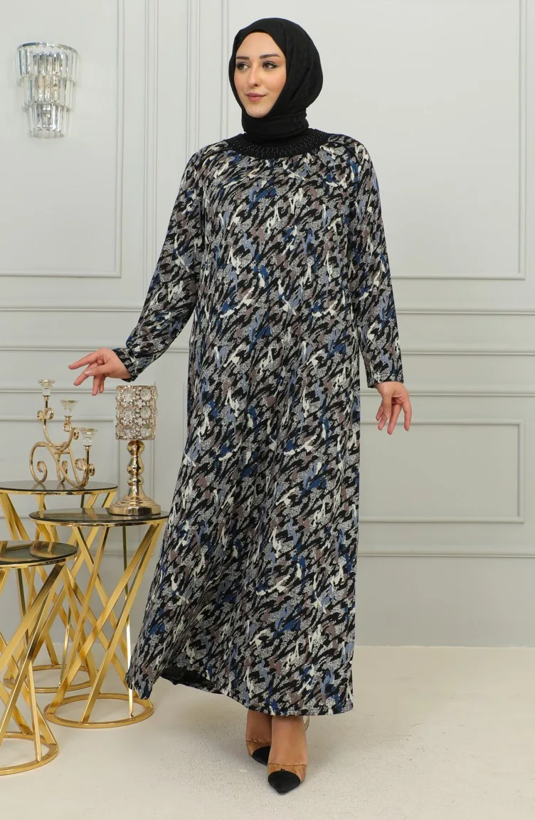 فستان فيسكوز منقوش مقاس كبير 4447D-01 أزرق 4447D-01