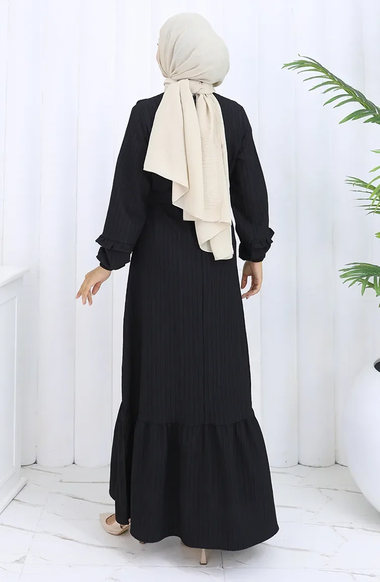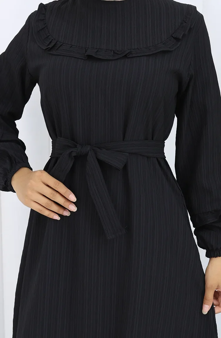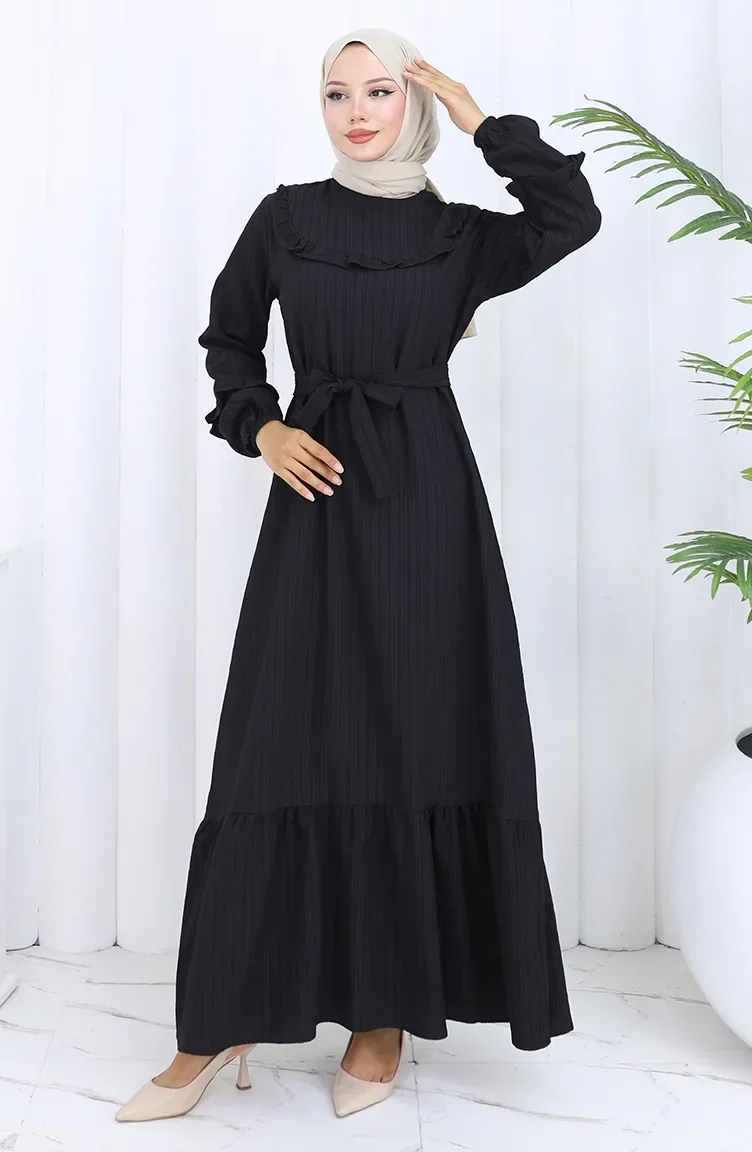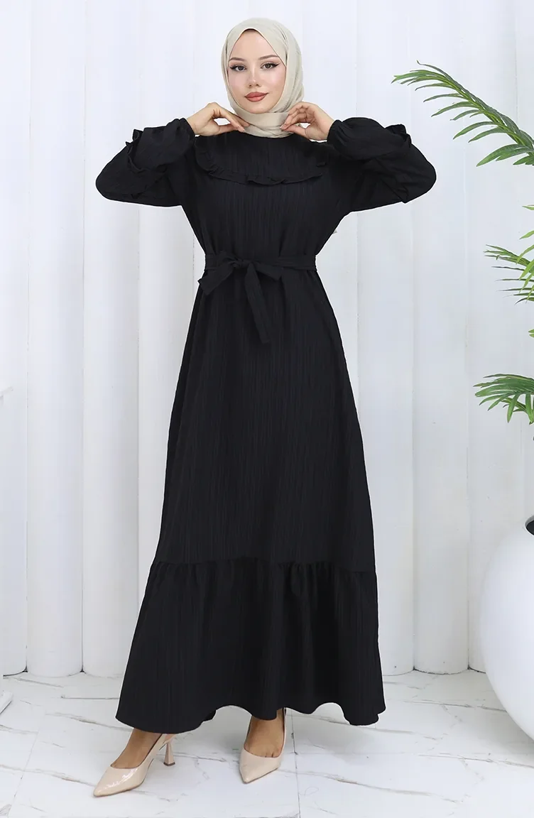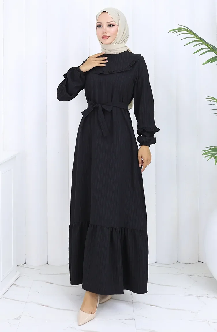 فستان بحزام مكشكش 2116-04 أسود 2116-04
