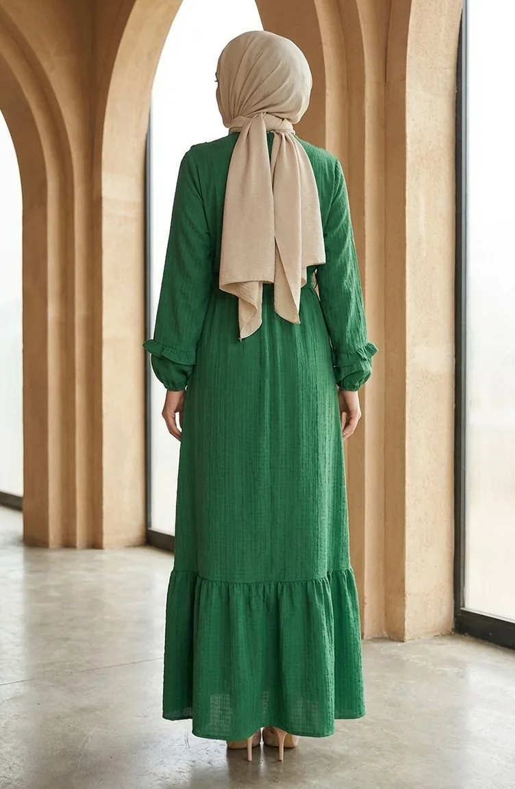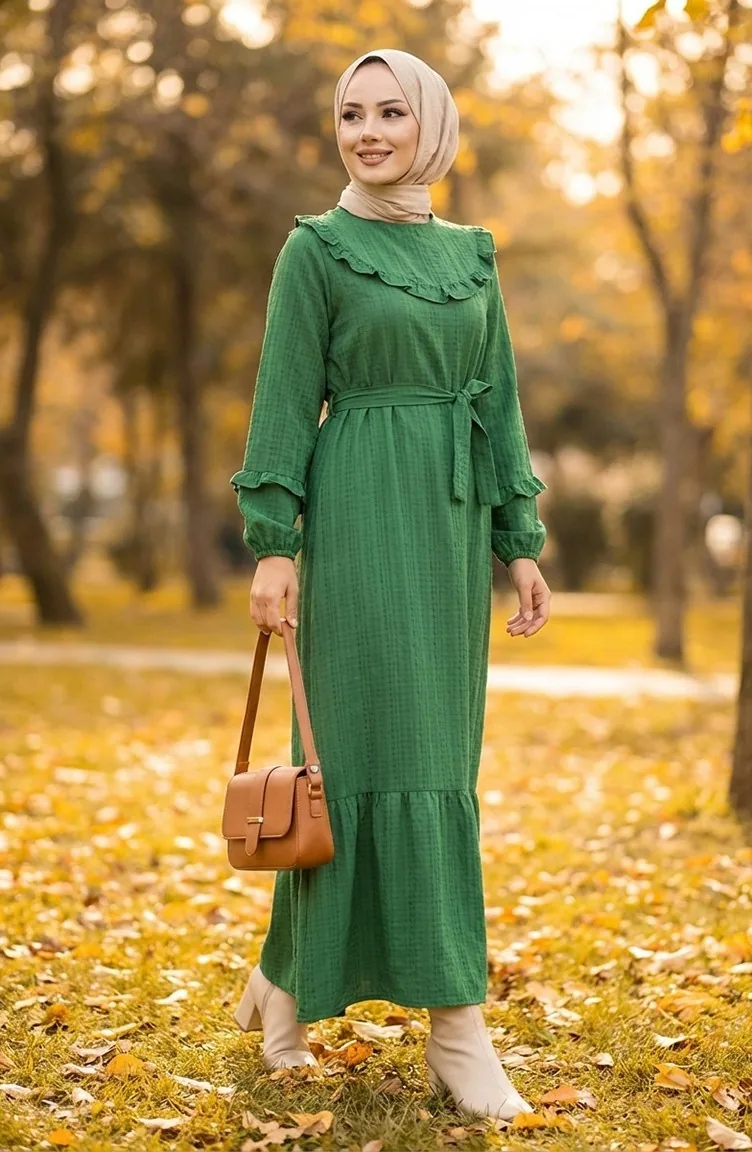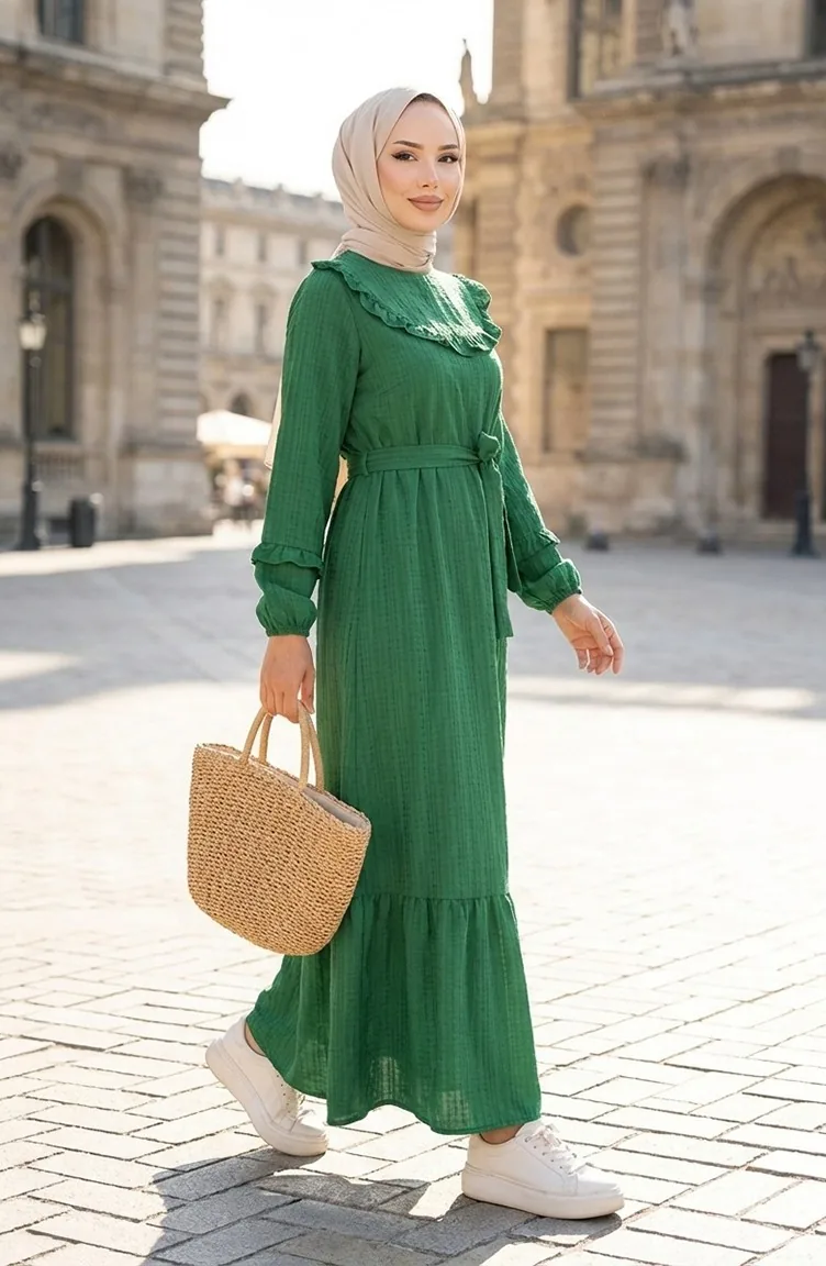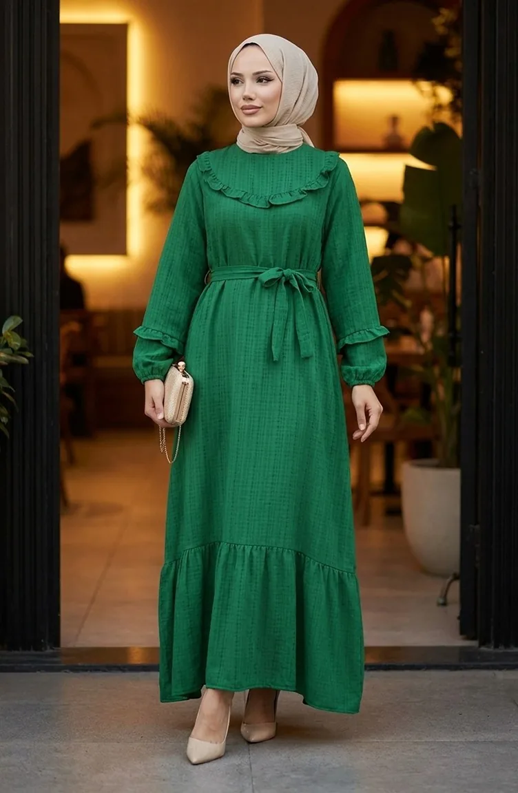 فستان بحزام مكشكش 2159-08 أخضر 2159-08