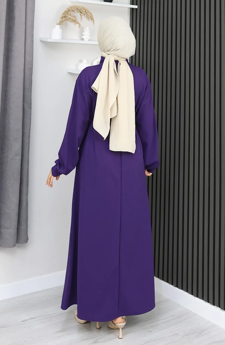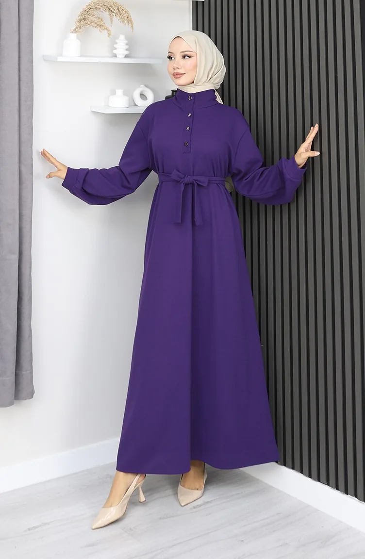 فستان سكوبا فابريك بحزام نصف أزرار 2167-02 أرجواني 2167-02