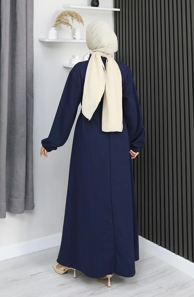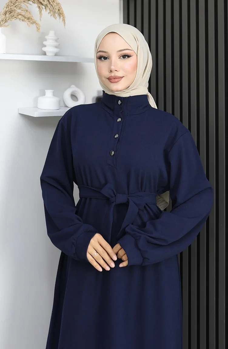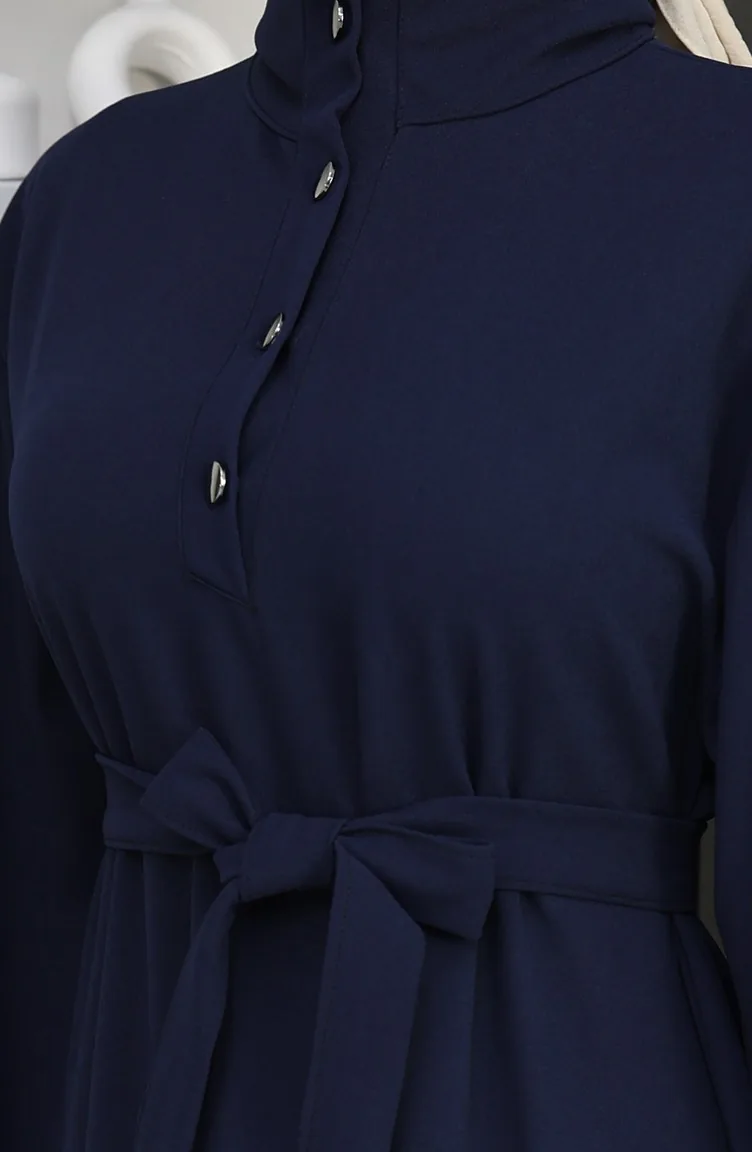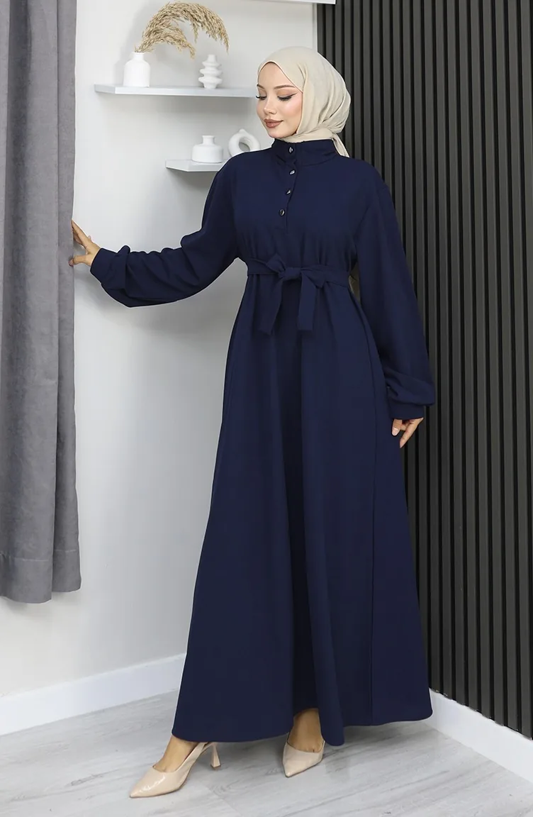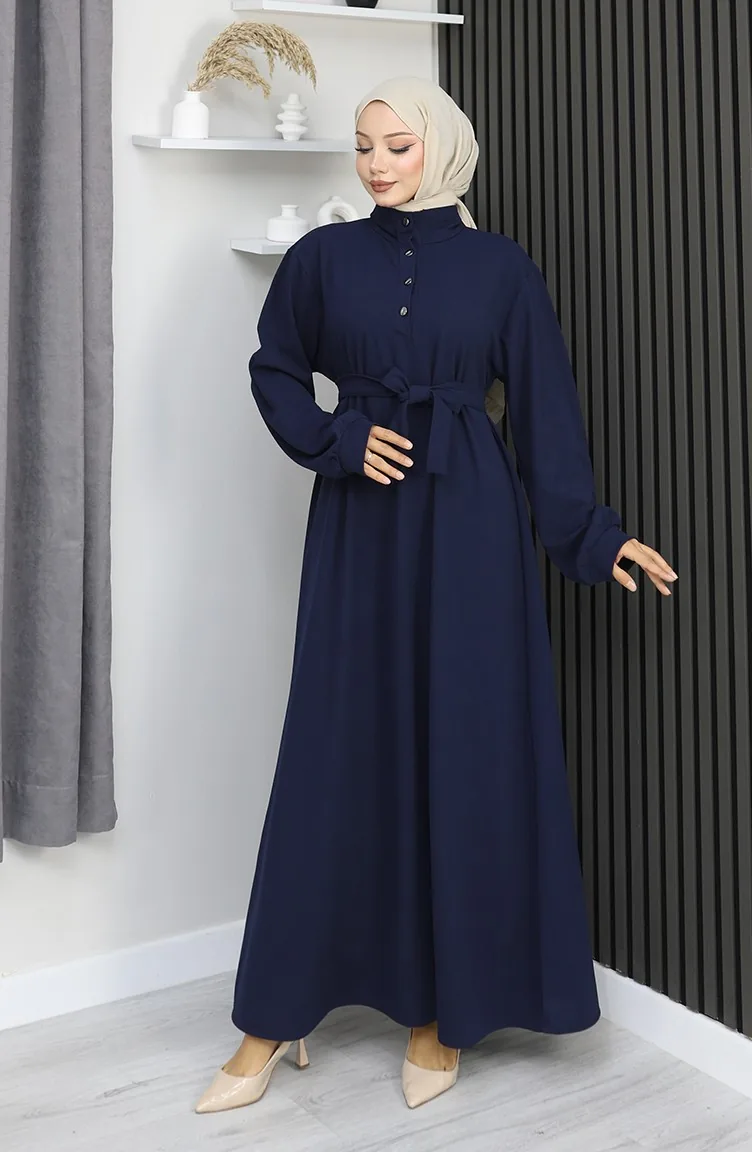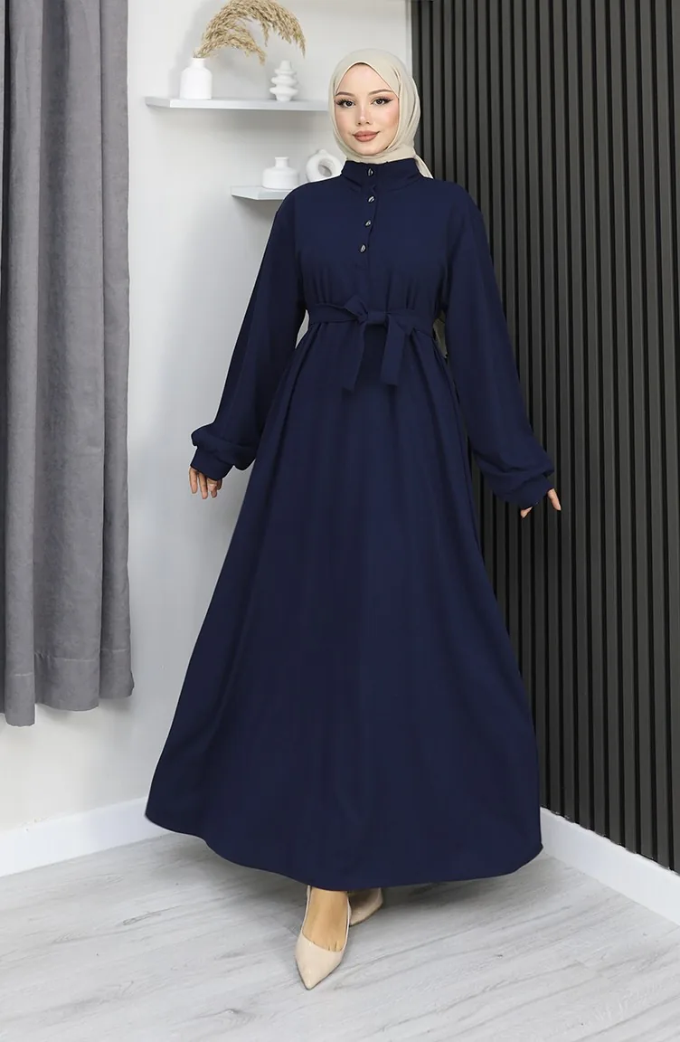 فستان سكوبا فابريك بحزام نصف أزرار 2167-04 أزرق داكن 2167-04